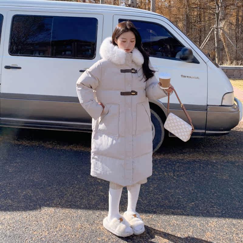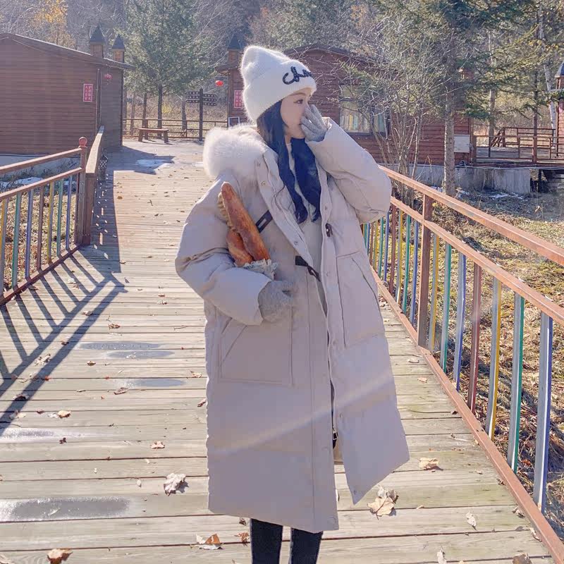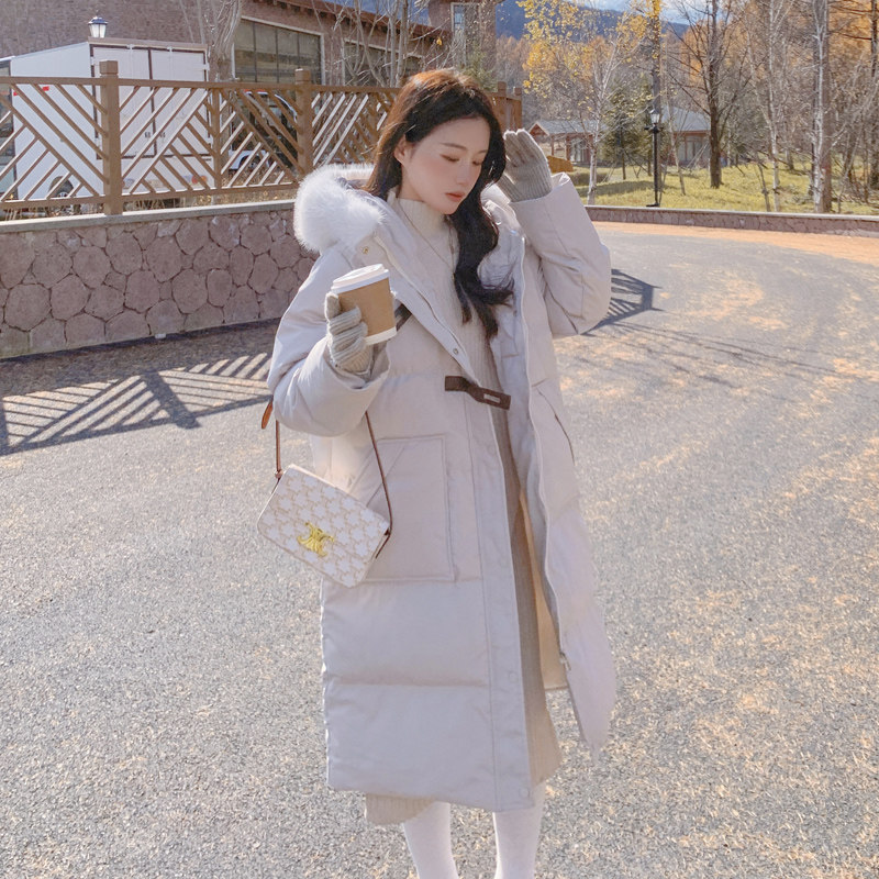 Бежевый пуховик с пухом, длинная утепленная куртка, коллекция 2022, средней длины