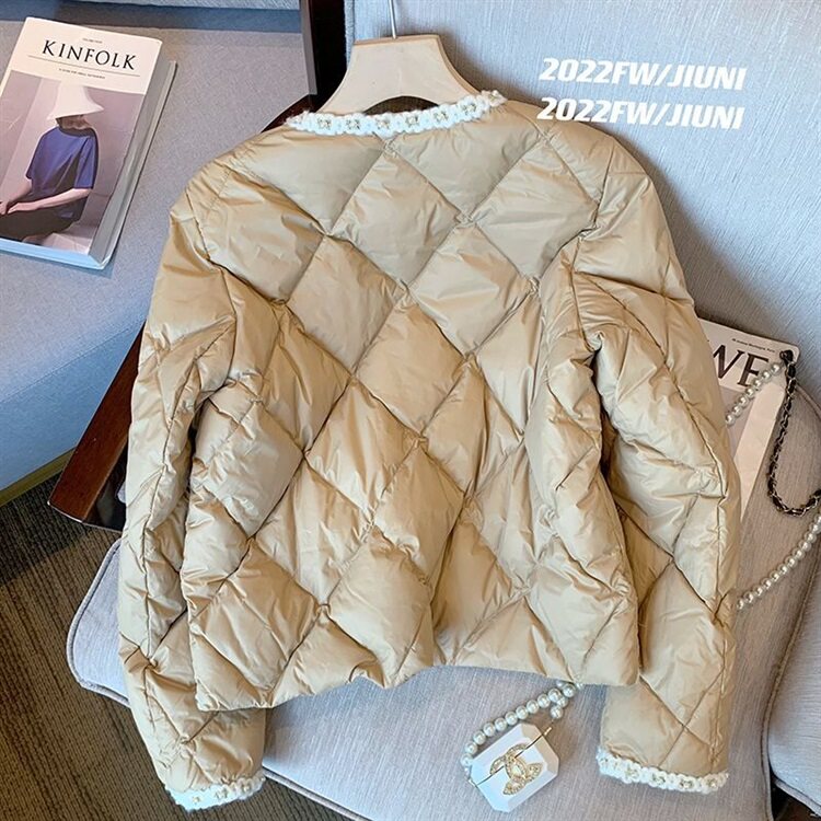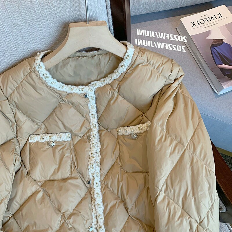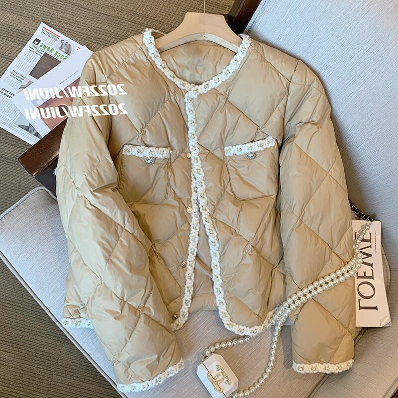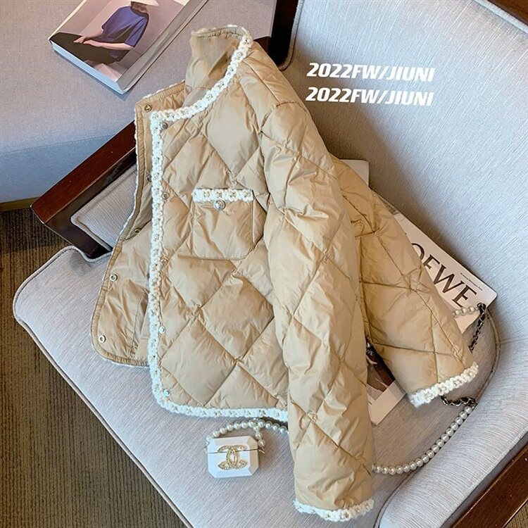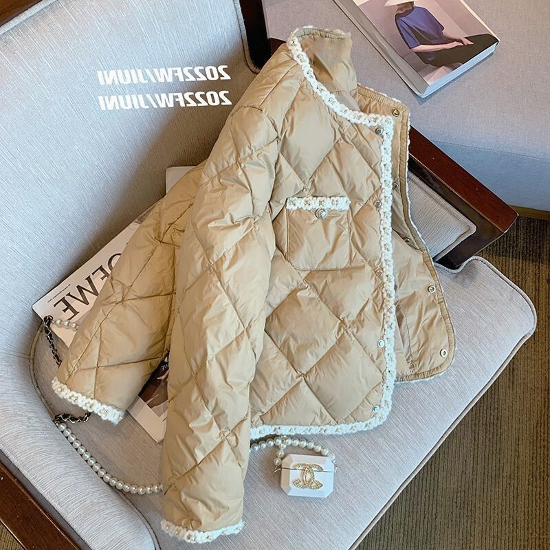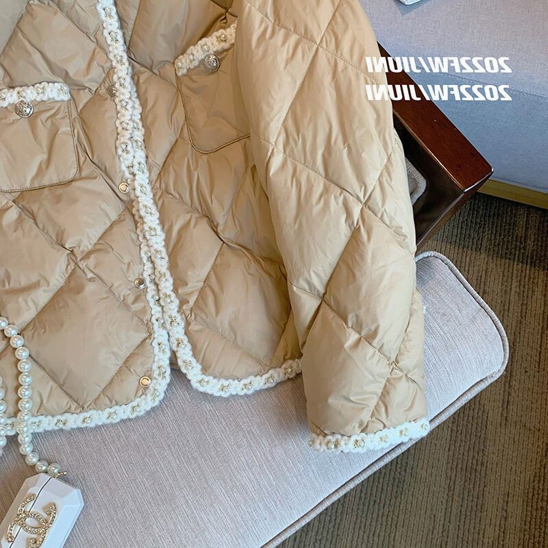 Стеганый пуховик с ромбовидным узором, демисезонная ретро коричневая куртка, в стиле Шанель, оверсайз