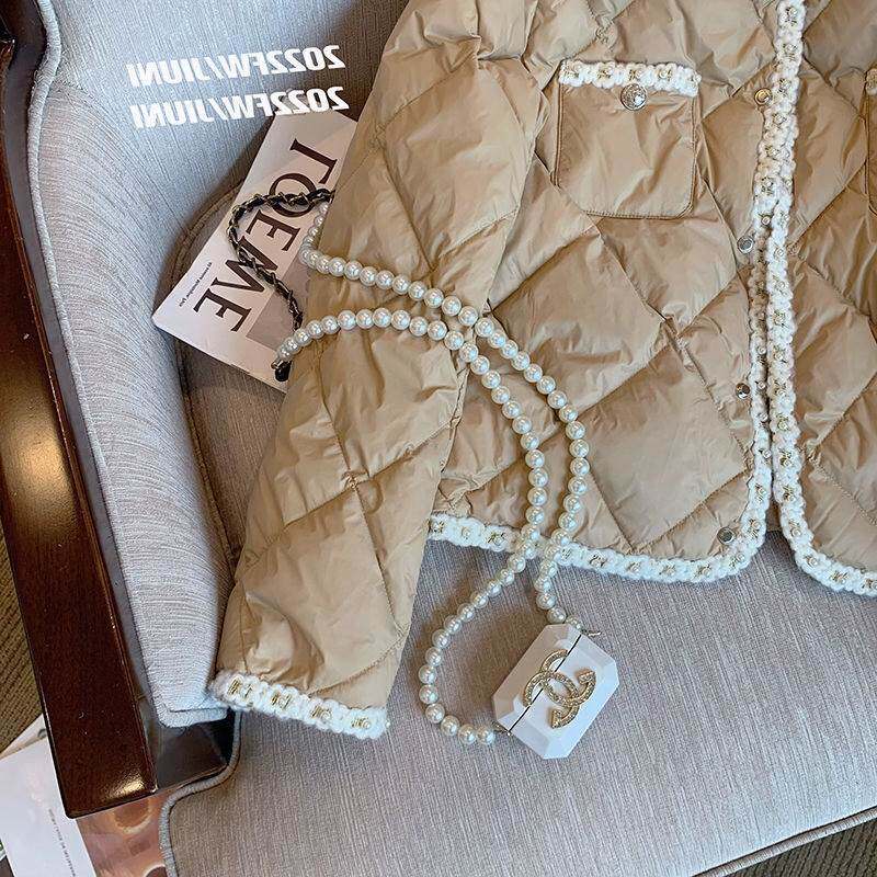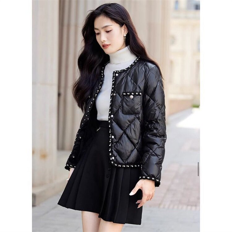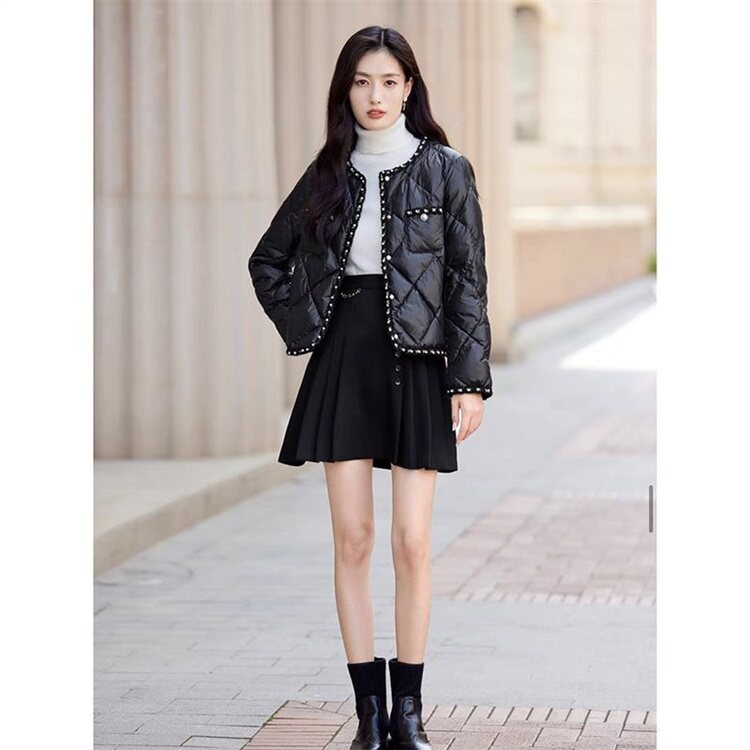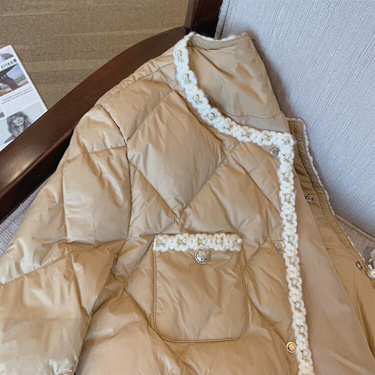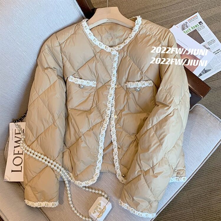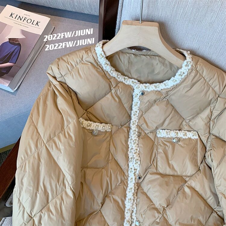 Стеганый пуховик с ромбовидным узором, демисезонная ретро коричневая куртка, в стиле Шанель, оверсайз