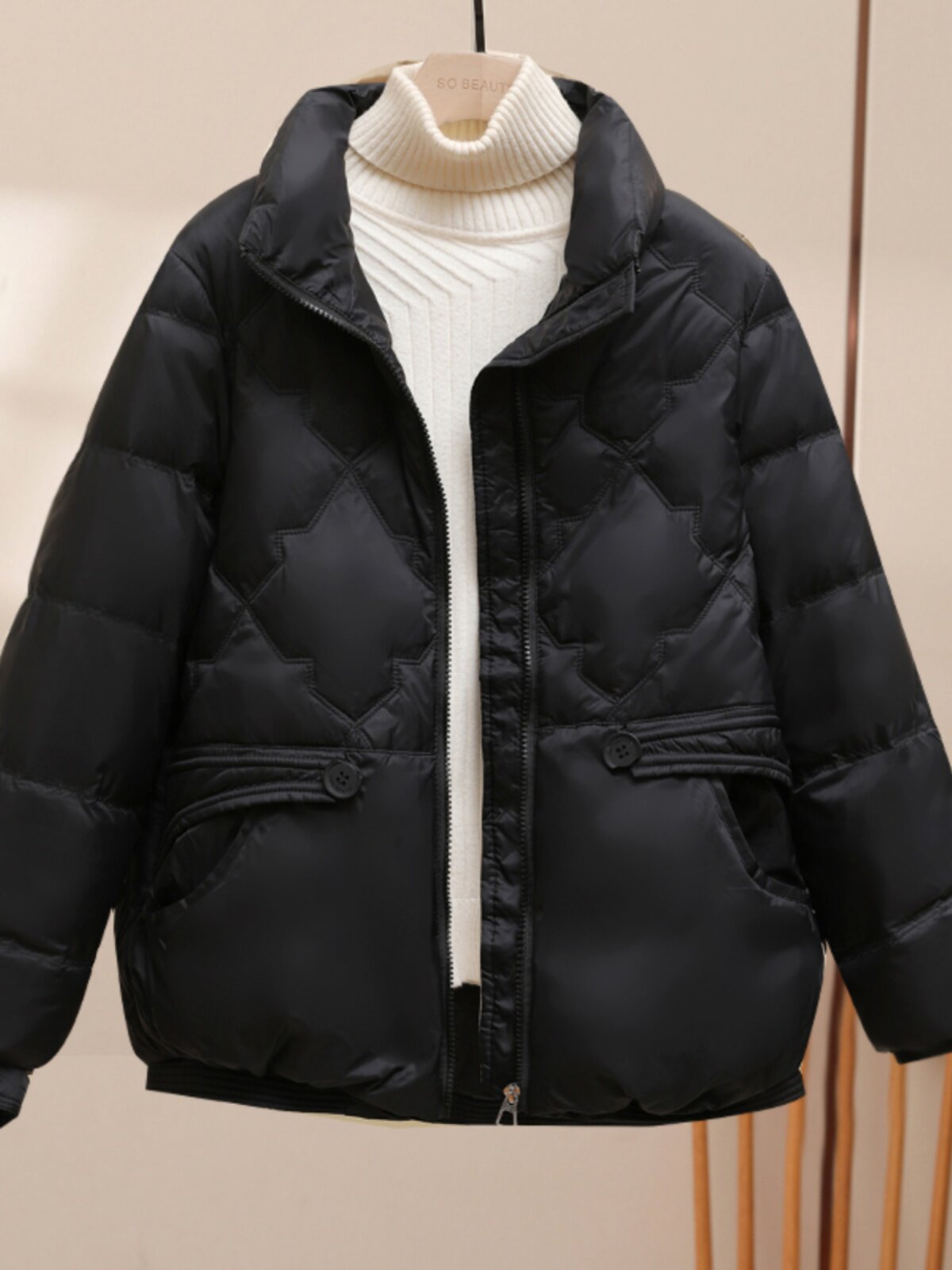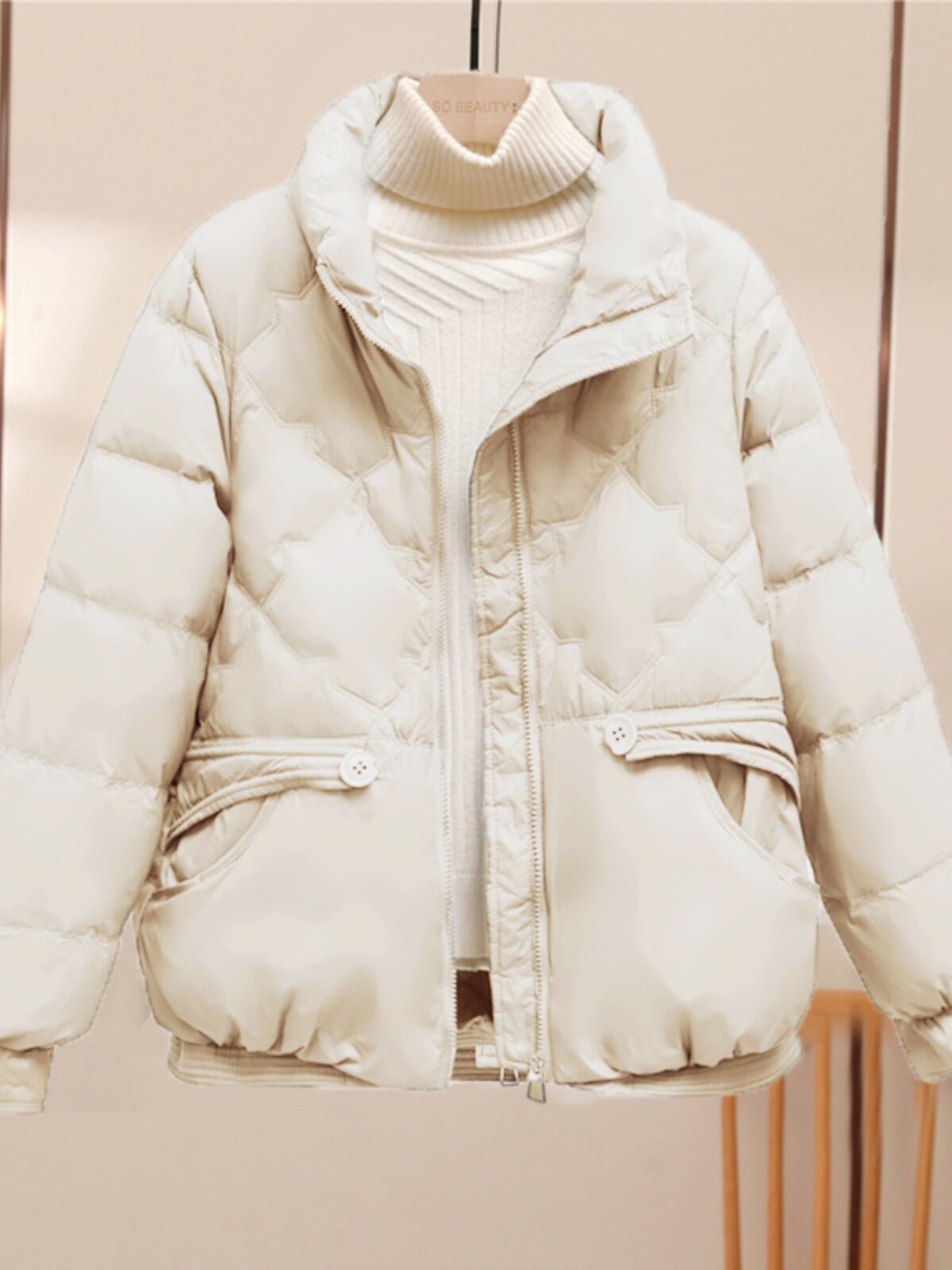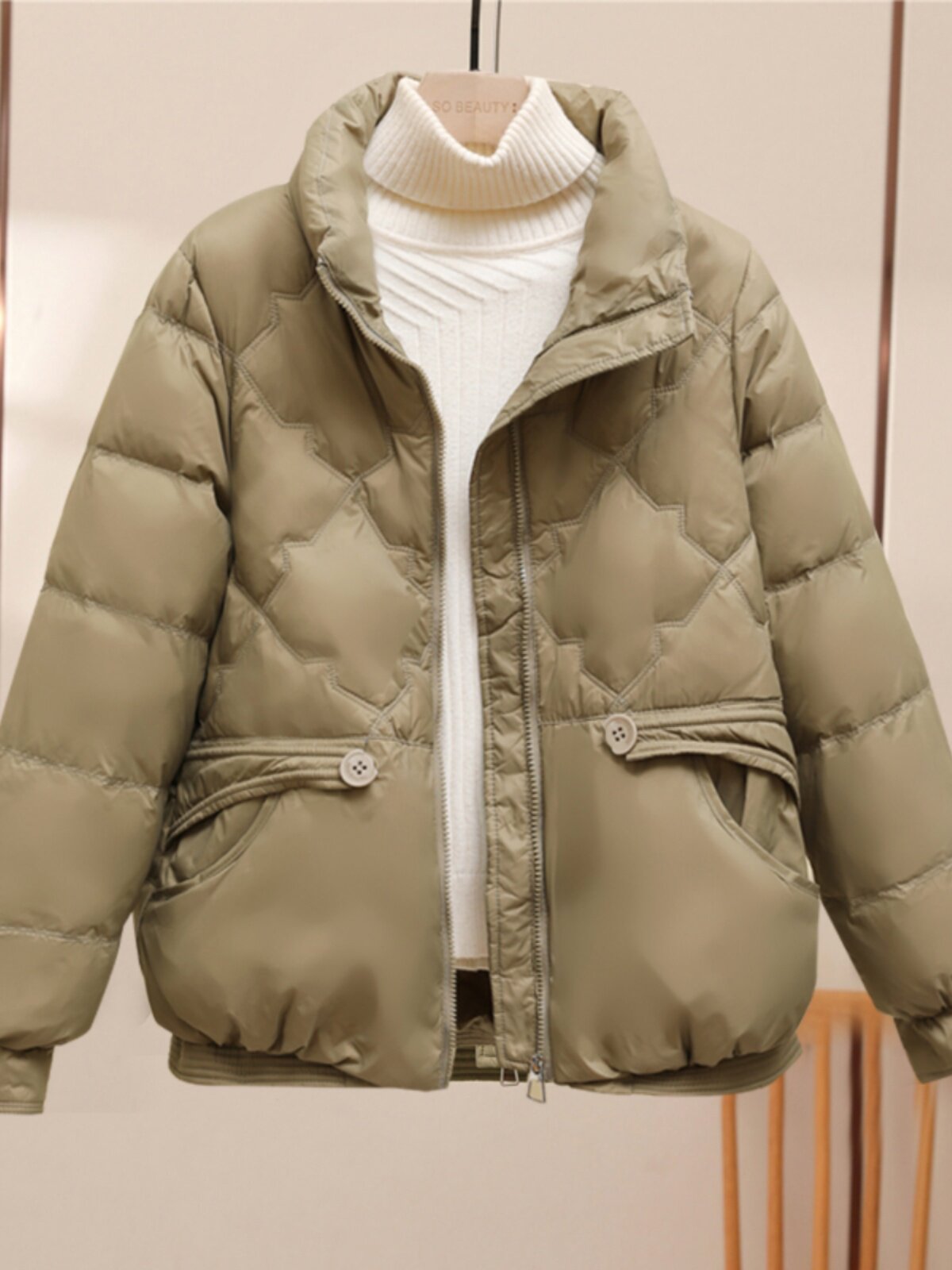 Короткий модный пуховик с пухом, удерживающая тепло куртка, коллекция 2023, по фигуре