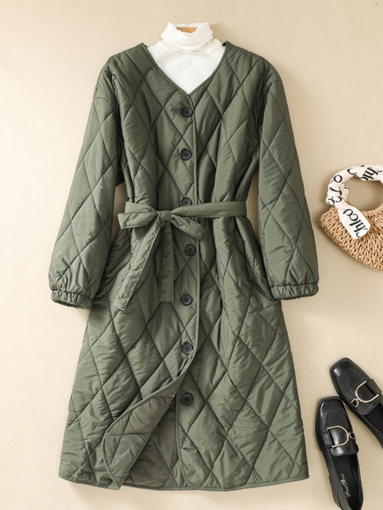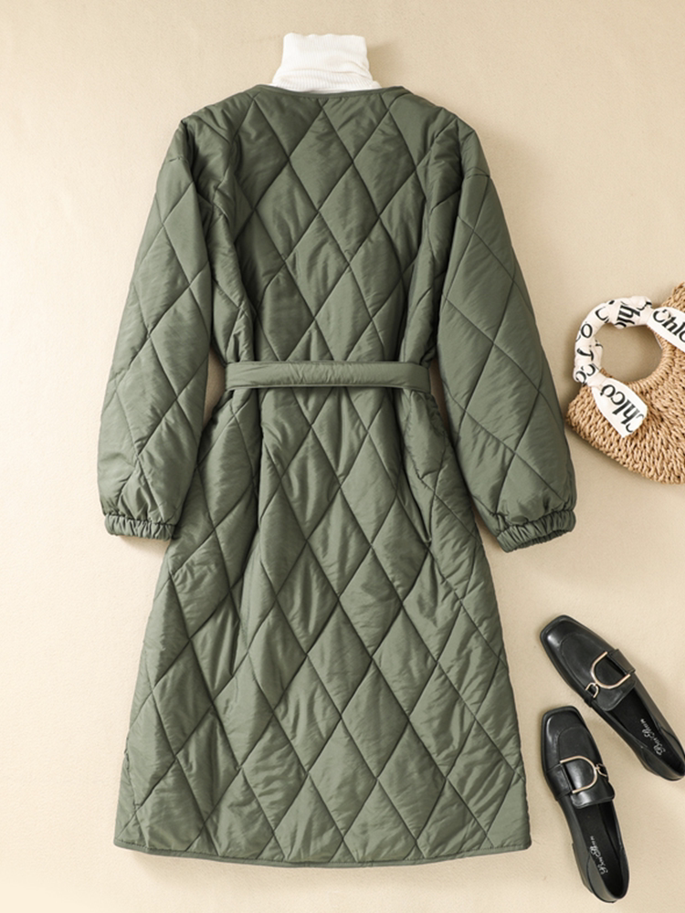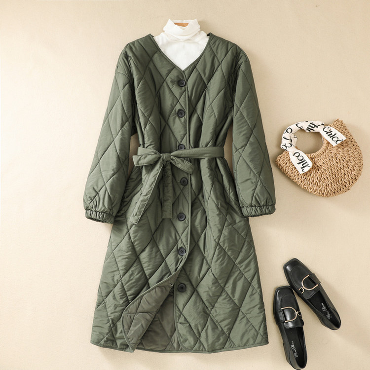 Длинная стеганая японская куртка с ромбовидным узором, ретро приталенный утепленный корсет, пуховик, средней длины