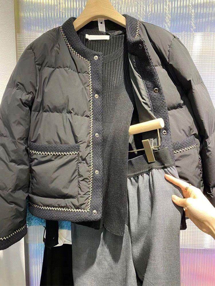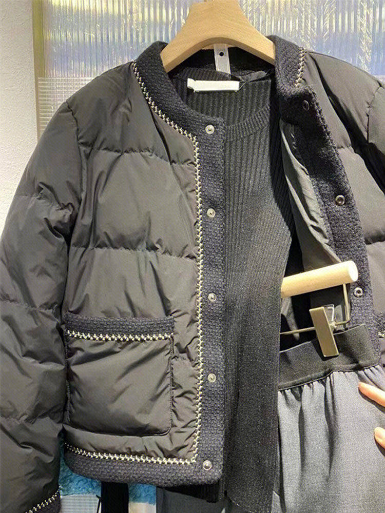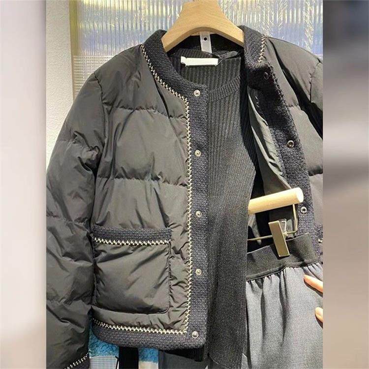 Черный зимний пуховик, короткая куртка, увеличенная толщина, изысканный стиль
