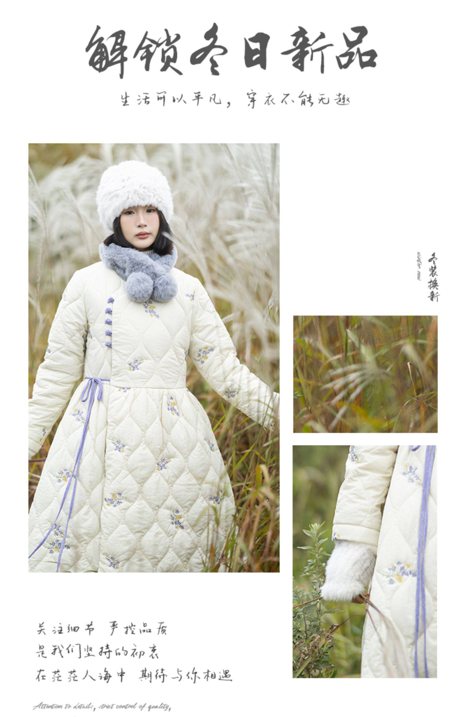 Длинный зимний белый пуховик, куртка, (в наличии на складе), с вышивкой, китайский стиль