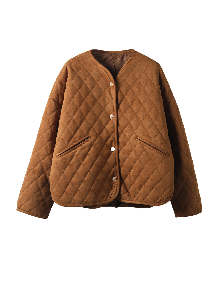 小耳出品 Цветной бархатный короткий пуховик с ромбовидным узором, куртка