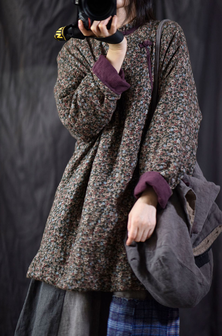 Этническая демисезонная куртка для матери, ретро стеганый пуховик, этнический стиль, китайский стиль, увеличенная толщина, цветочный принт