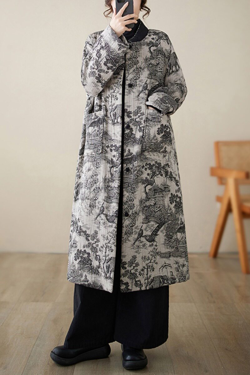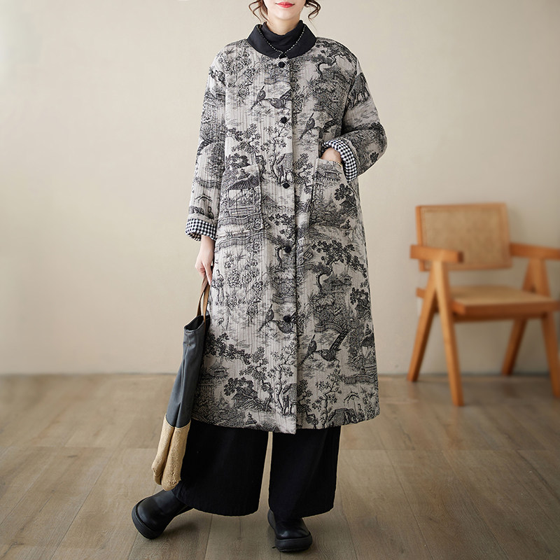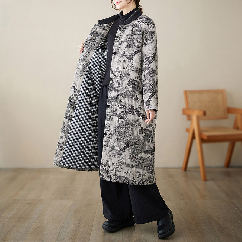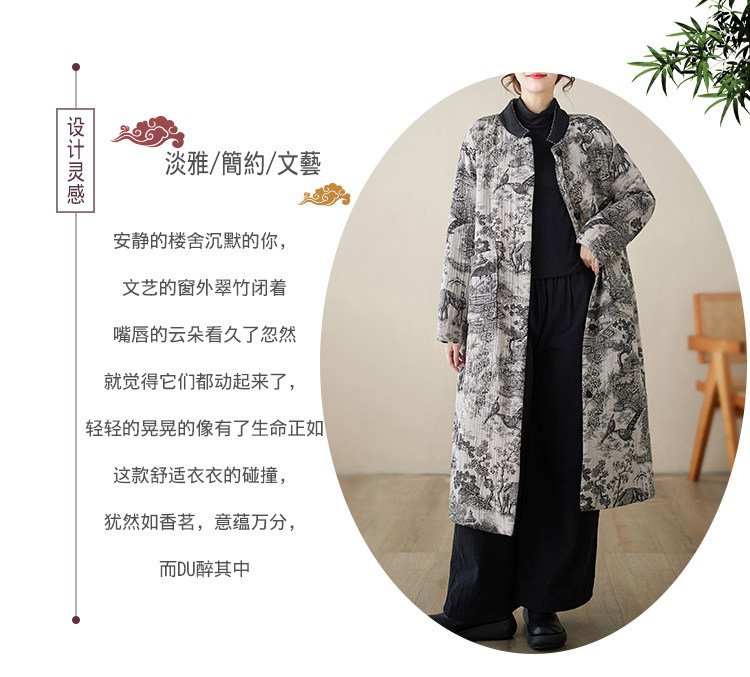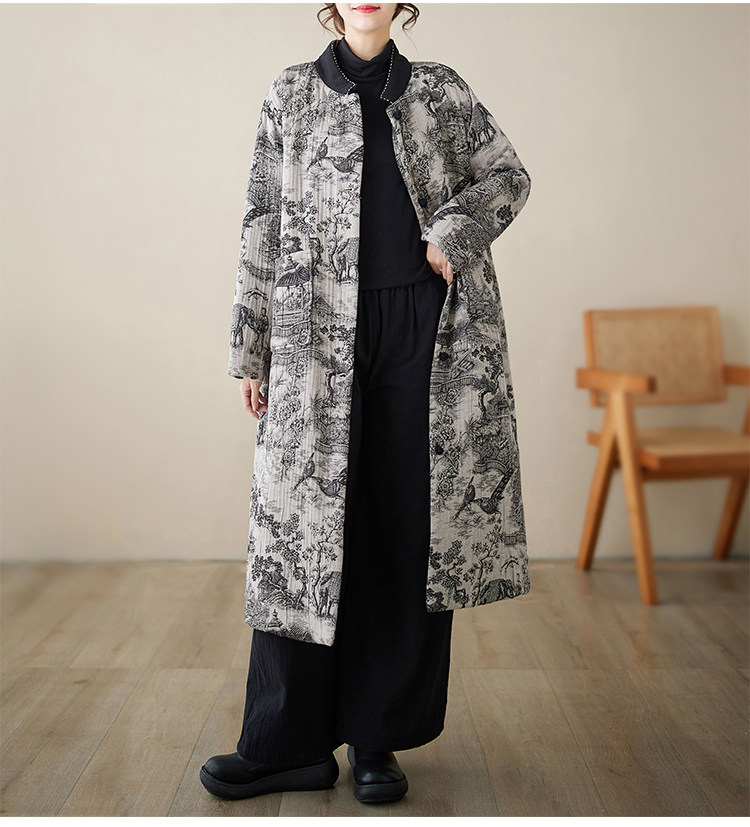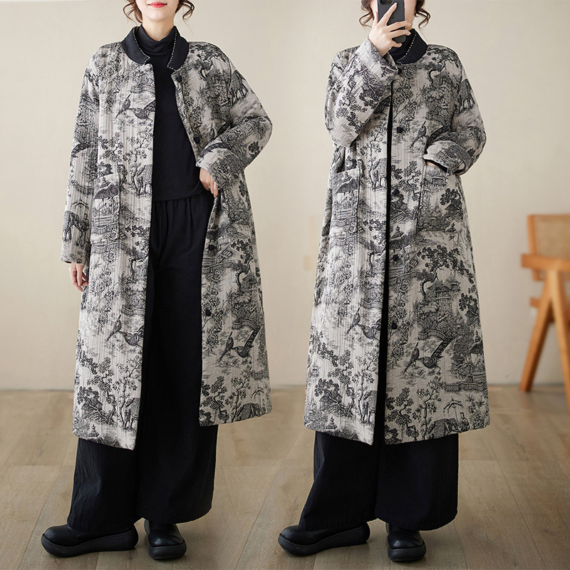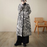 Длинный зимний ретро пуховик, удерживающая тепло куртка, китайский стиль