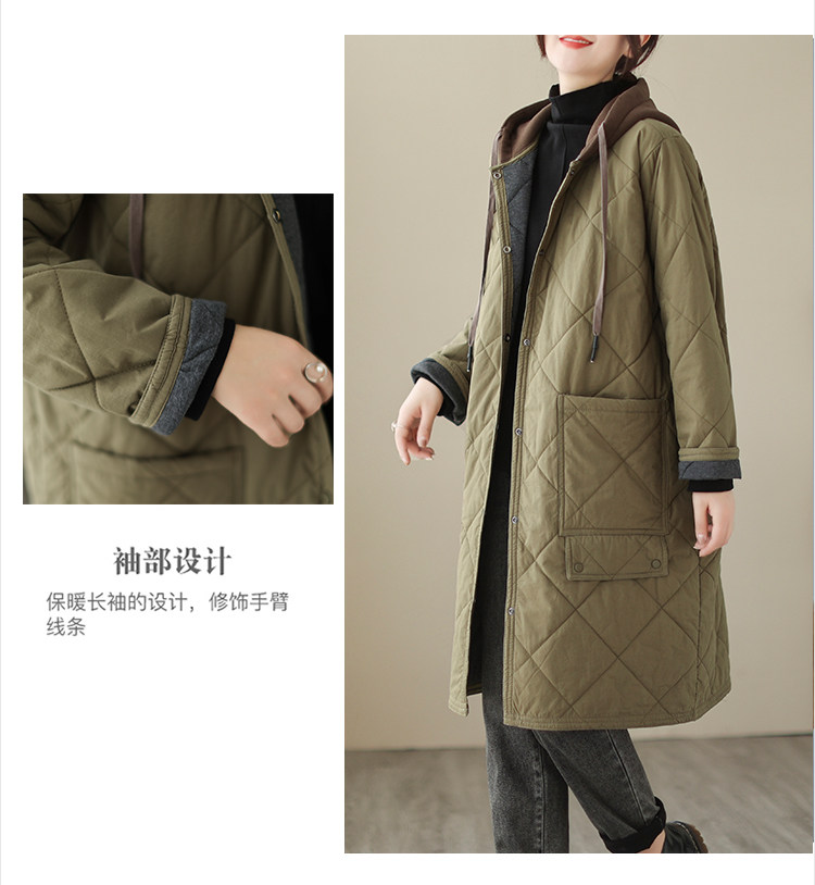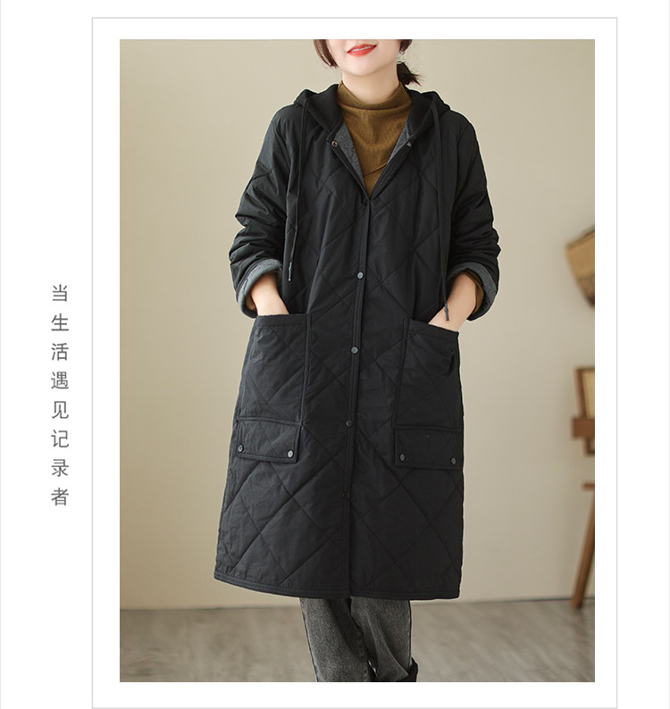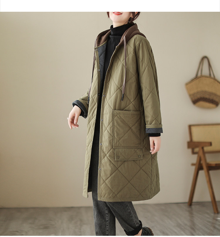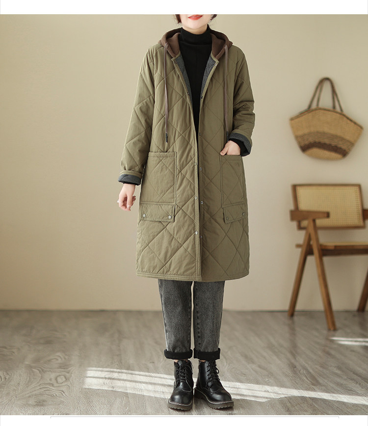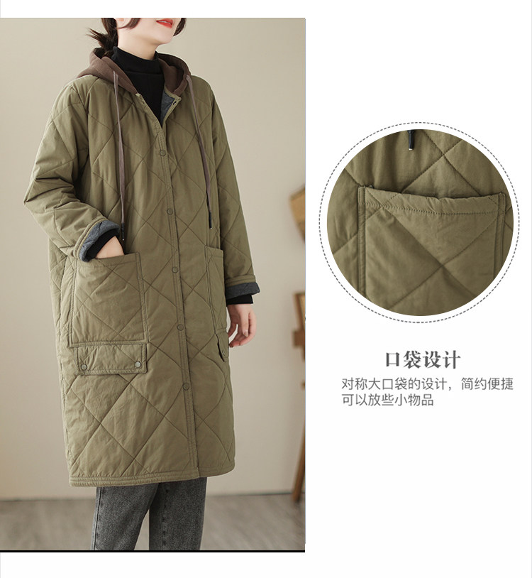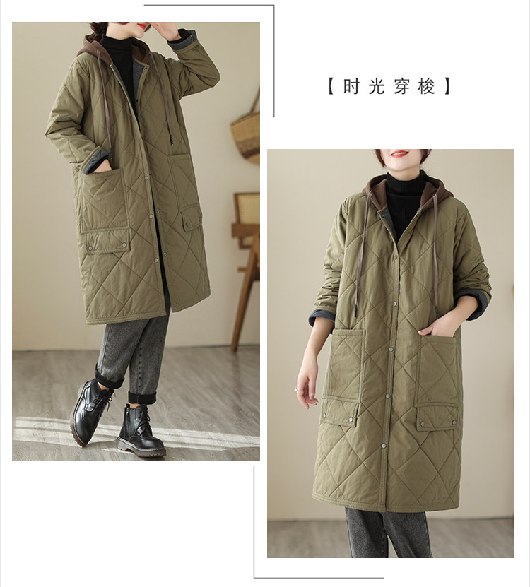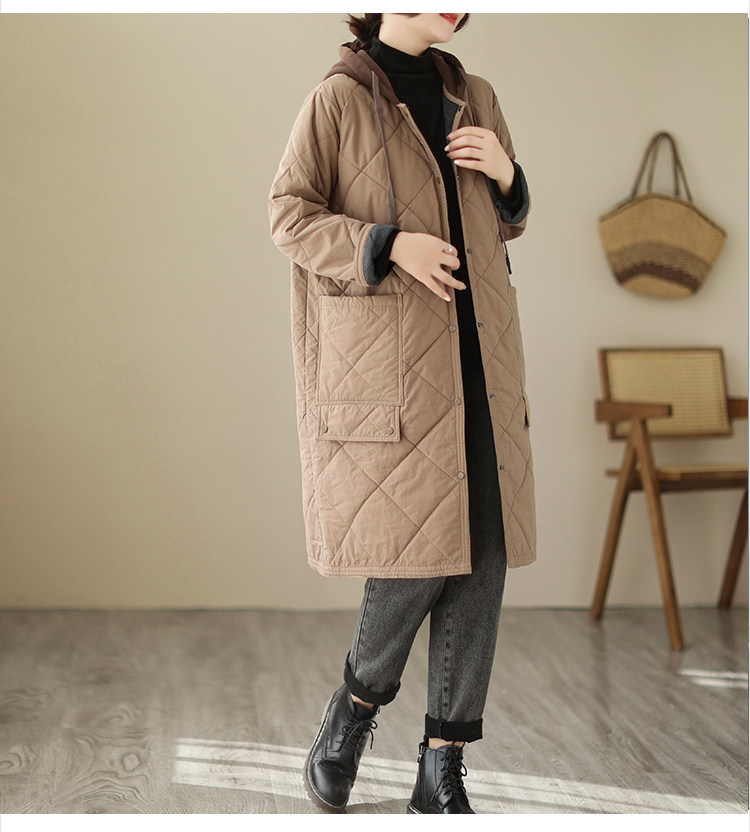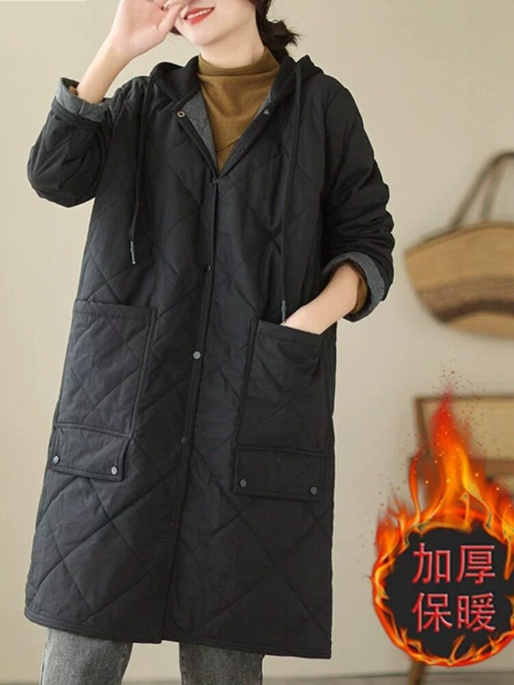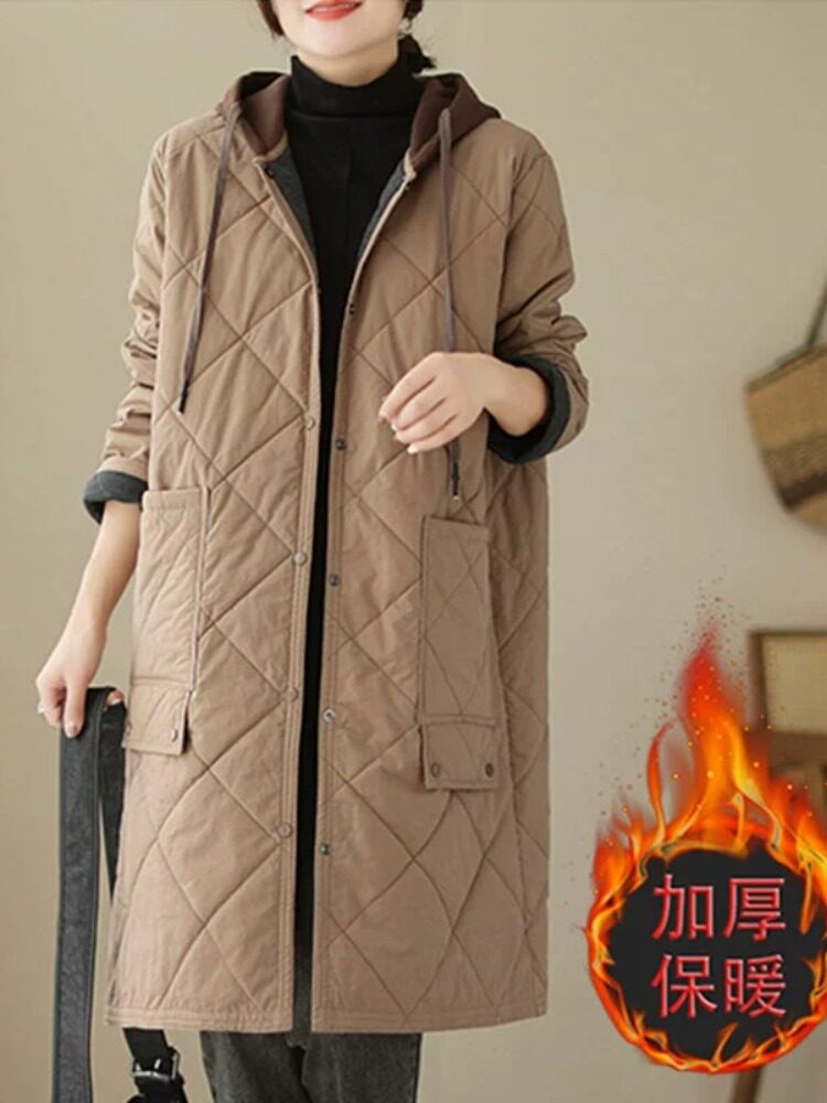 Ретро стеганый длинный зимний пуховик для матери для отдыха, удерживающая тепло куртка с капюшоном, большой размер, увеличенная толщина, средней длины