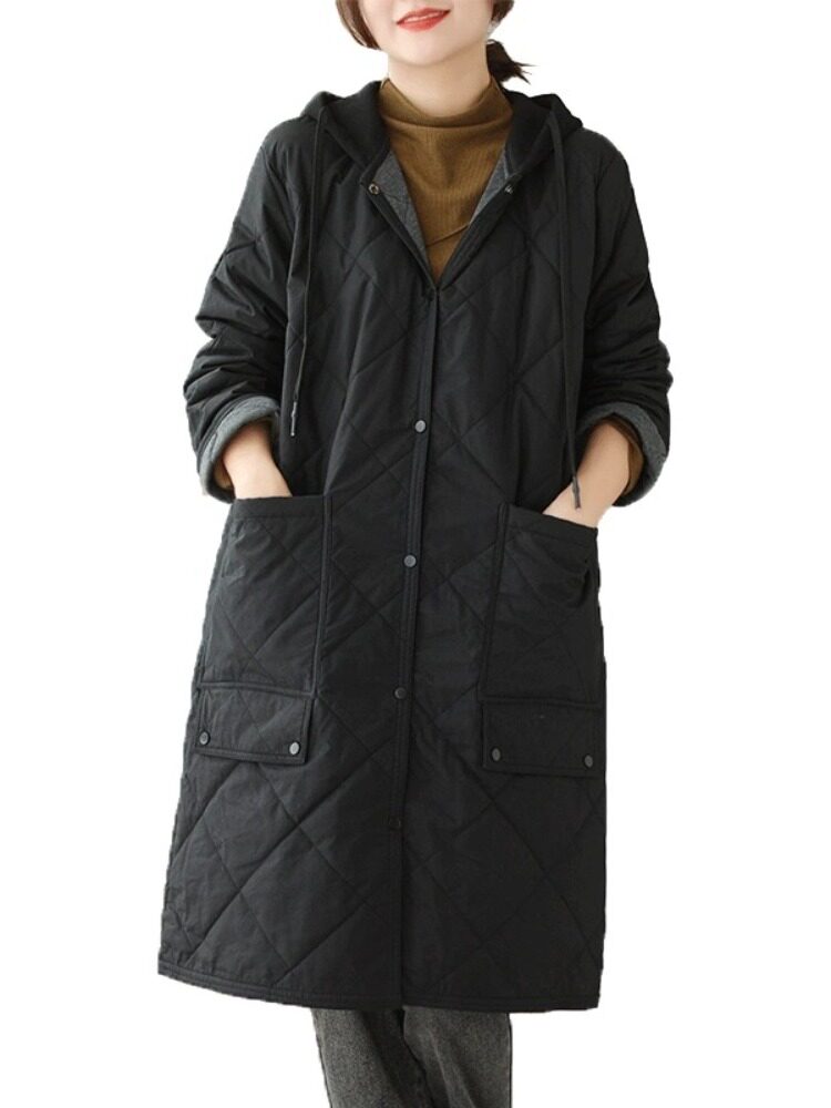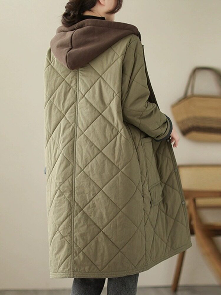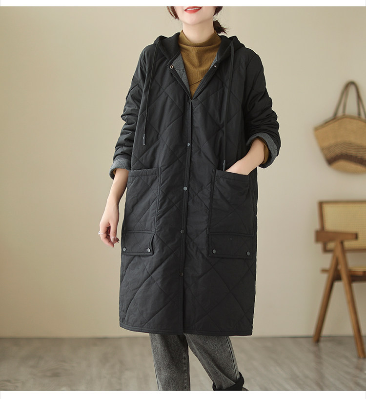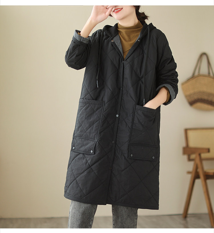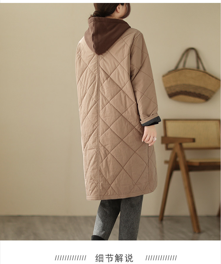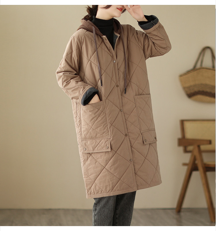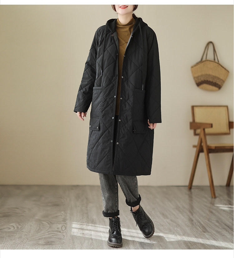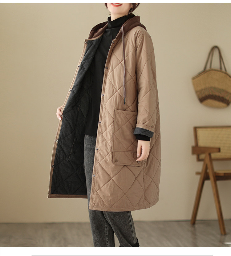 Ретро стеганый длинный зимний пуховик для матери для отдыха, удерживающая тепло куртка с капюшоном, большой размер, увеличенная толщина, средней длины