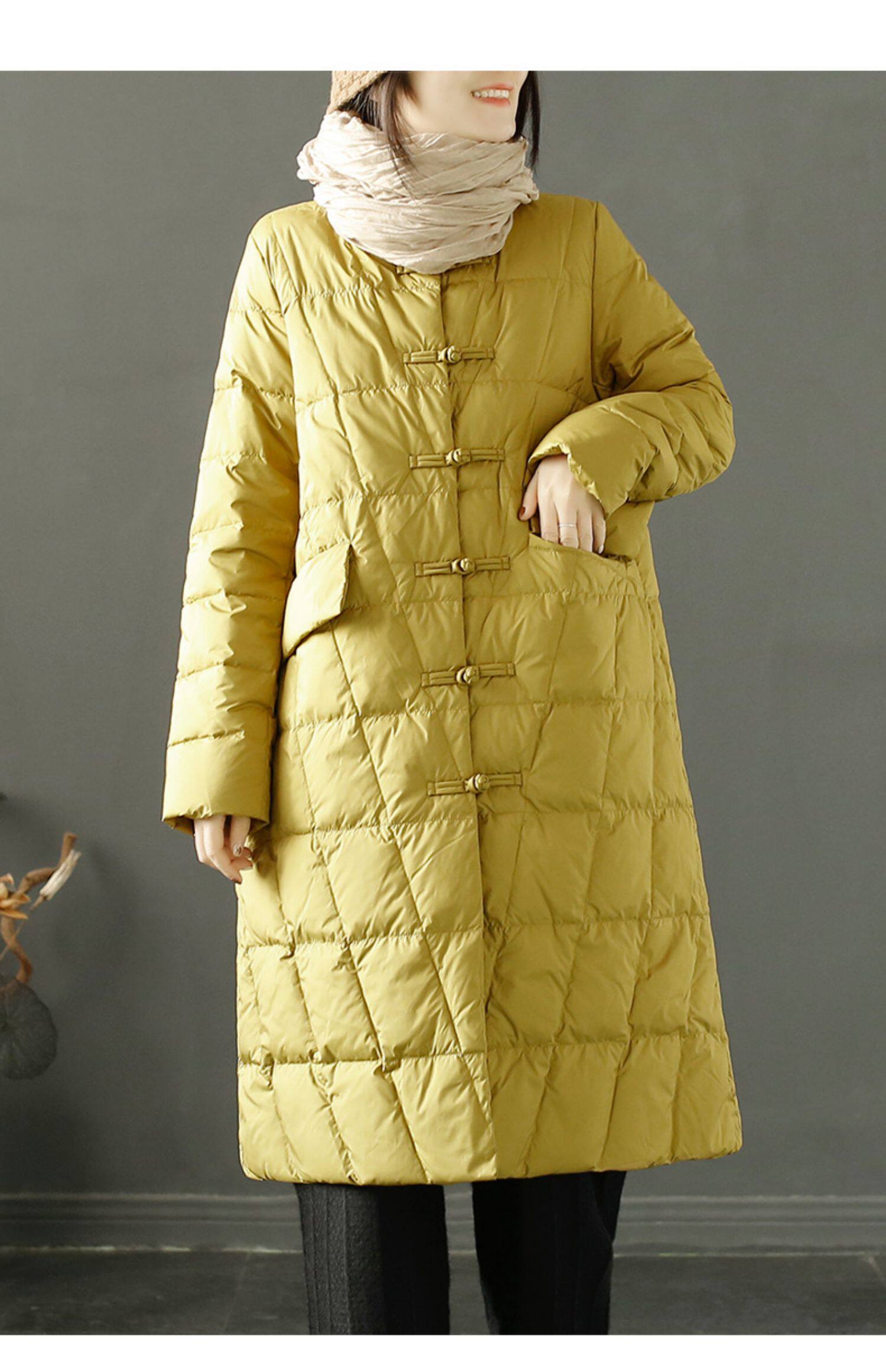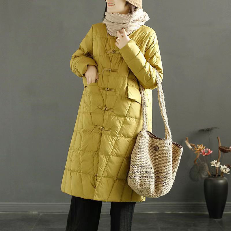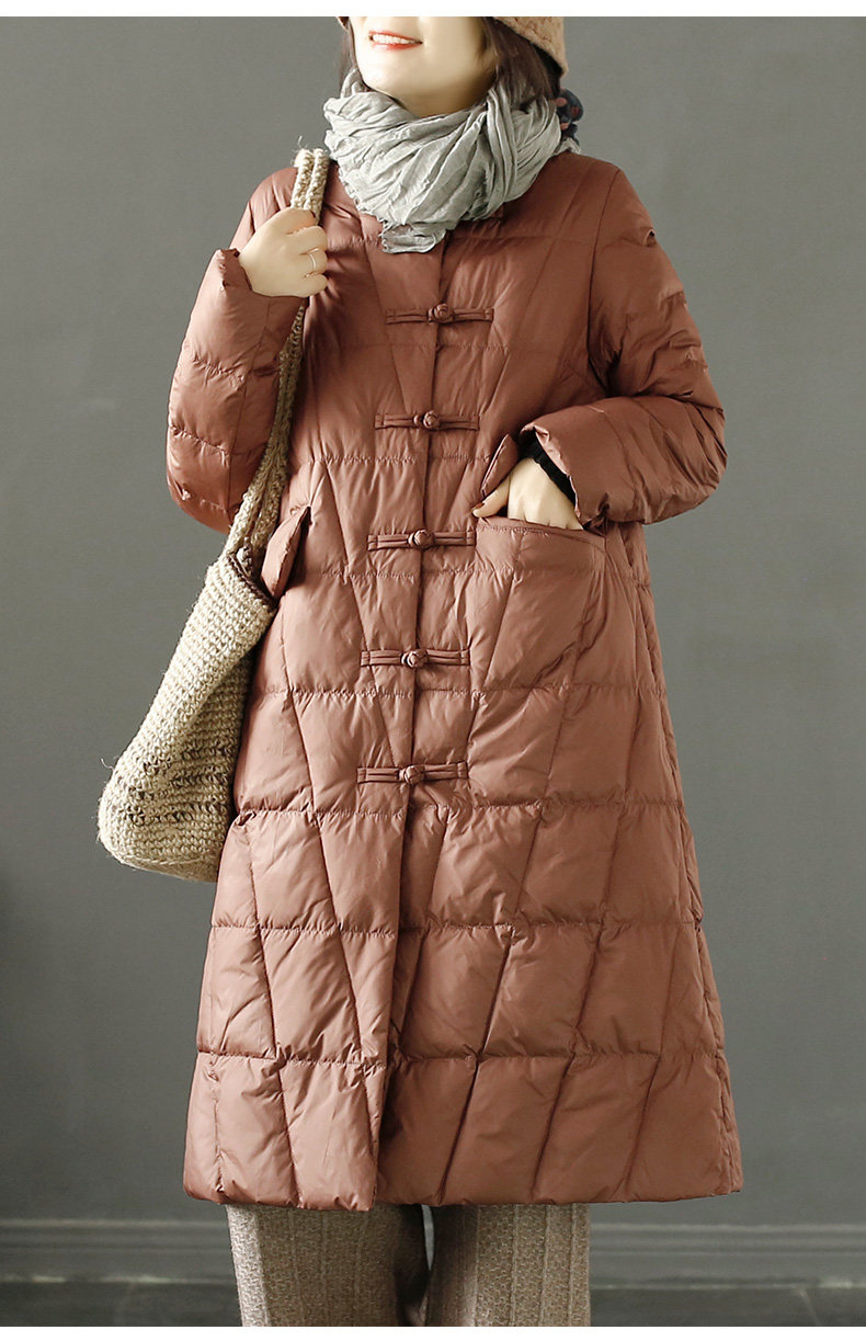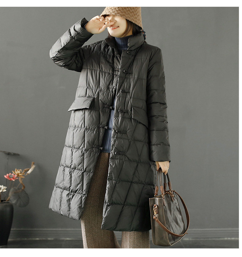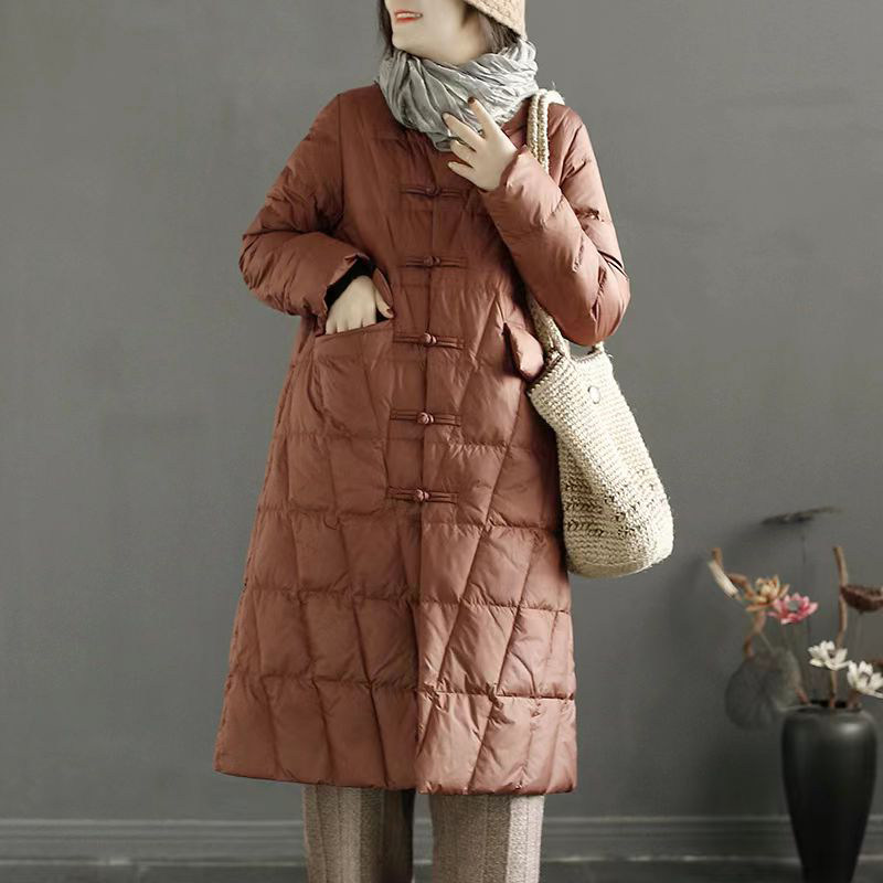 Пуховик с ромбовидным узором с пухом, длинная удерживающая тепло куртка, китайский стиль, для среднего возраста, в западном стиле, средней длины