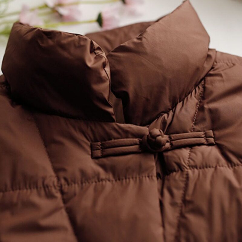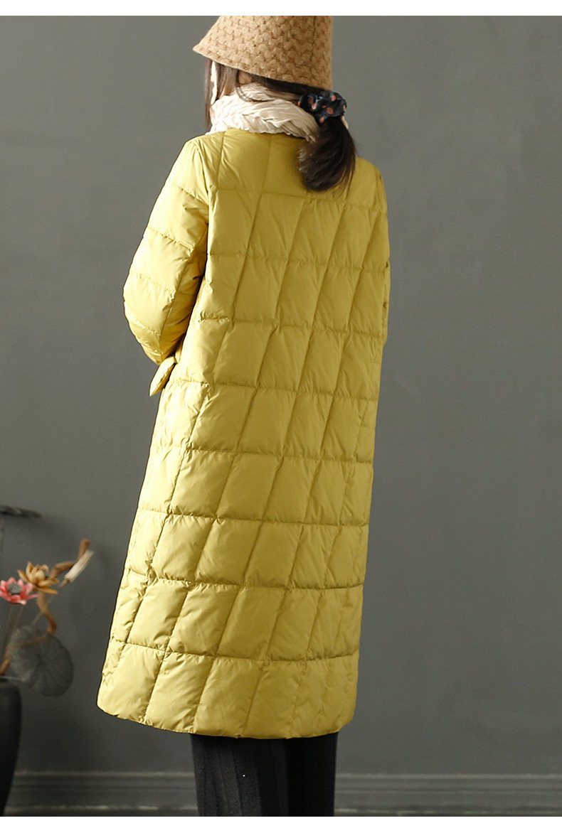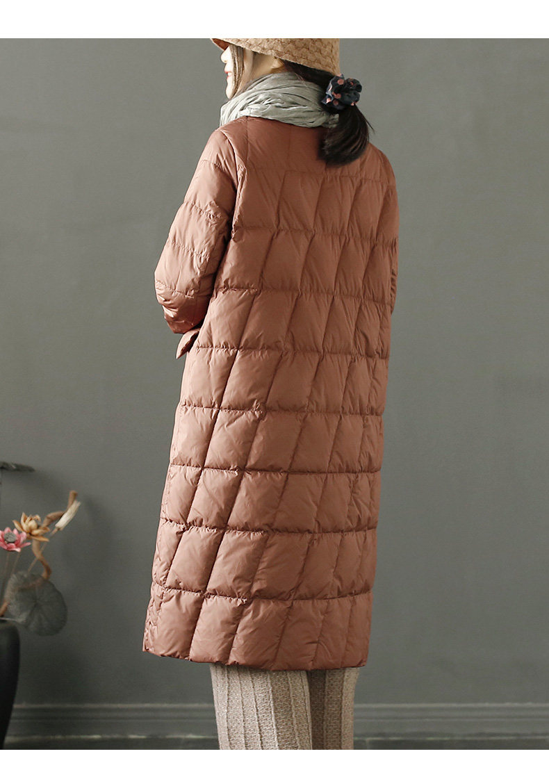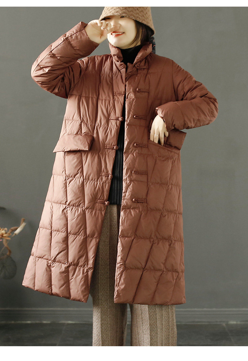 Пуховик с ромбовидным узором с пухом, длинная удерживающая тепло куртка, китайский стиль, для среднего возраста, в западном стиле, средней длины