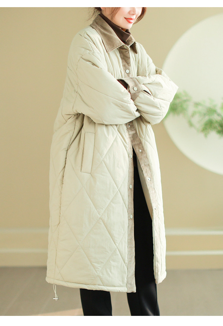 Зимняя ретро длинная вельветовая стеганая куртка с ромбовидным узором, увеличенная толщина