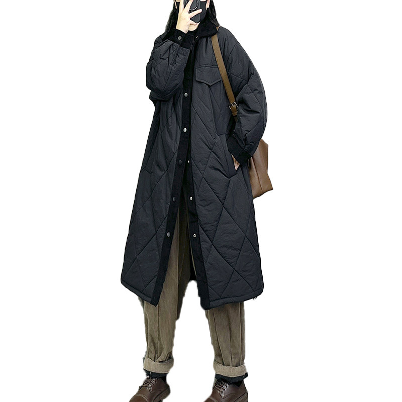 Брендовый демисезонный ретро длинный модный пуховик, стеганая куртка, свободный крой, оверсайз, увеличенная толщина
