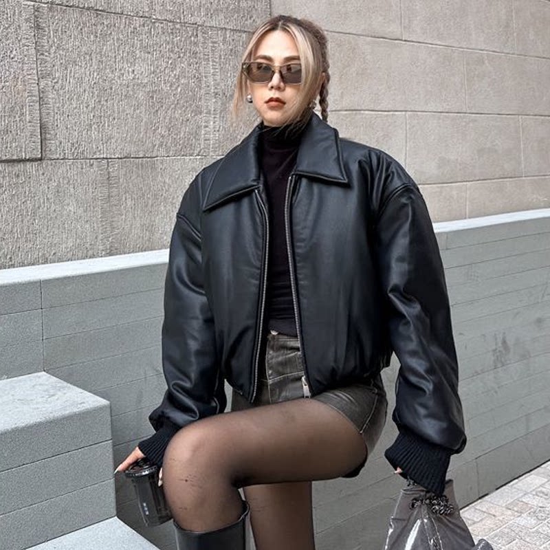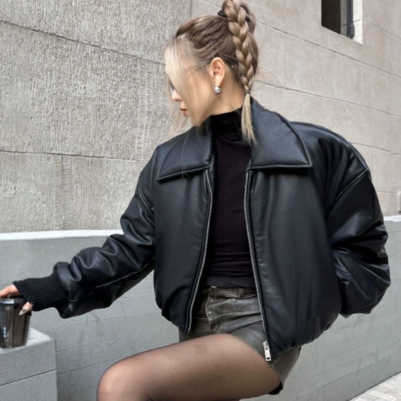 Ретро полиуретановый пуховик, демисезонные короткие джинсы с начесом, удерживающая тепло куртка, в американском стиле
