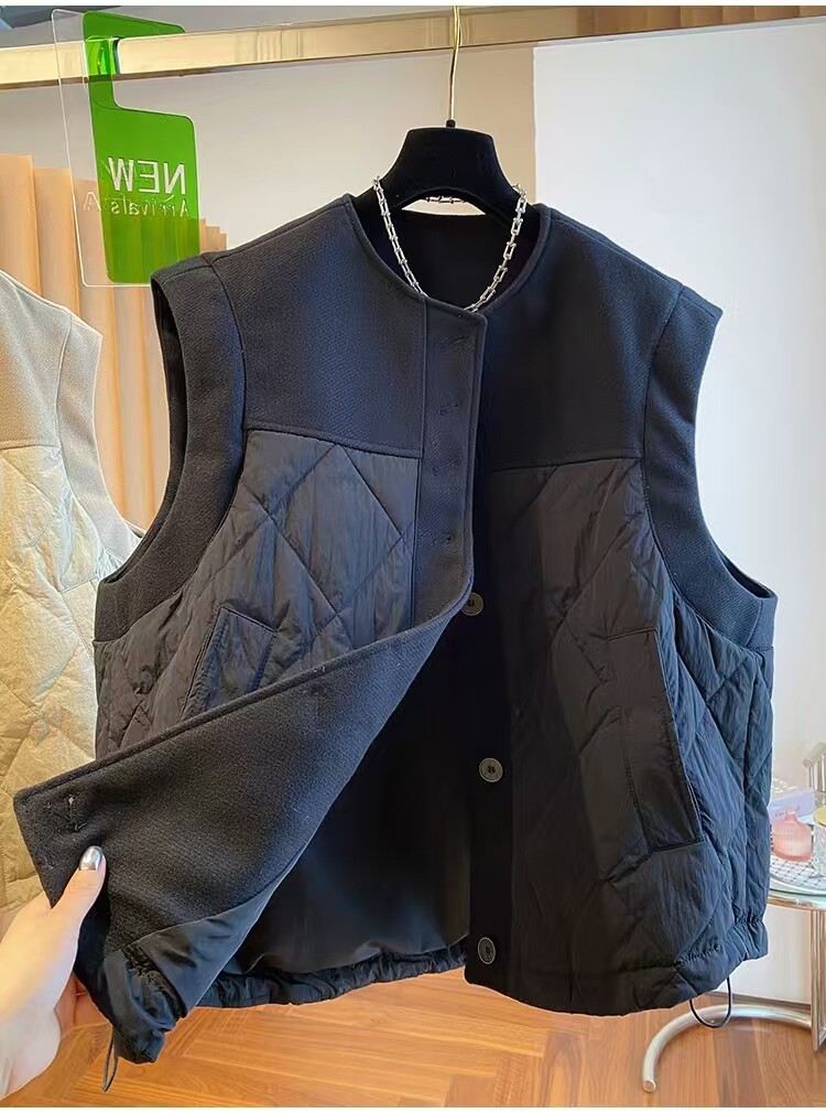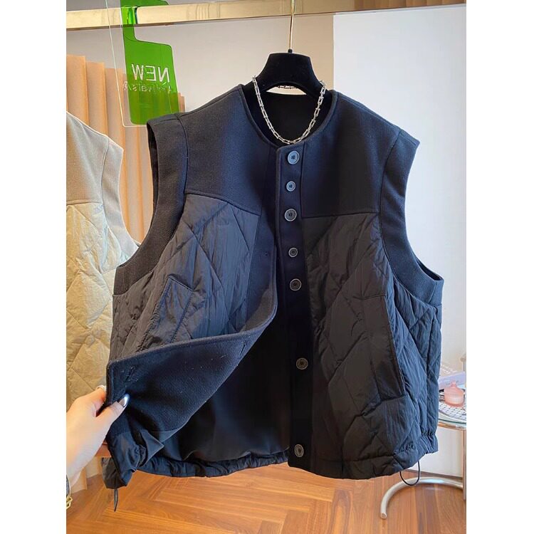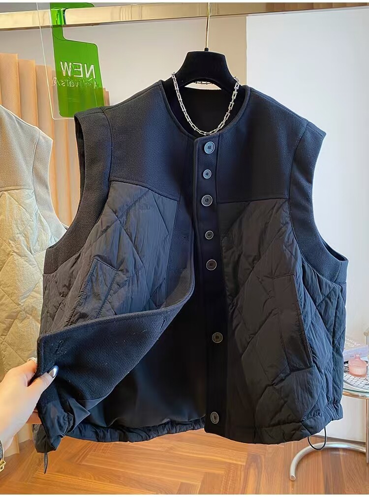 Дизайнерский шерстяной зимний жилет с пухом, куртка для отдыха без рукавов, оверсайз, свободный крой