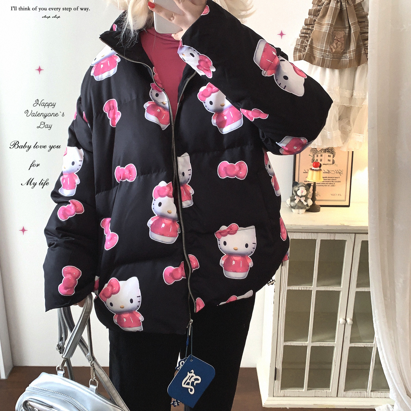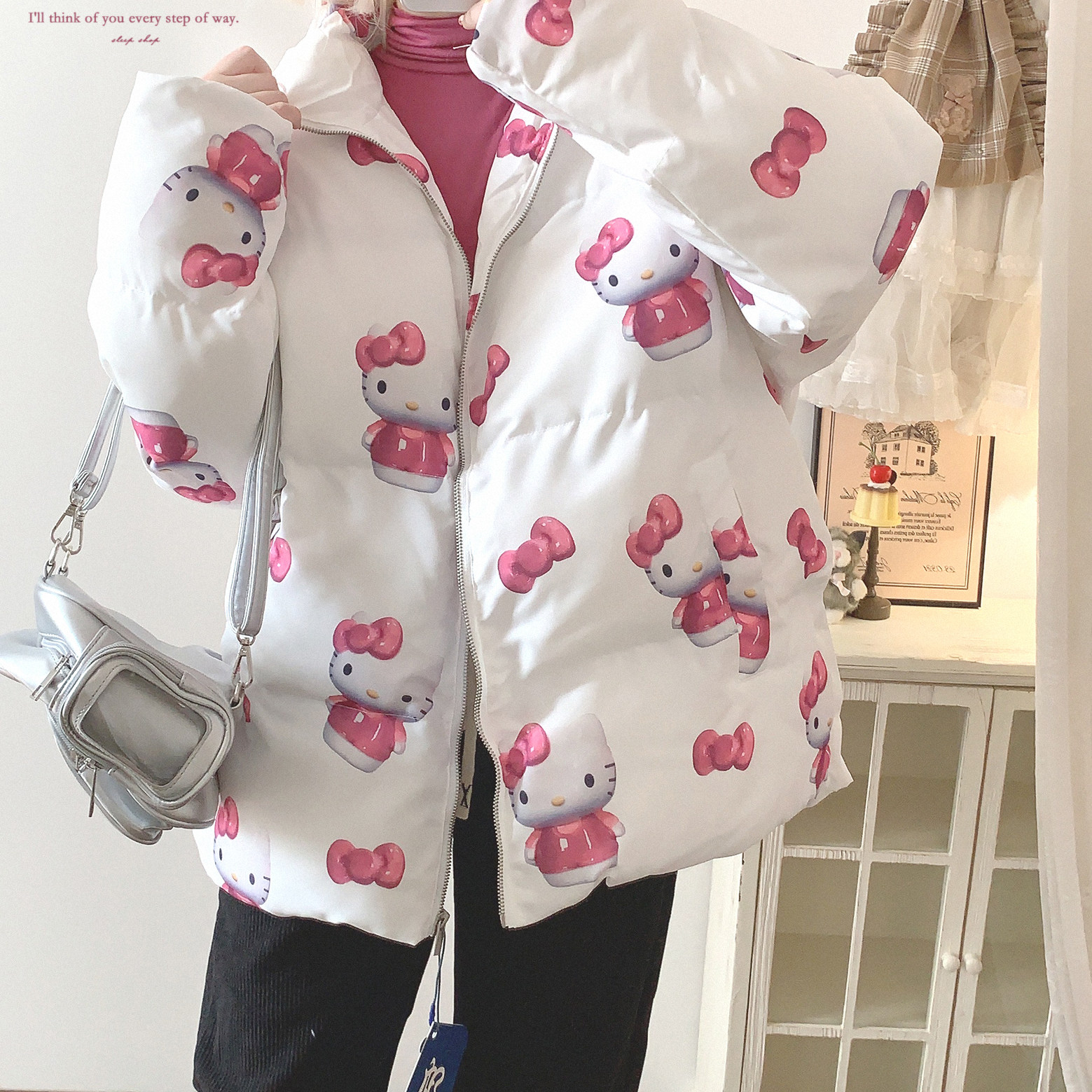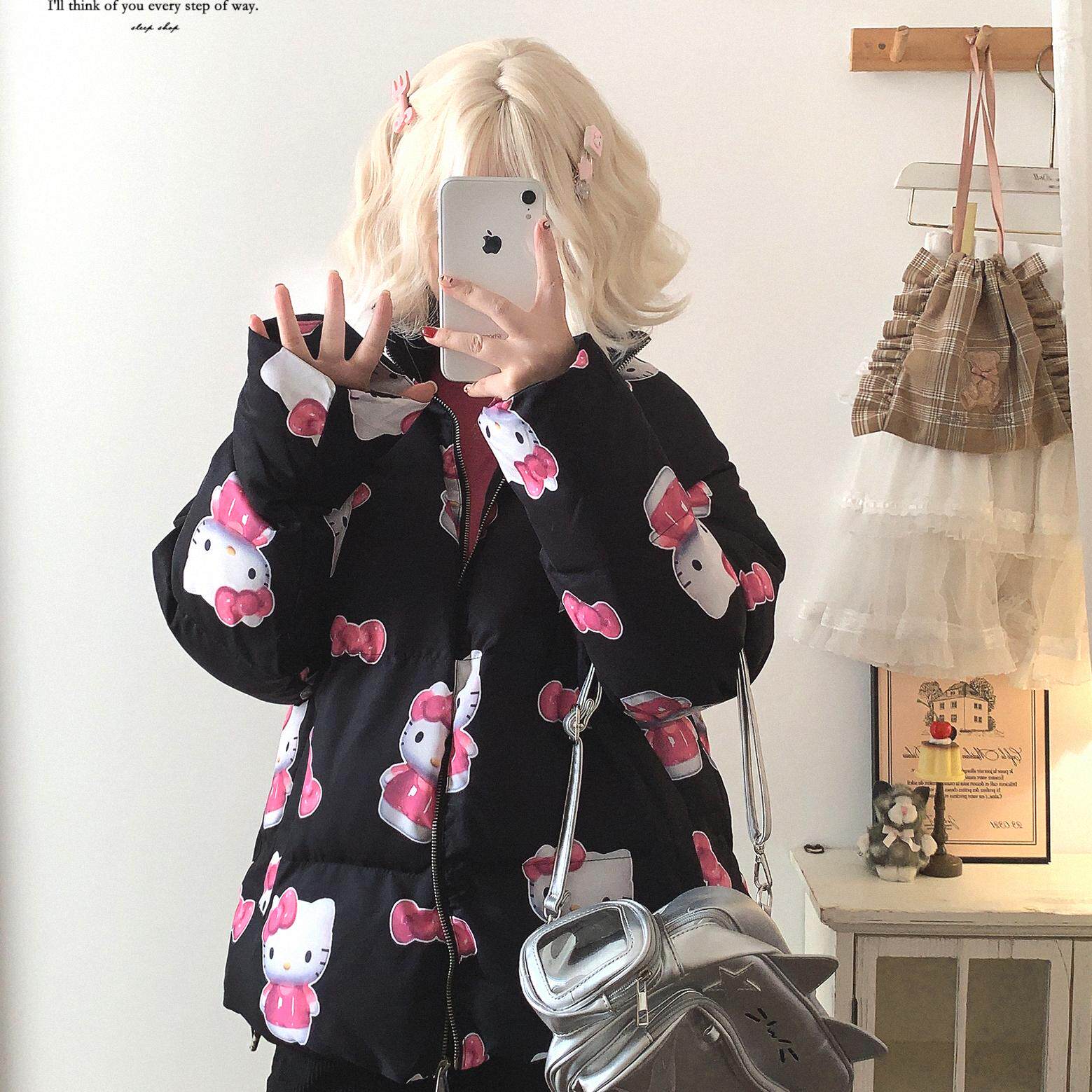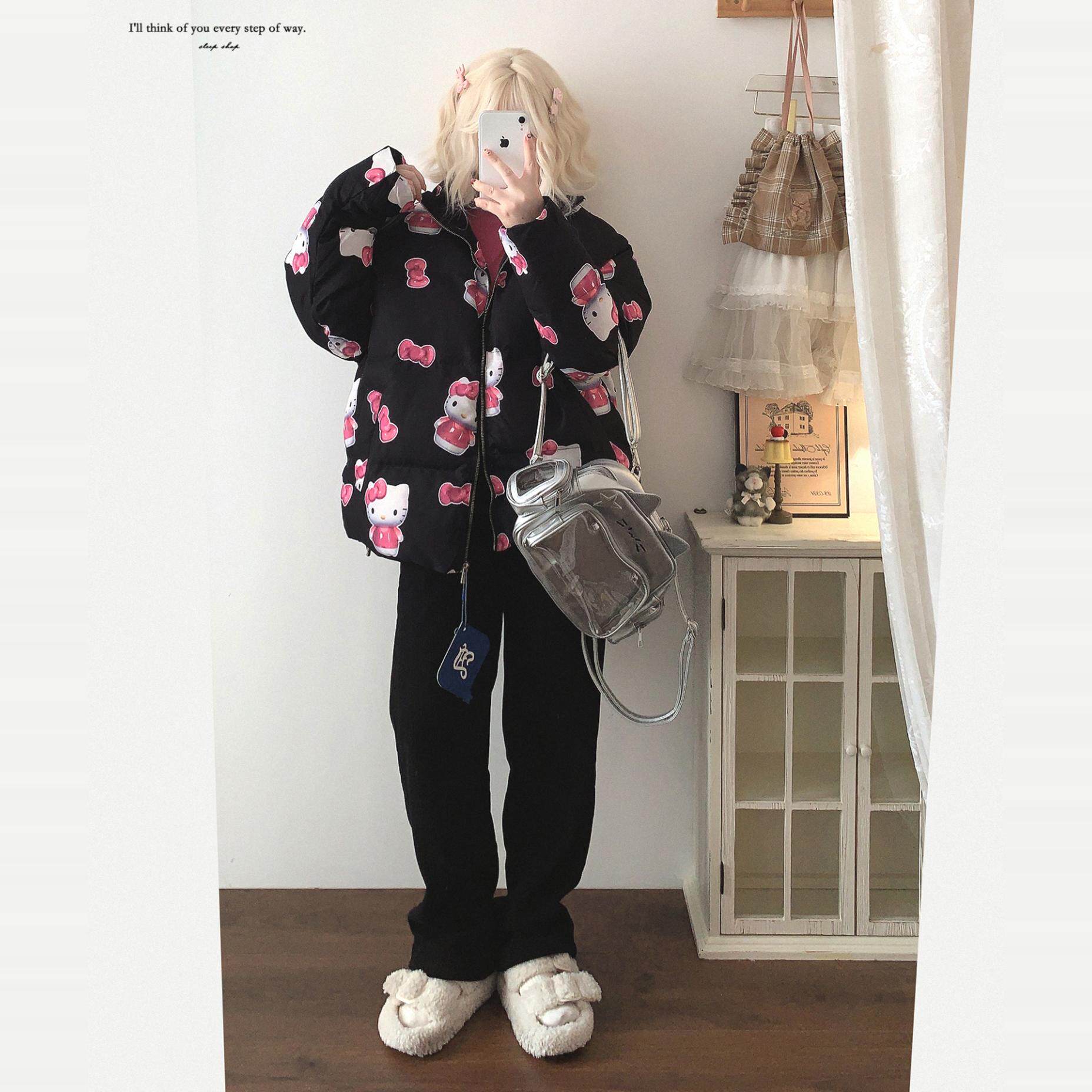 Хвост одиночный дофамин милый кошачий лук принта при печати воротничка хлебная одежда хлопковая куртка