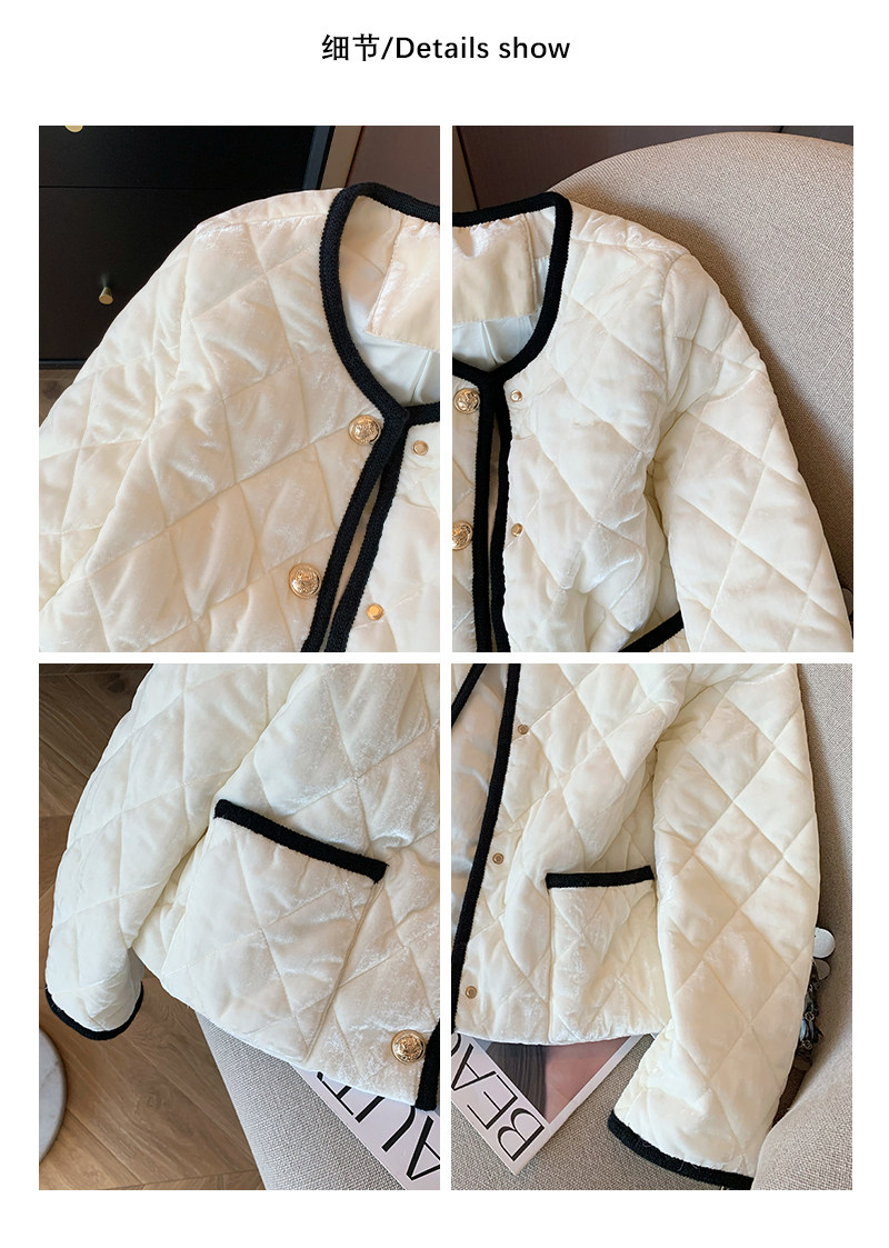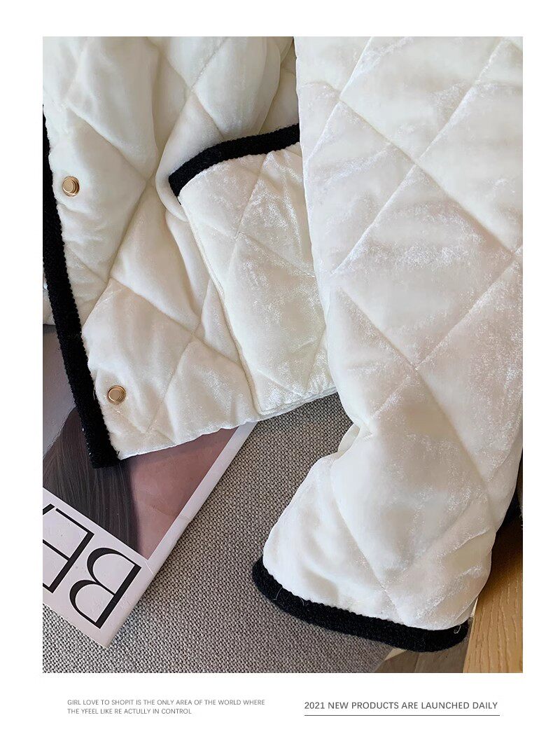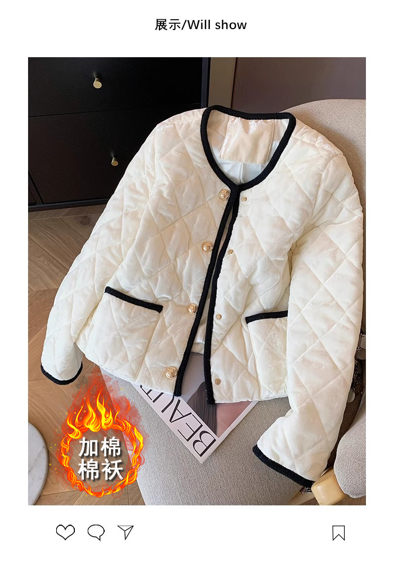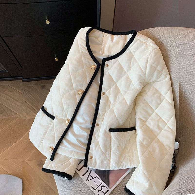 Бархатная куртка с круглым воротником, пуховик, в стиле Шанель, изысканный стиль, свободный крой