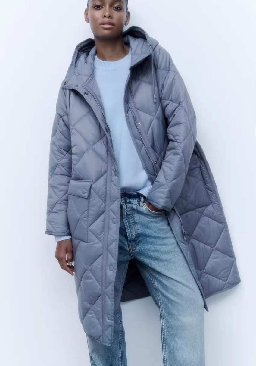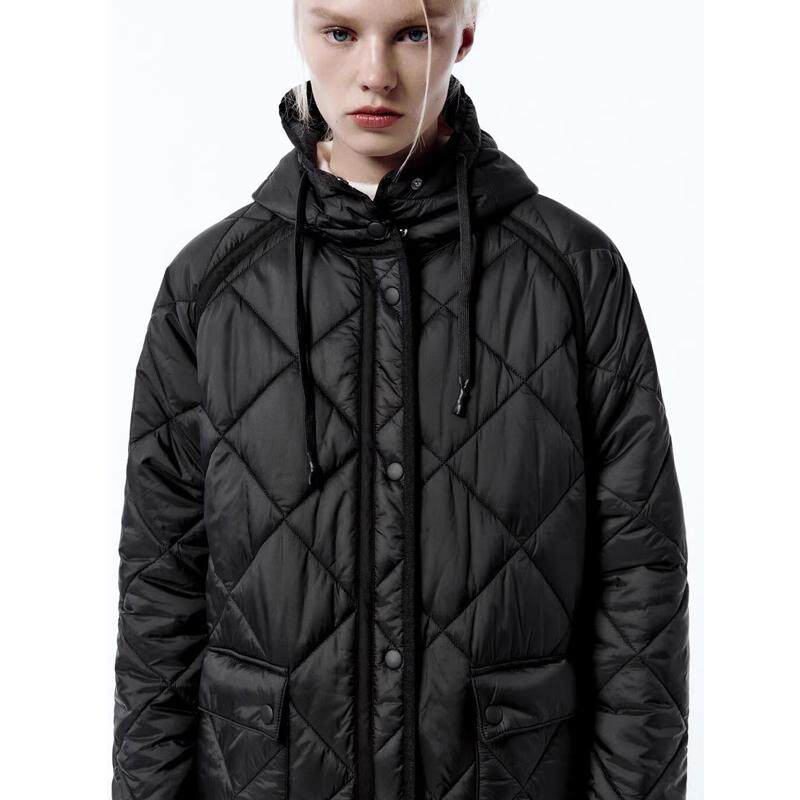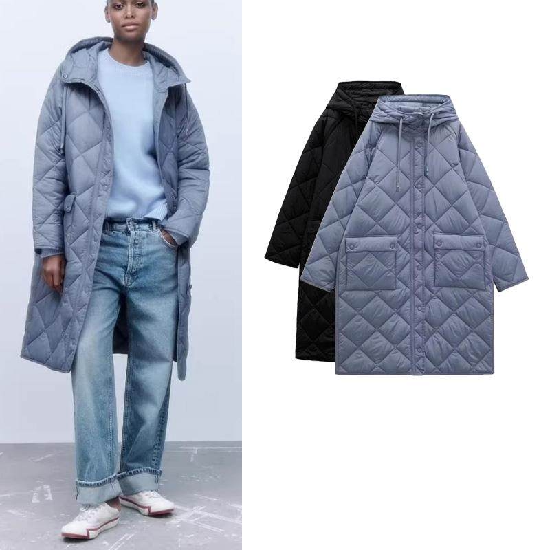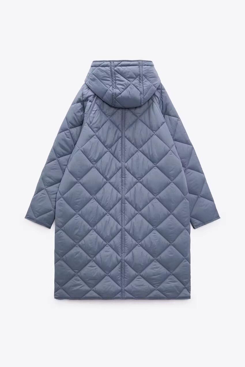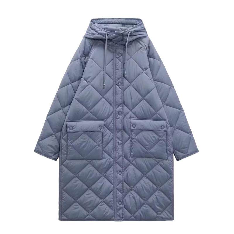 Демисезонная длинная толстовка с капюшоном с ромбовидным узором, пуховик, куртка, городской стиль, европейский стиль, средней длины