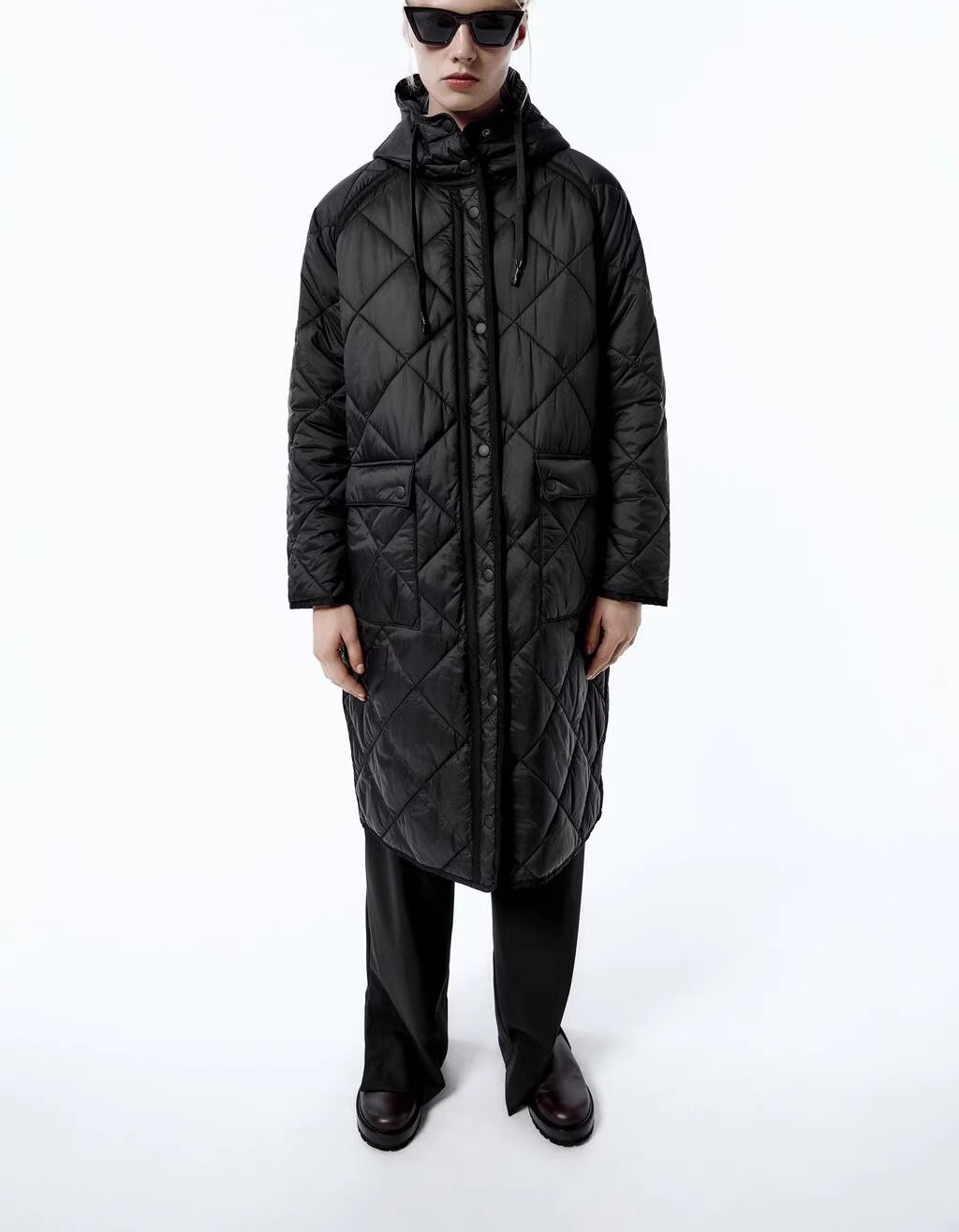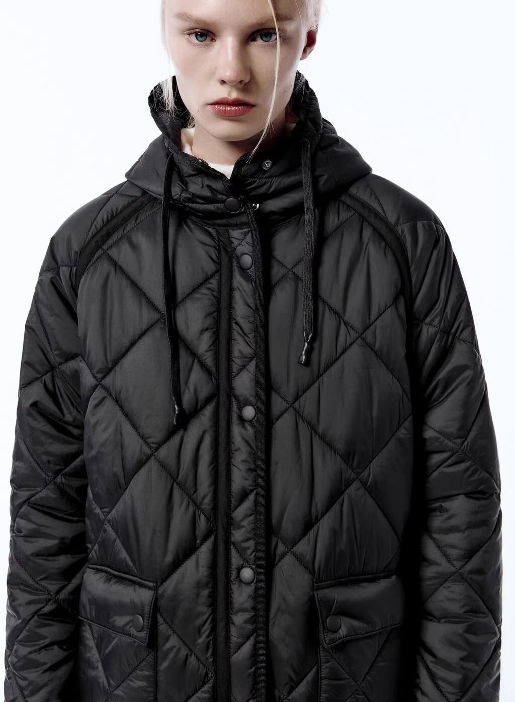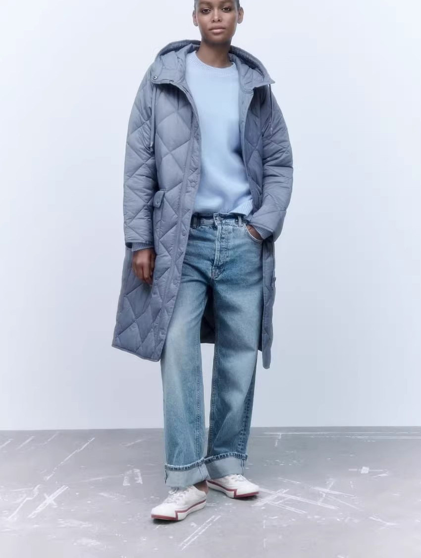 Демисезонная длинная толстовка с капюшоном с ромбовидным узором, пуховик, куртка, городской стиль, европейский стиль, средней длины