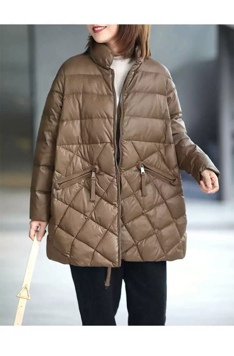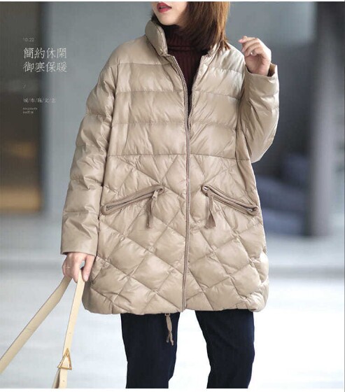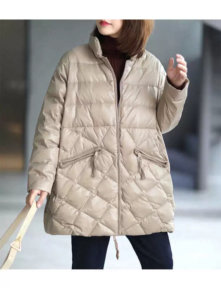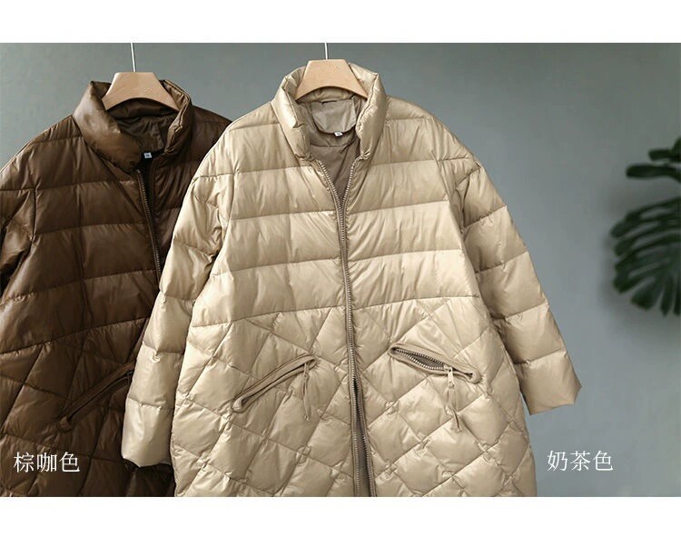 Зимний длинный пуховик с ромбовидным узором с пухом, куртка, в корейском стиле, средней длины