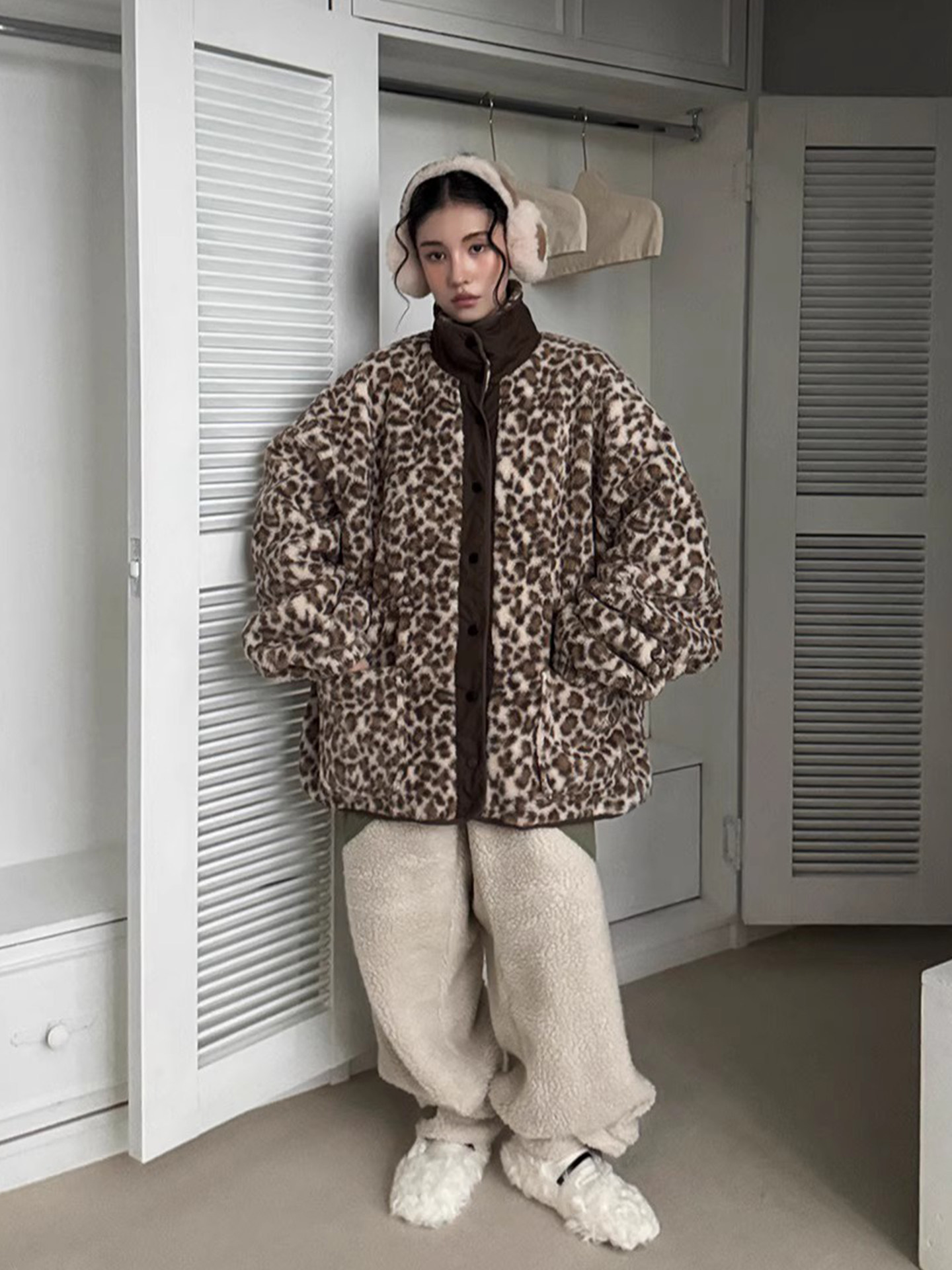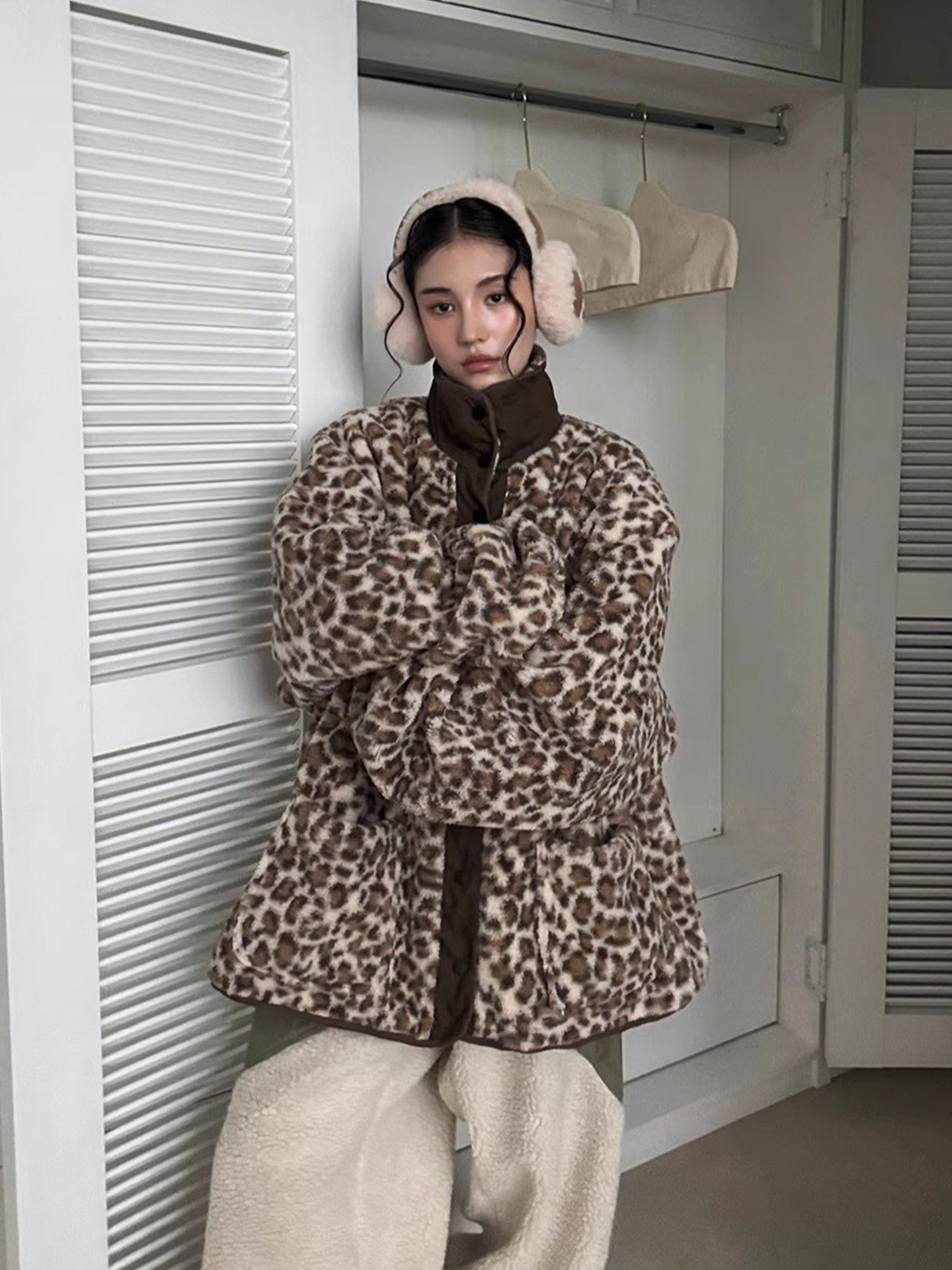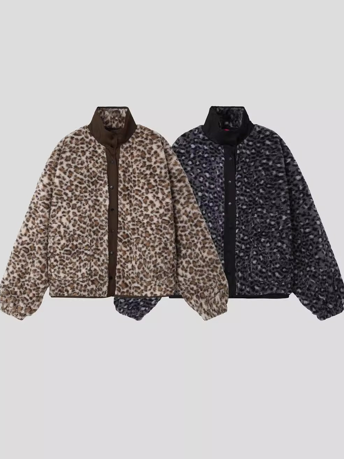 Женская хлопковая куртка с воротником-стойкой и контрастной цветной строчкой в стиле ретро, хлопковая куртка с леопардовым принтом 2025, новый стиль, универсальный топ с двойным карманом