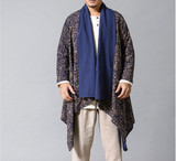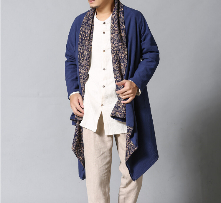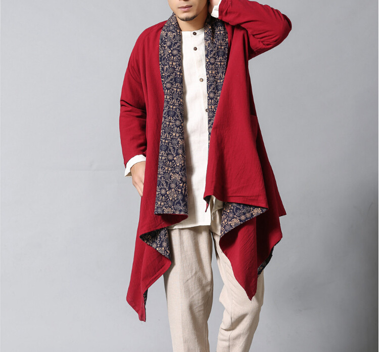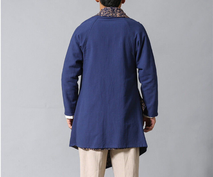 Демисезонная этническая ретро куртка подходит для мужчин и женщин для влюбленных, кардиган, двусторонний плащ, этнический стиль, из хлопка и льна