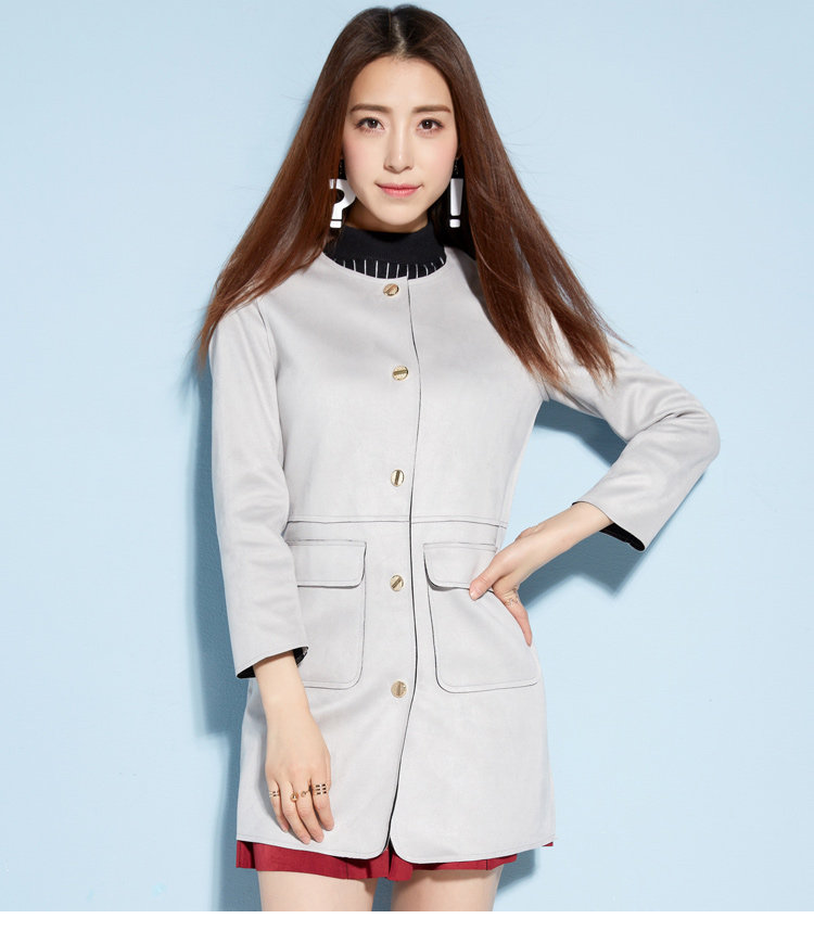 Осенняя длинная куртка, плащ с круглым воротником, средней длины, в корейском стиле, облегающий крой
