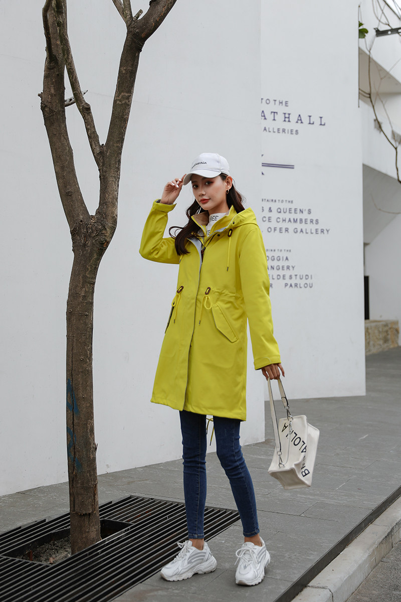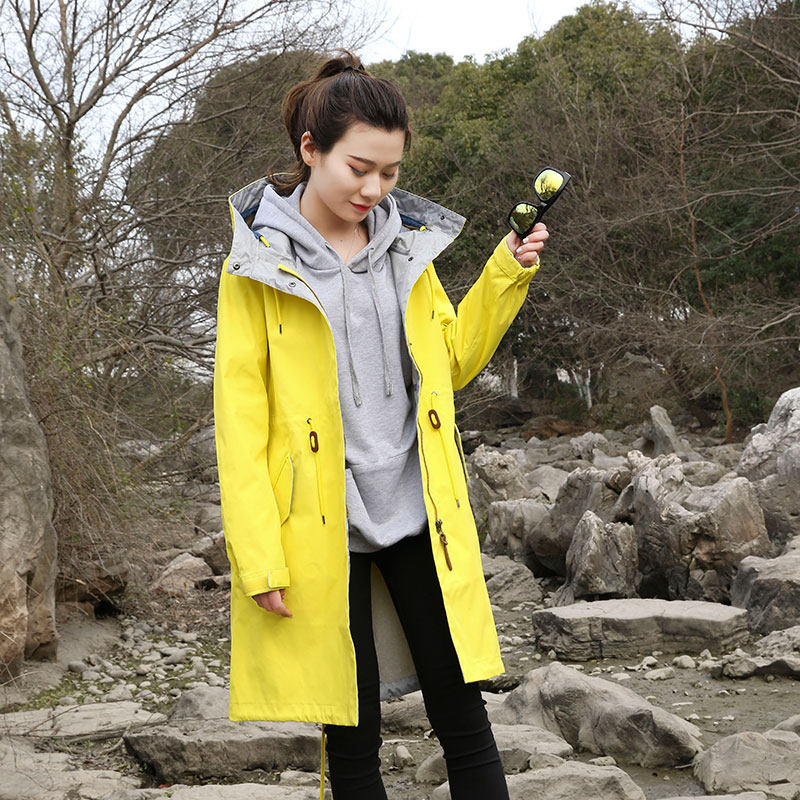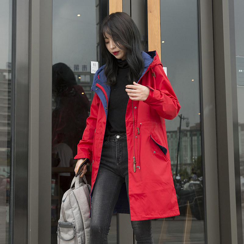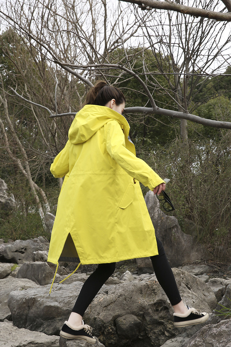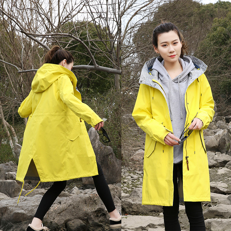 Осенний длинный плащ, ветрозащитный водонепроницаемый корсет с капюшоном, куртка для отдыха, 2023, средней длины, большой размер, облегающий крой