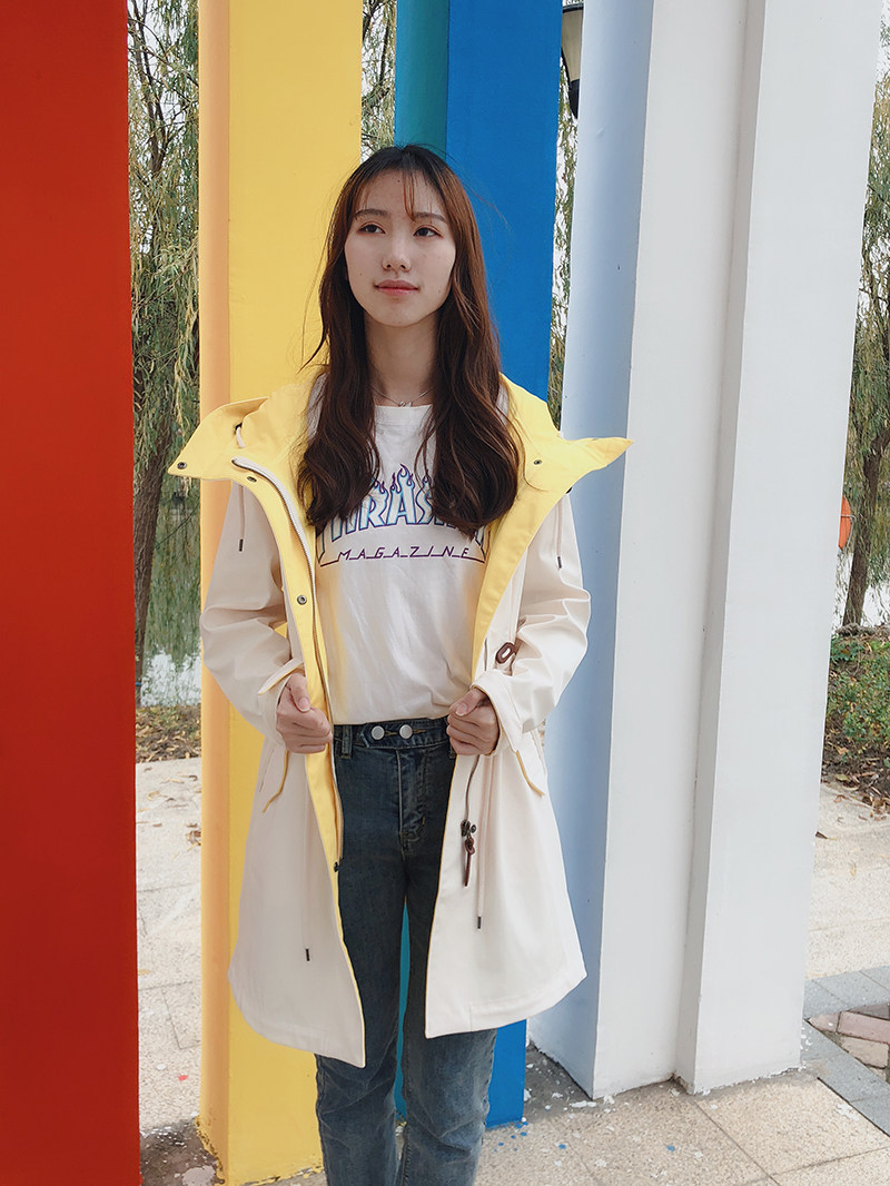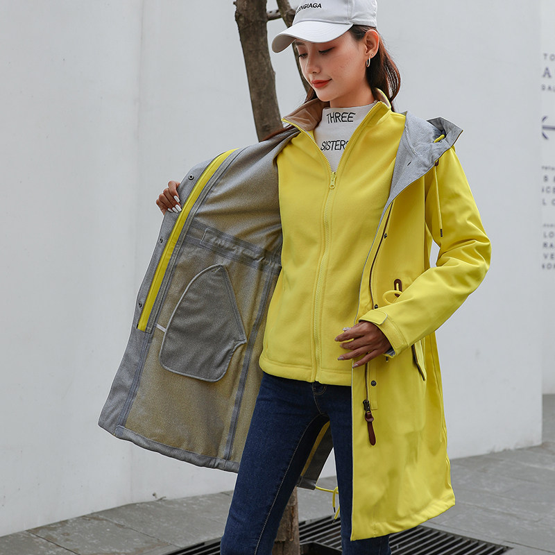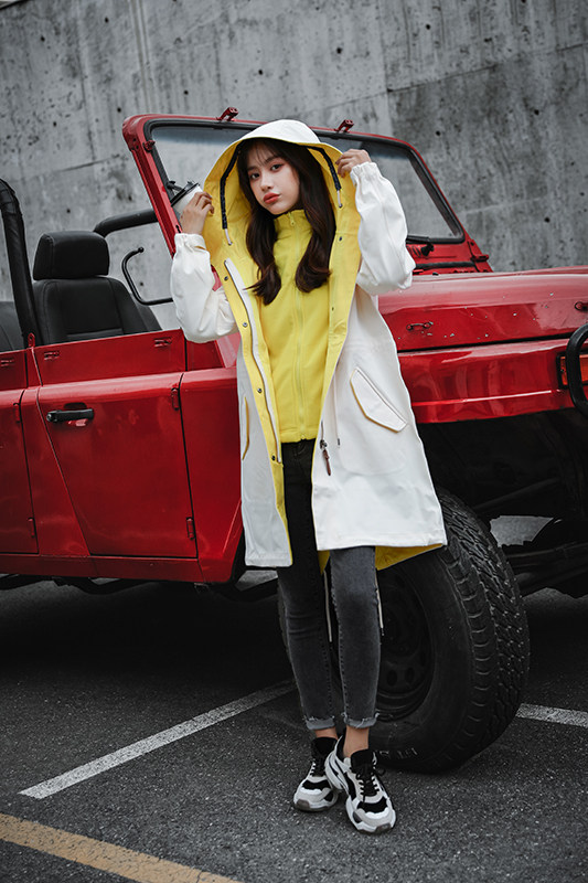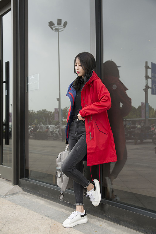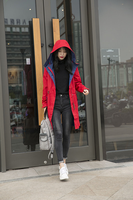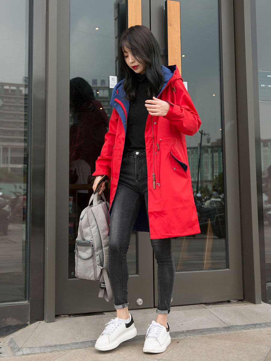 Осенний длинный плащ, ветрозащитный водонепроницаемый корсет с капюшоном, куртка для отдыха, 2023, средней длины, большой размер, облегающий крой