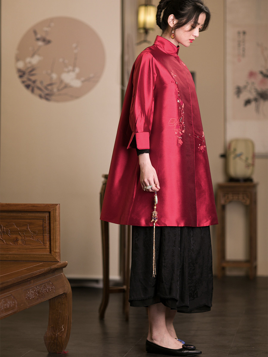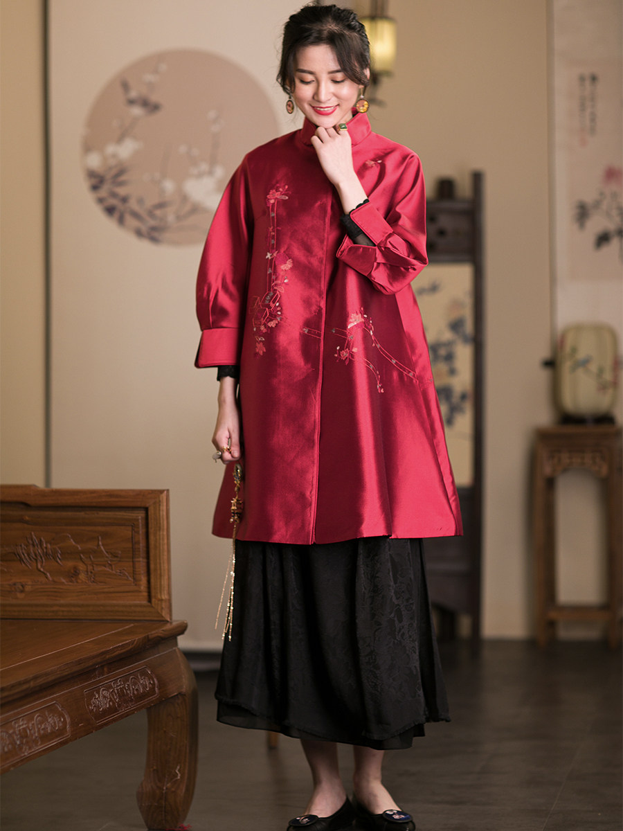 Демисезонный этнический ретро длинный весенний плащ, китайский стиль, этнический стиль, средней длины