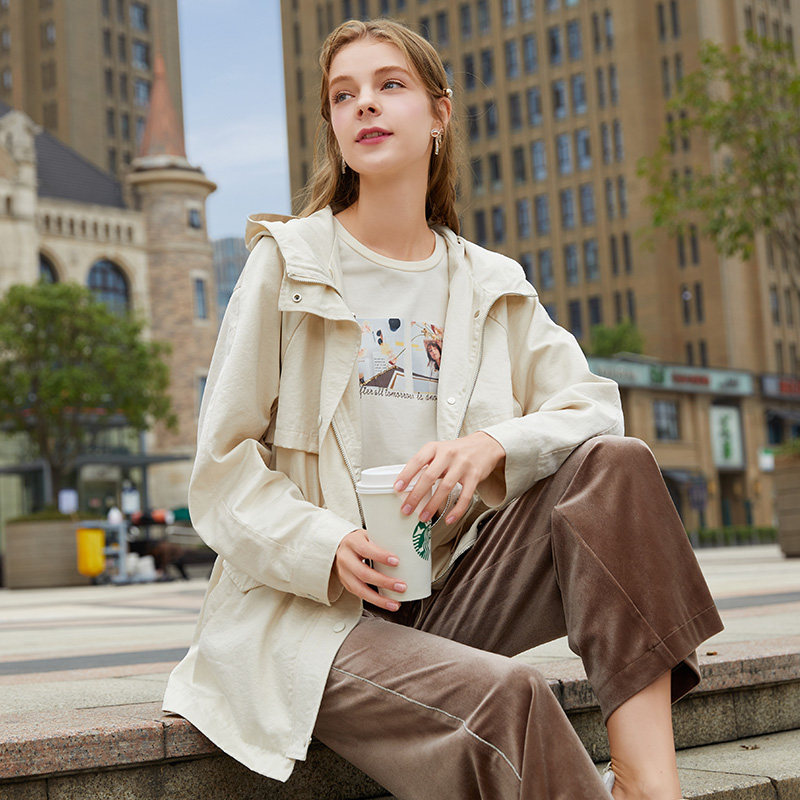 香影 Куртка, корсет с капюшоном, плащ, 2020, в корейском стиле, с вышивкой