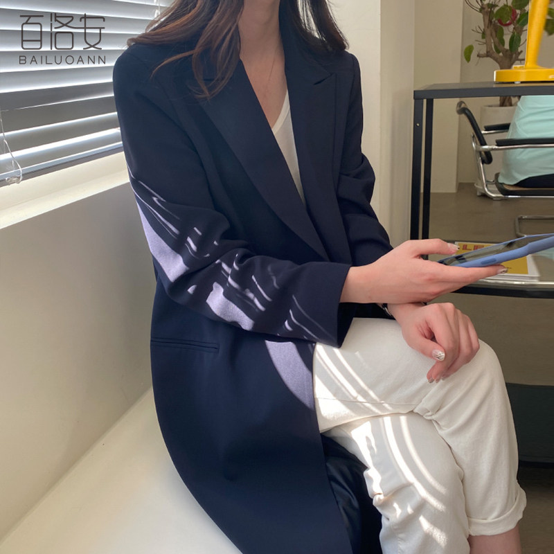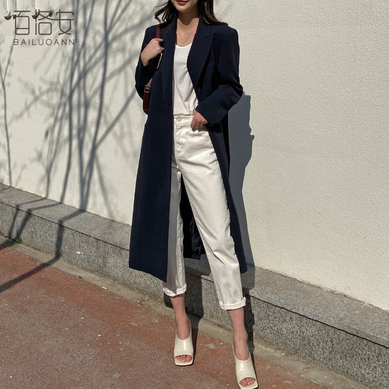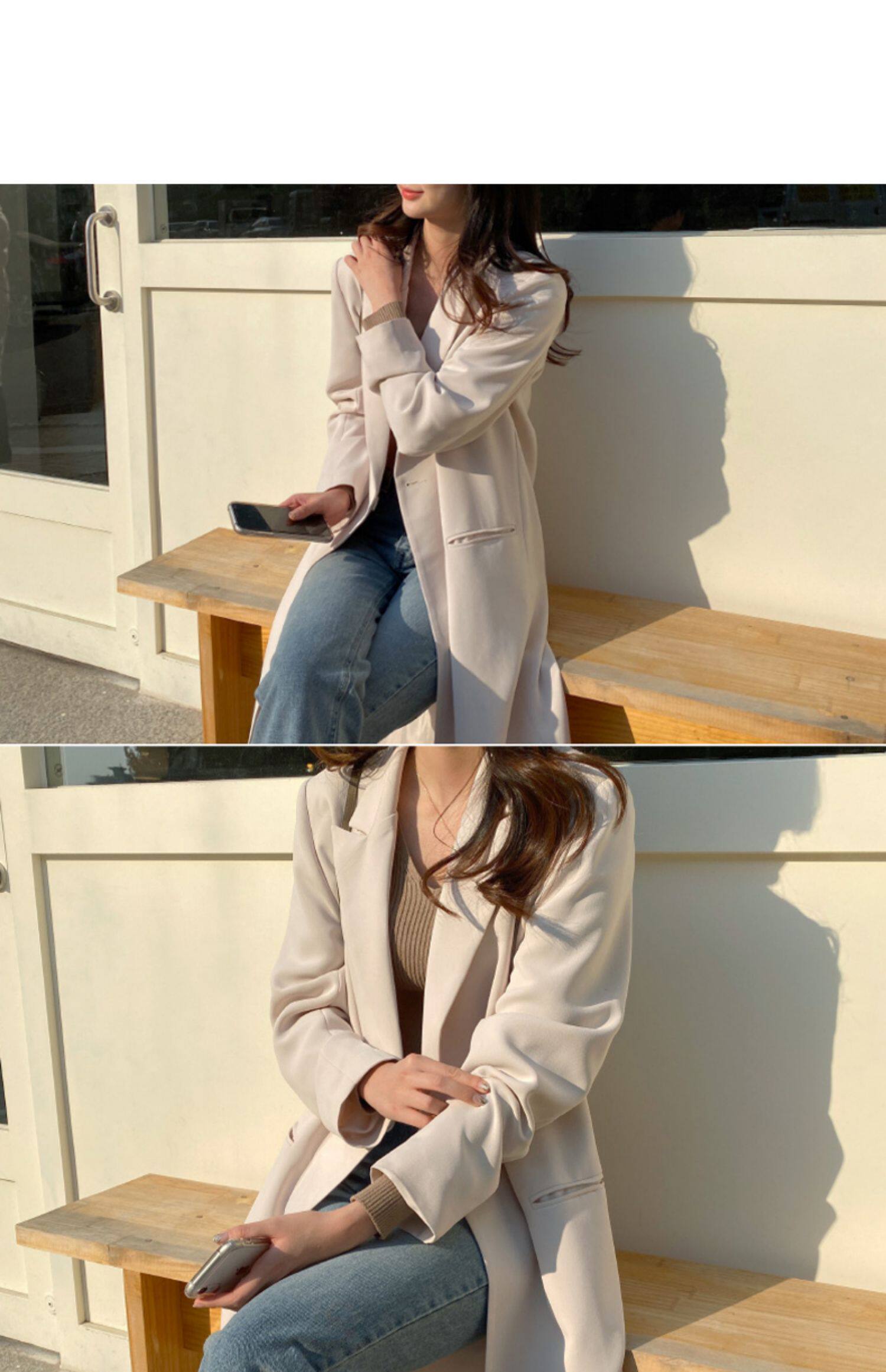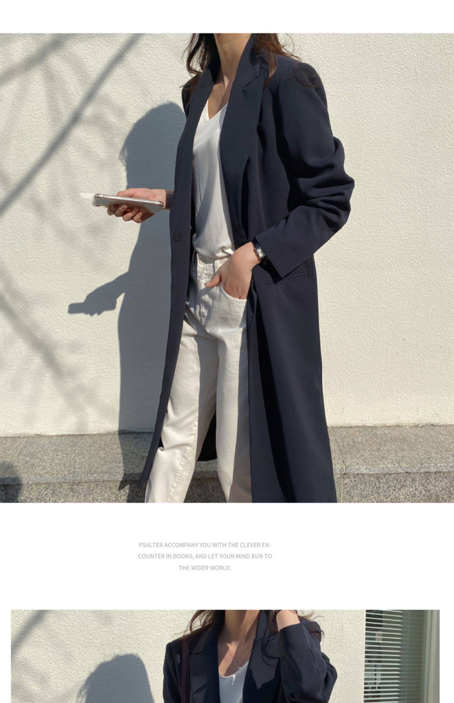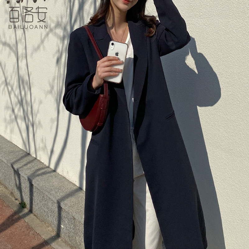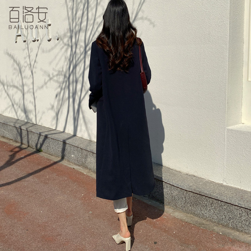 百洛安 Длинный демисезонный плащ, куртка, пиджак классического кроя, в корейском стиле, свободный крой