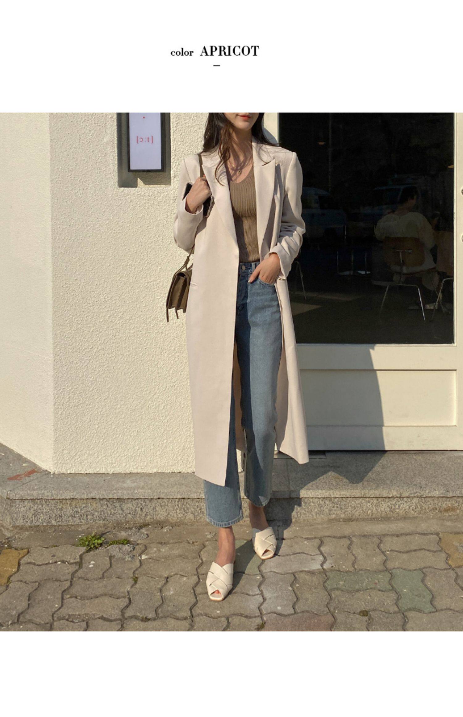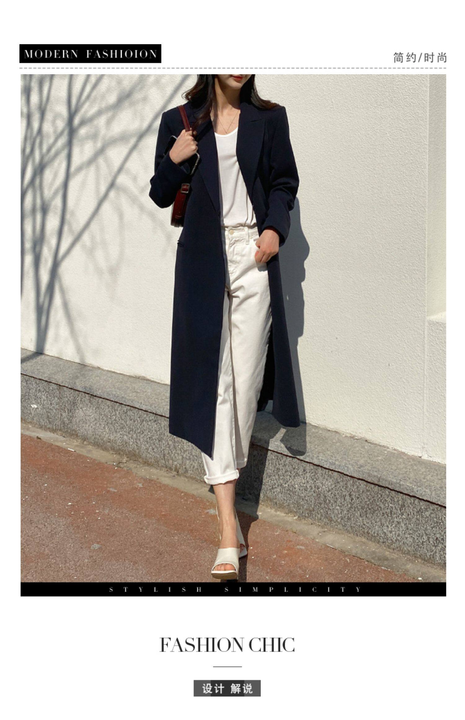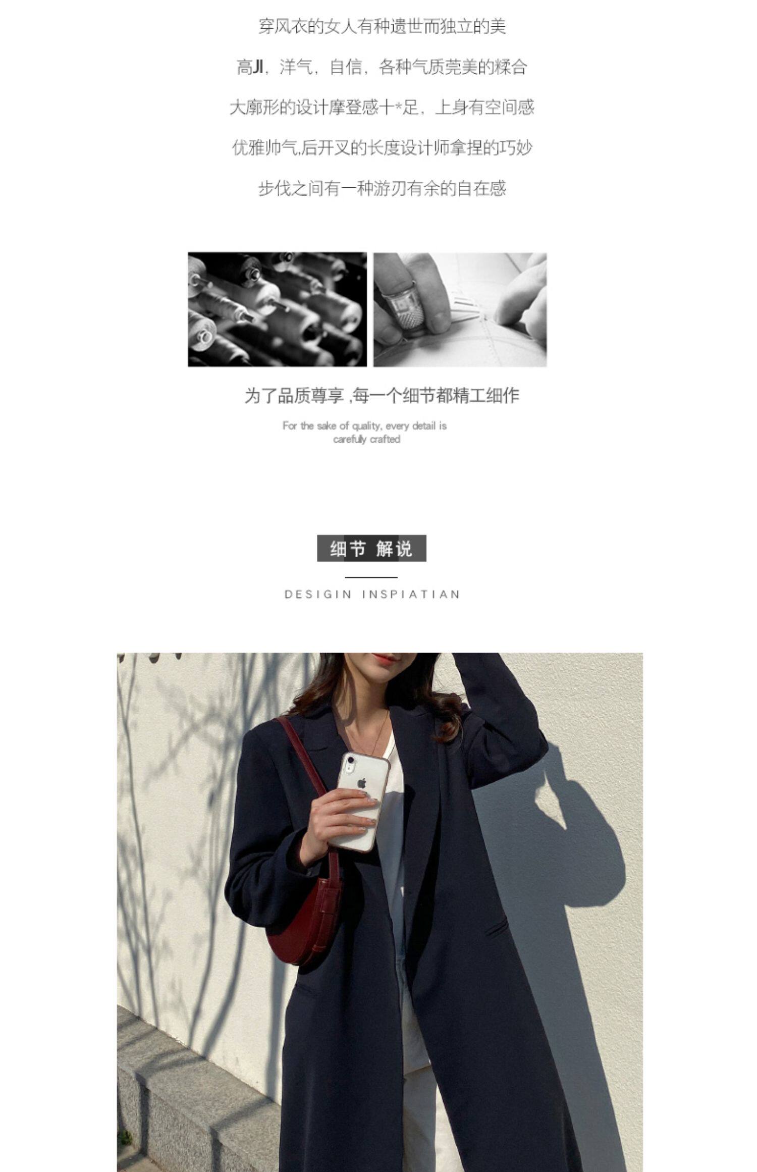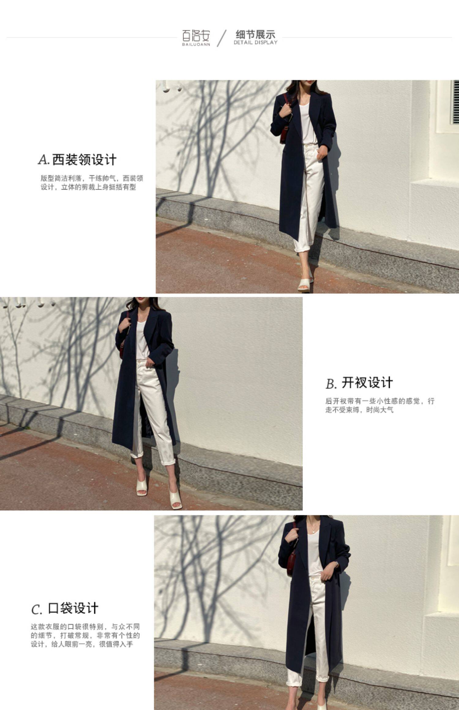 百洛安 Длинный демисезонный плащ, куртка, пиджак классического кроя, в корейском стиле, свободный крой