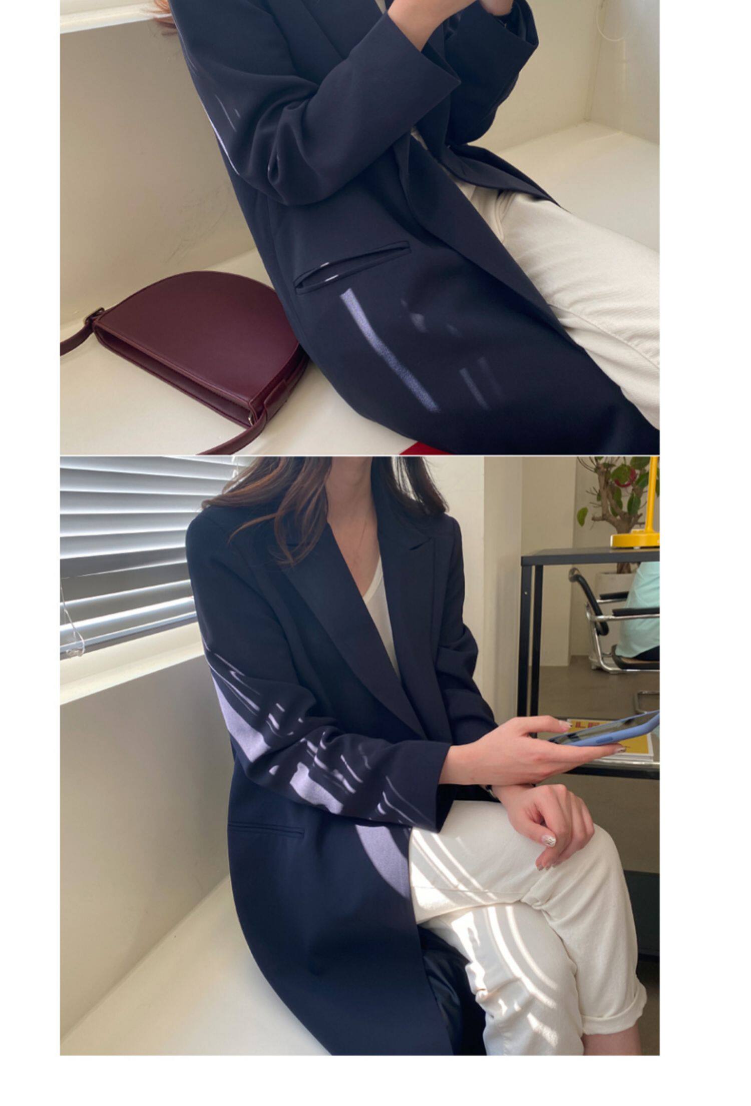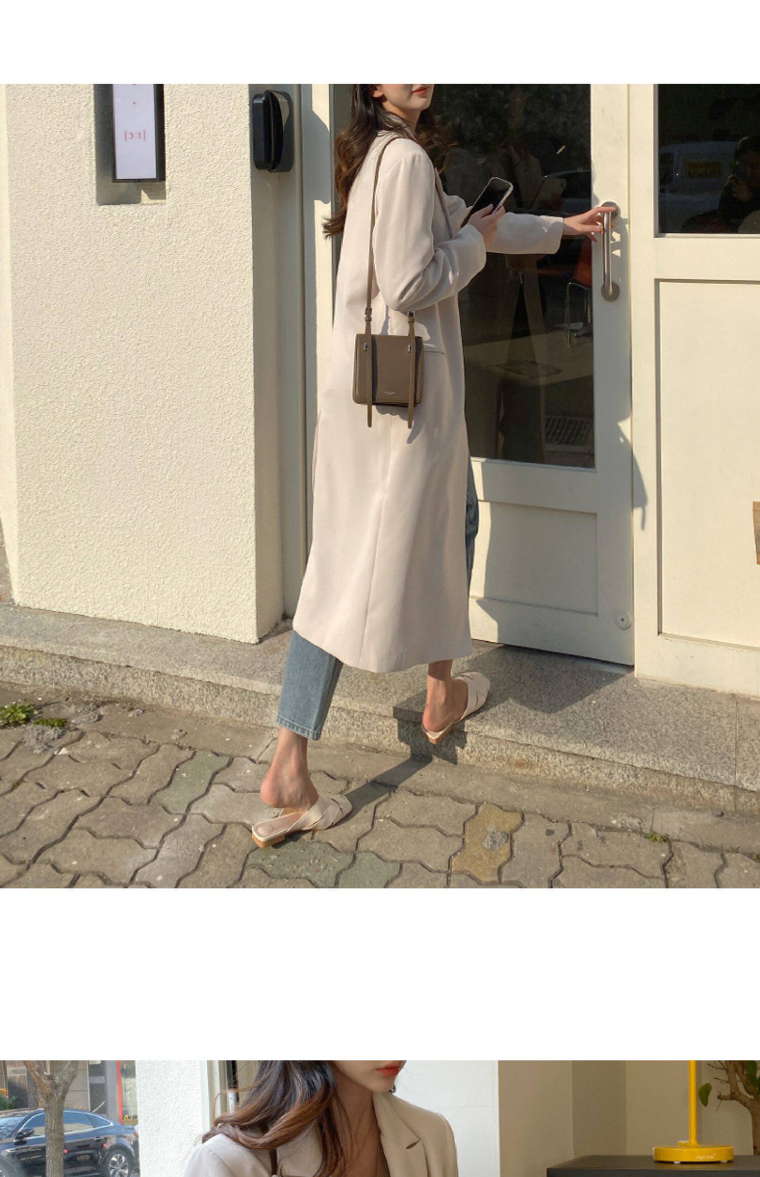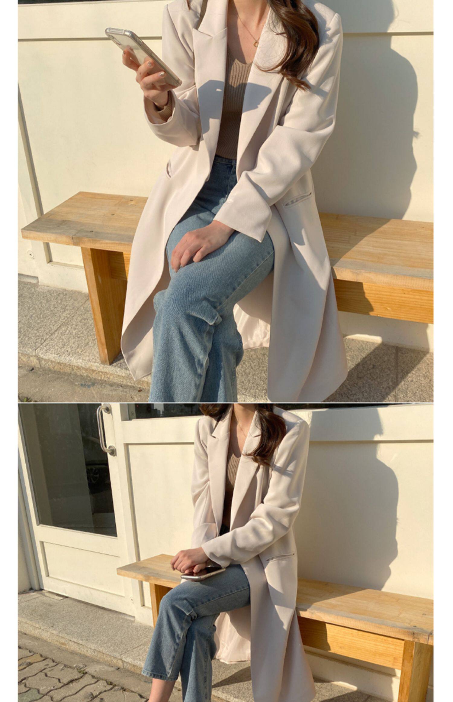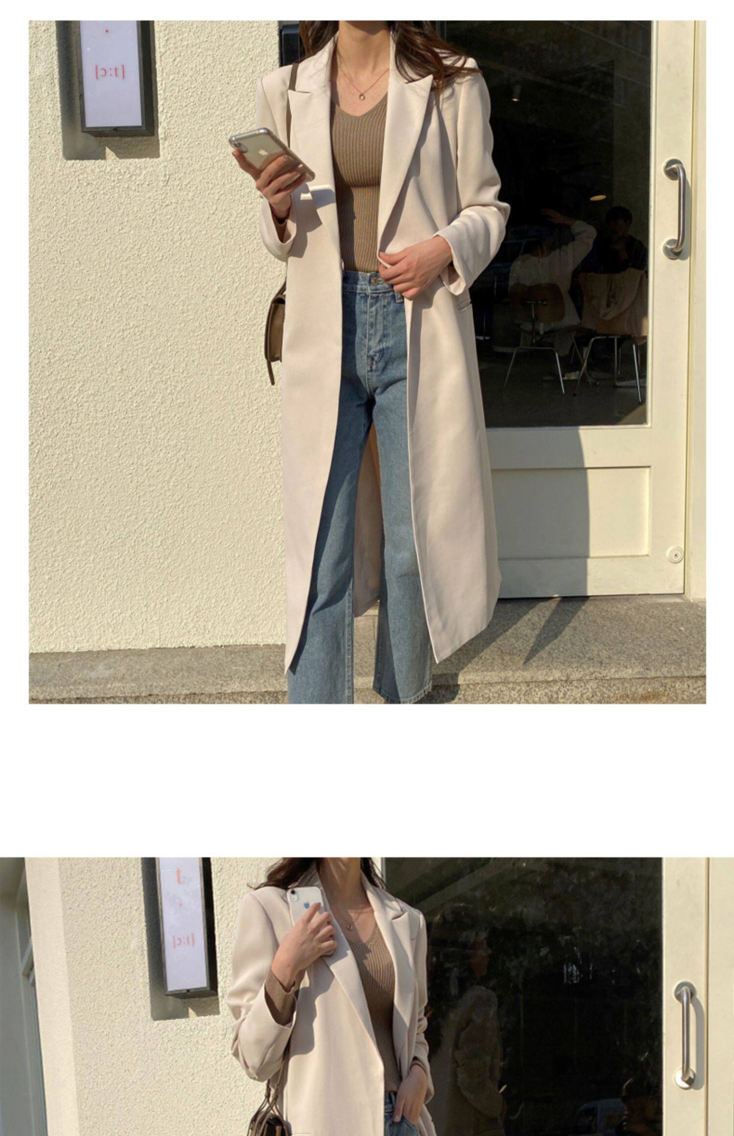 百洛安 Длинный демисезонный плащ, куртка, пиджак классического кроя, в корейском стиле, свободный крой