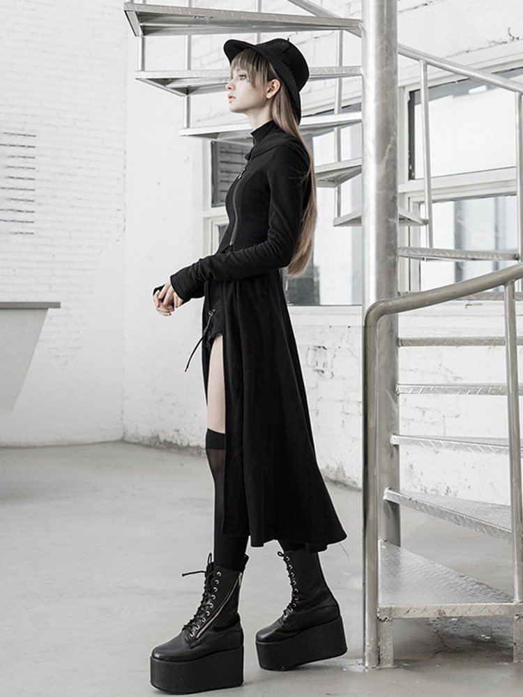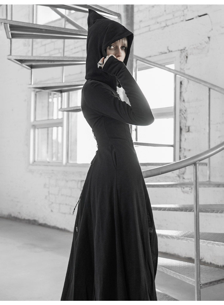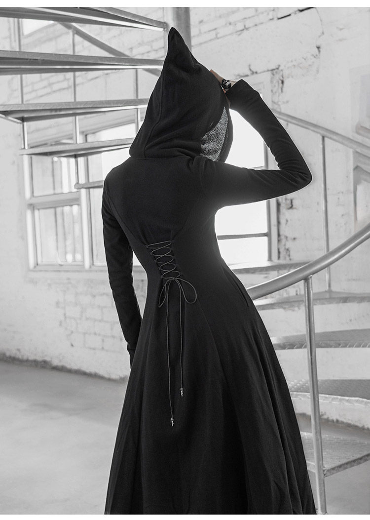 Длинный плащ, демисезонный корсет, трендовая куртка с капюшоном, в западном стиле, популярно в интернете