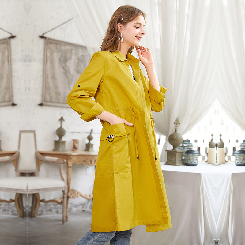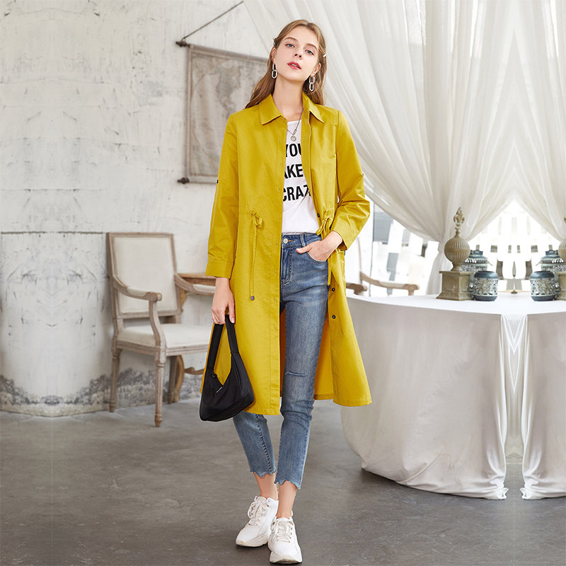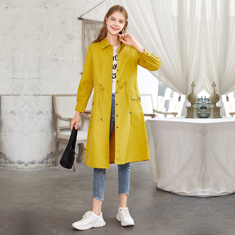 香影 Длинный осенний плащ, приталенный корсет, куртка, средней длины, 2020, в корейском стиле, оверсайз, на шнурках