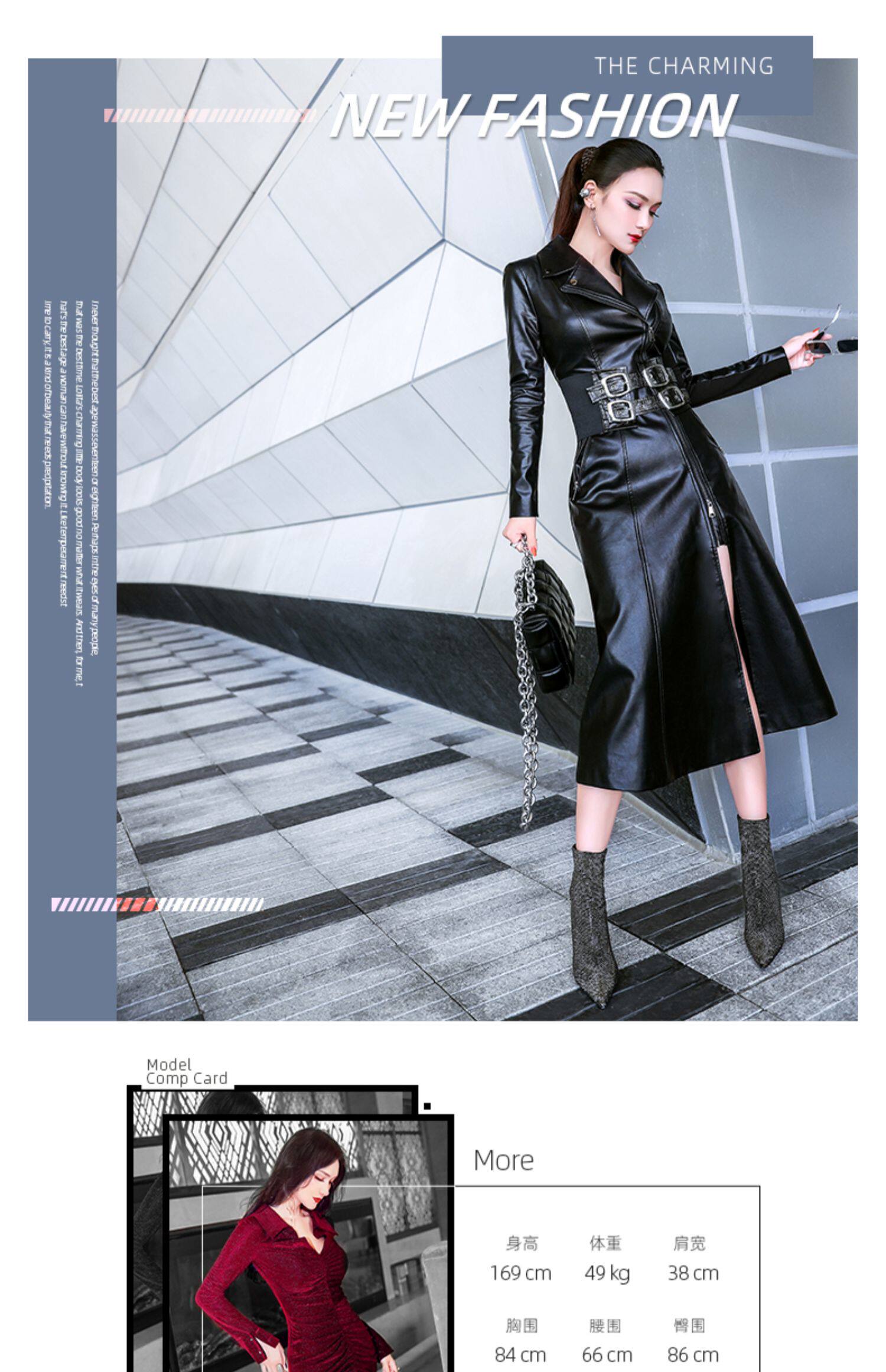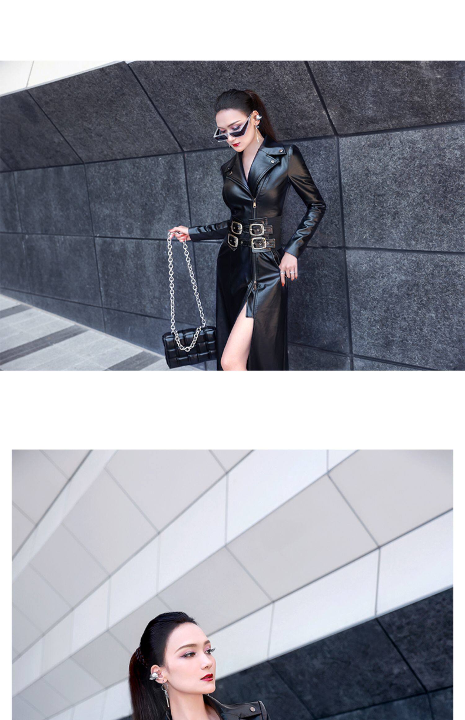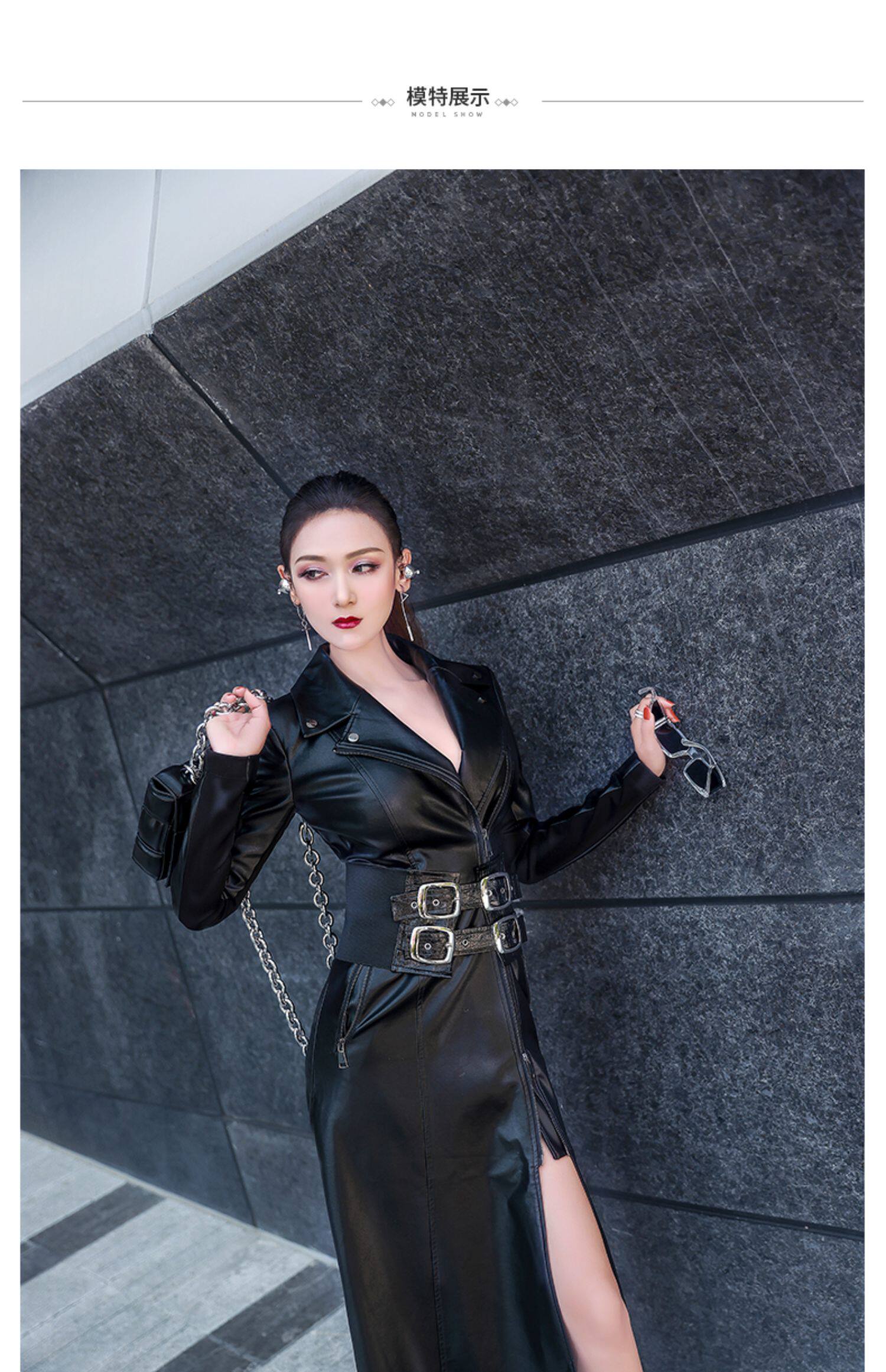 VJE Черная полиуретановая длинная куртка, приталенный корсет, плащ, осенняя, средней длины, в западном стиле