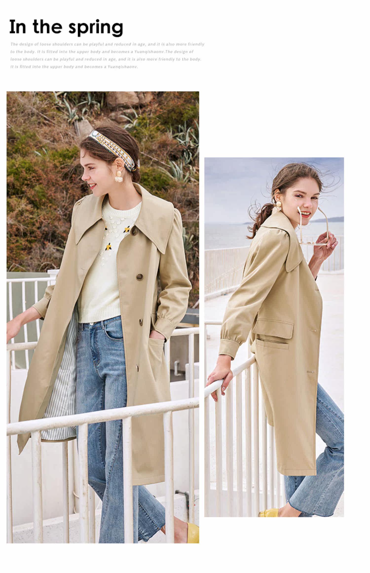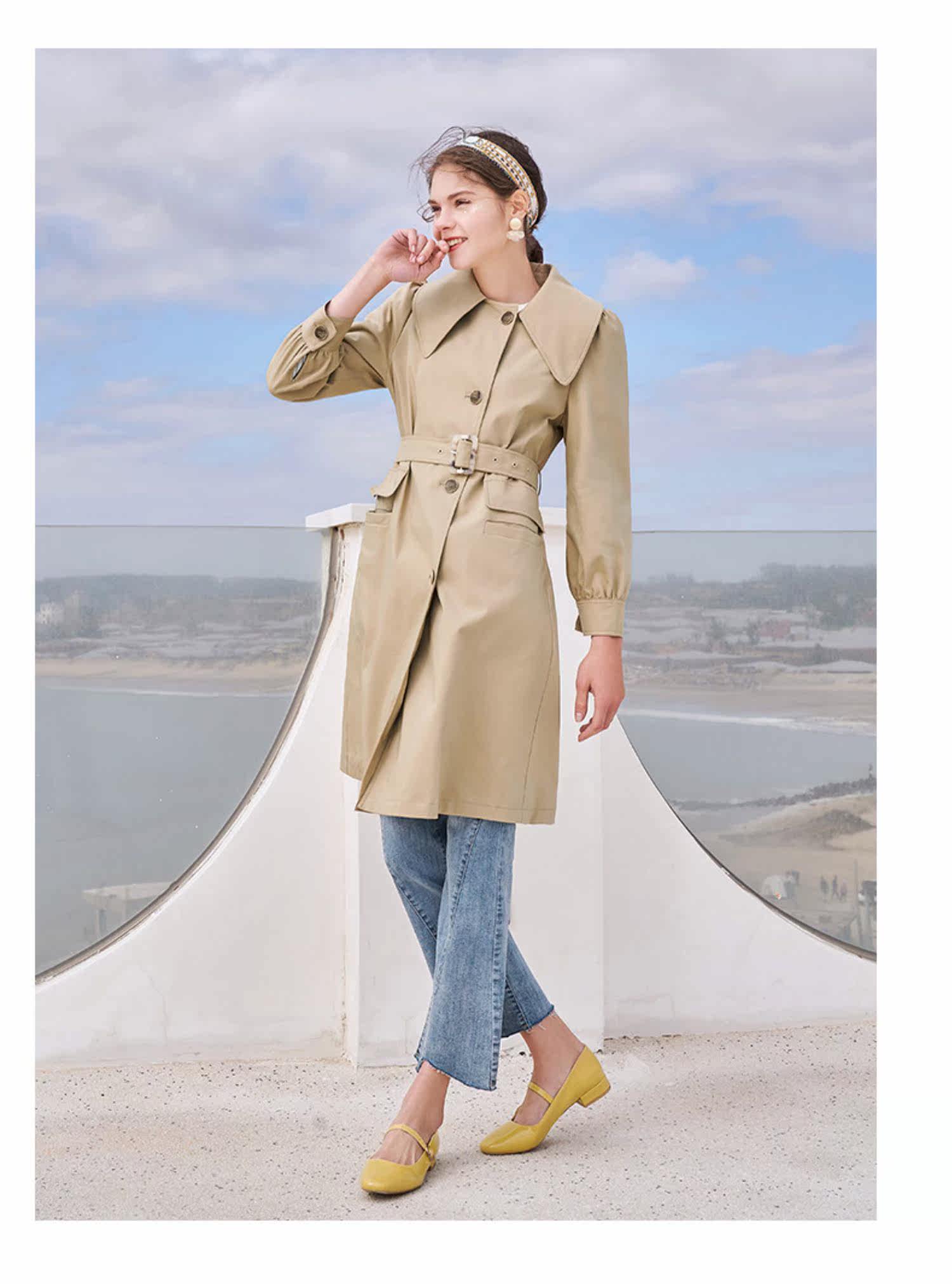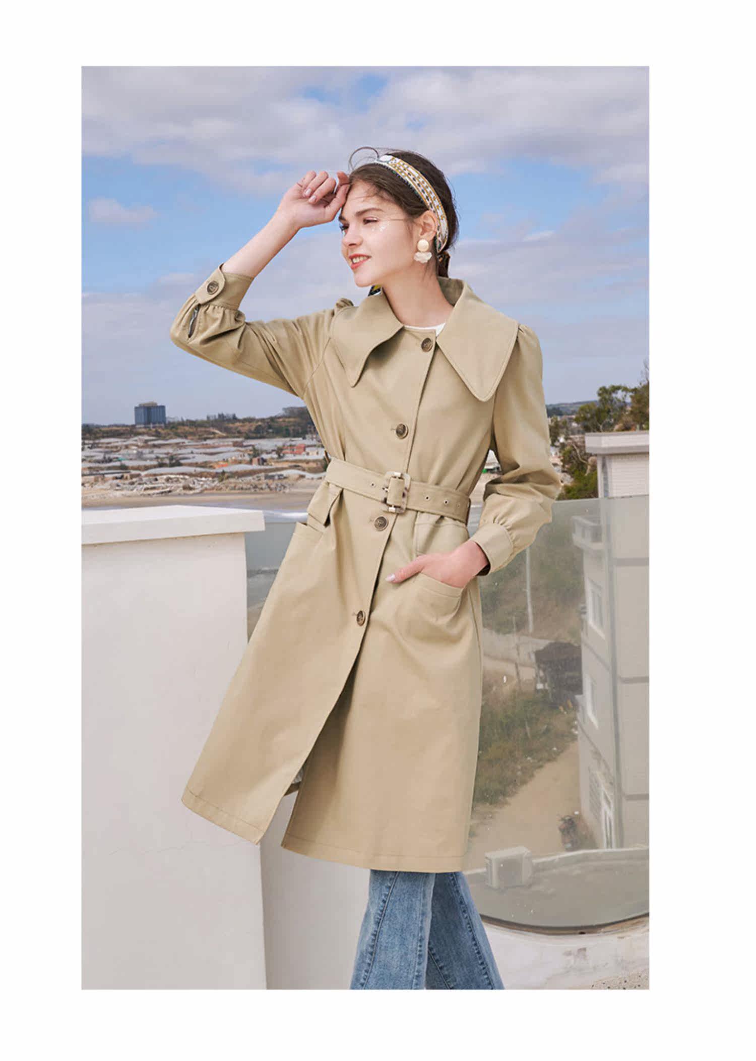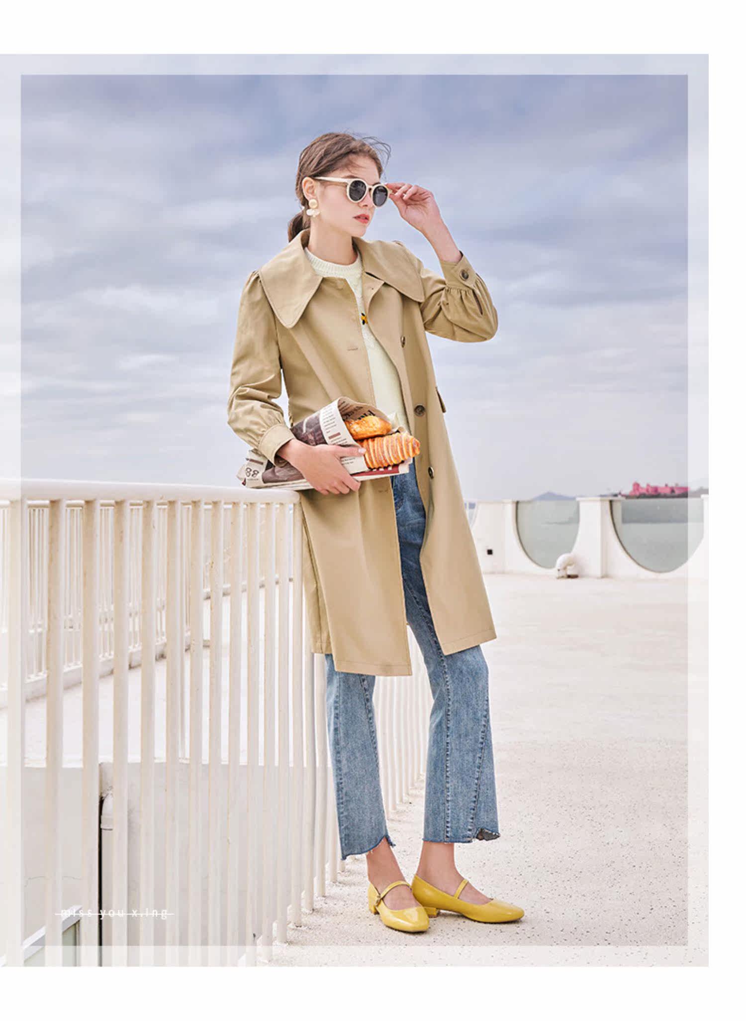 香影 Длинный плащ, осенний приталенный корсет, хаки куртка, средней длины, коллекция 2021, в корейском стиле, оверсайз