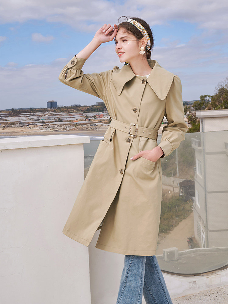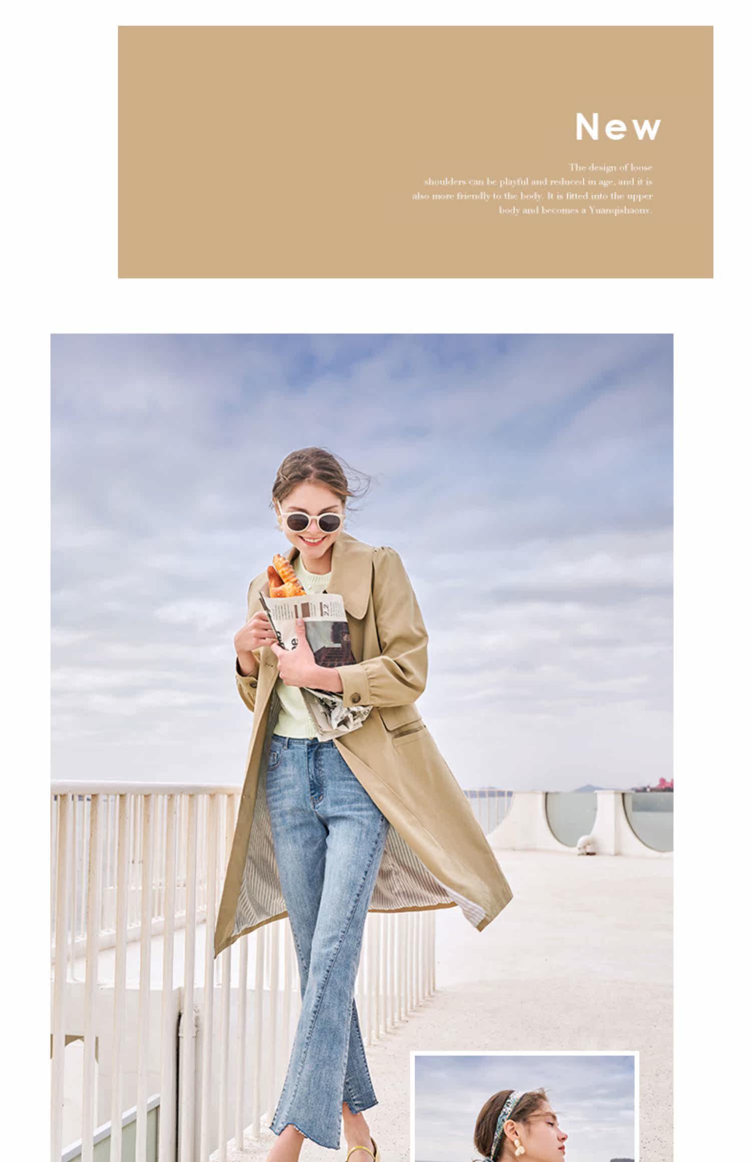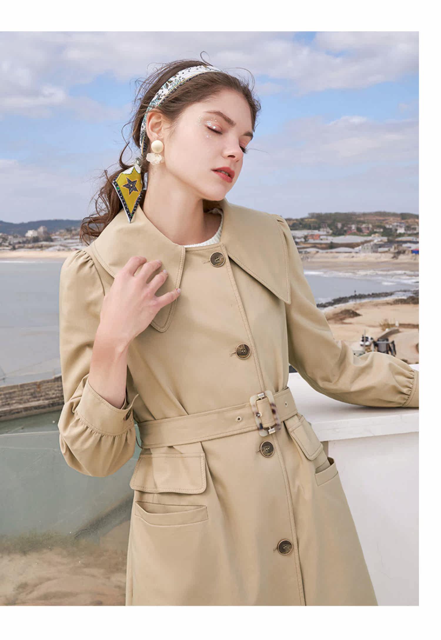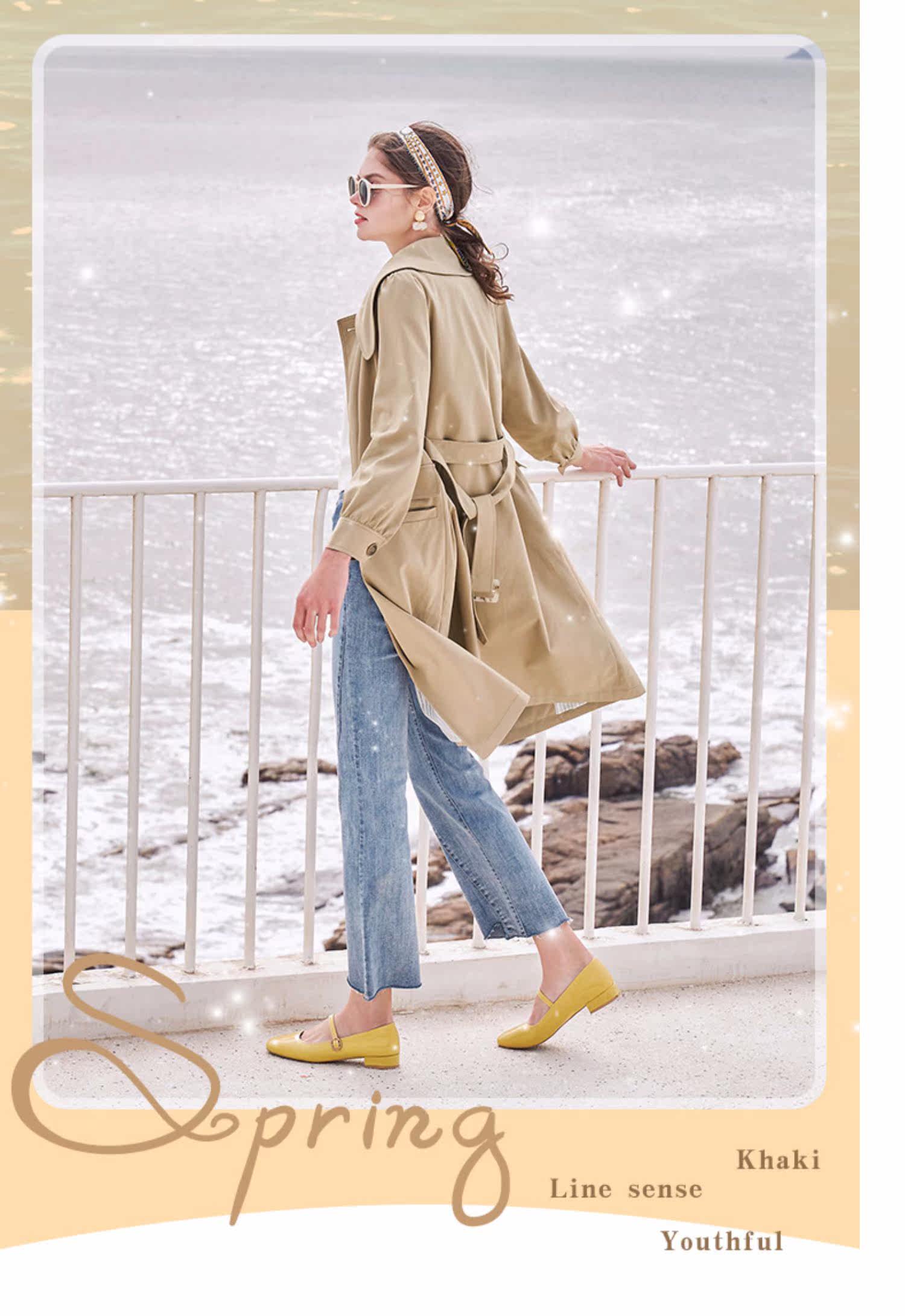 香影 Длинный плащ, осенний приталенный корсет, хаки куртка, средней длины, коллекция 2021, в корейском стиле, оверсайз