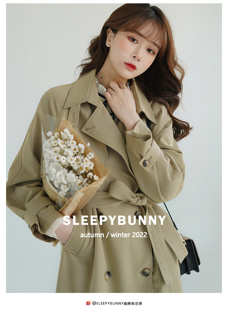 瞌睡兔 Весенний плащ для отдыха, куртка, в британском стиле, яркий броский стиль, по фигуре, подходит для подростков, средней длины