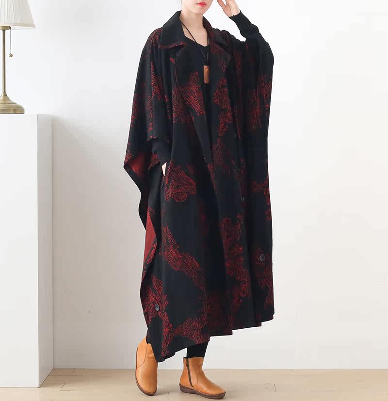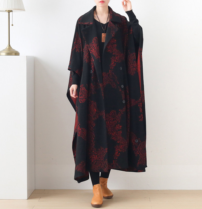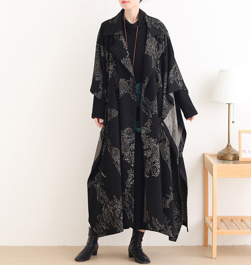 Демисезонный оригинальный ретро стеганый плащ, куртка, оверсайз, длина макси, увеличенная толщина, в западном стиле