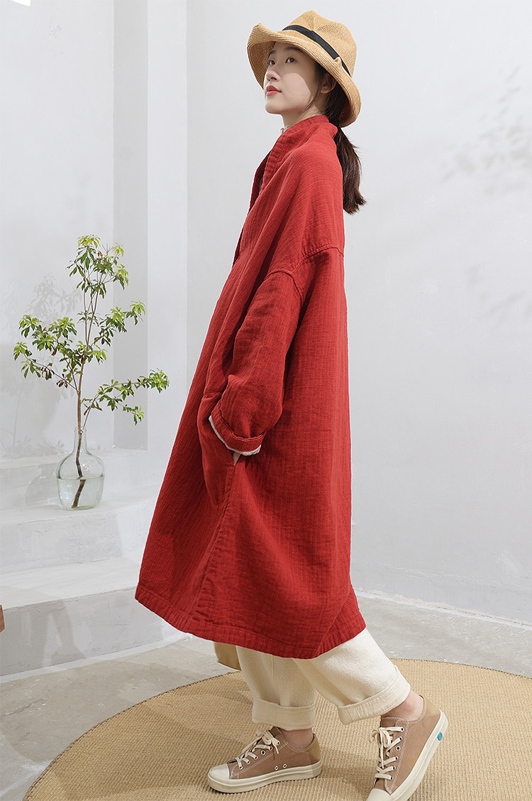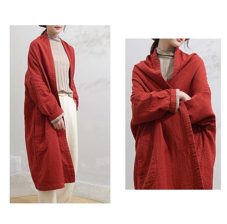 Осенняя демисезонная куртка, длинный плащ, кардиган, коллекция 2023, городской стиль, из хлопка и льна, оверсайз