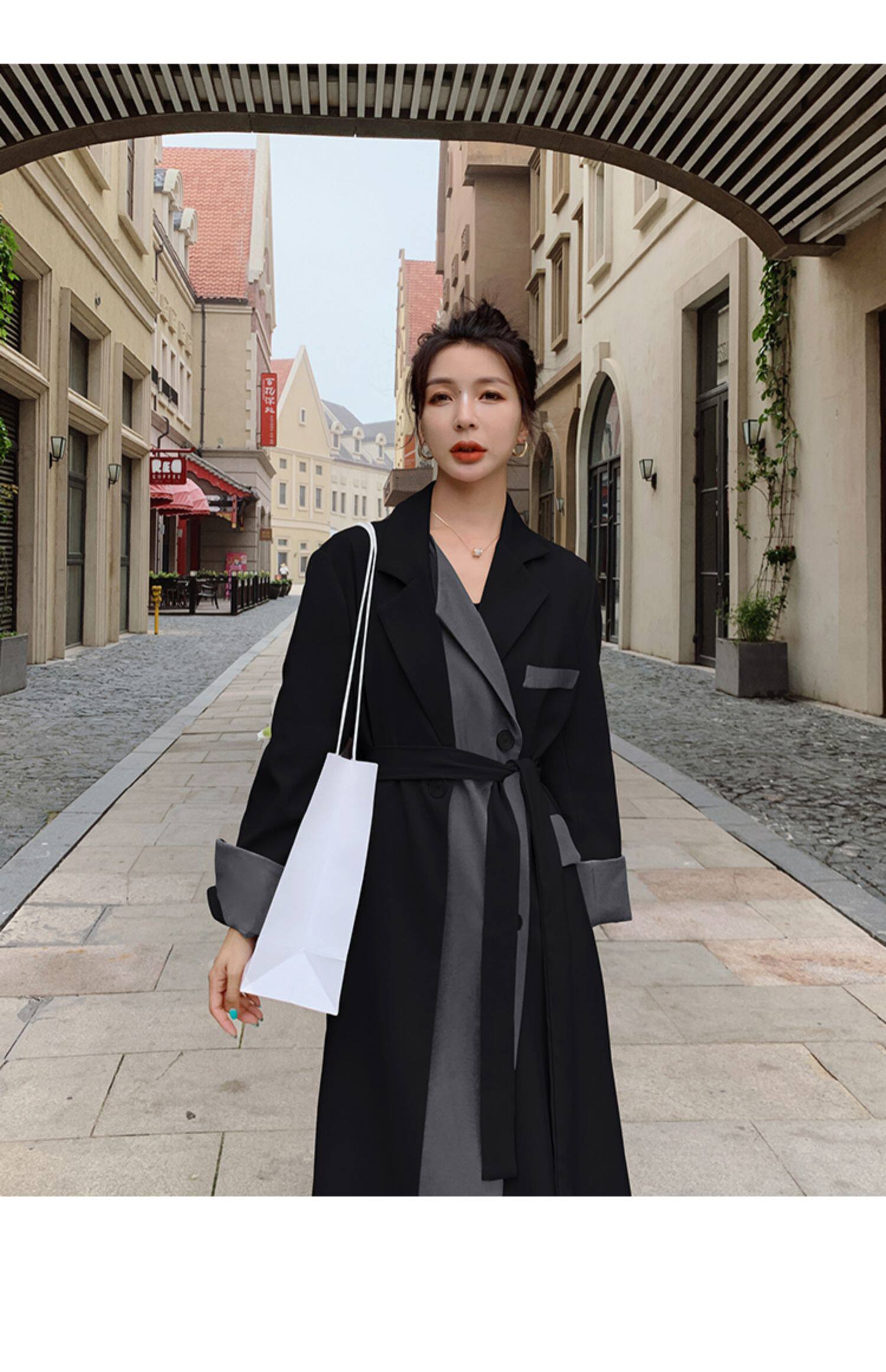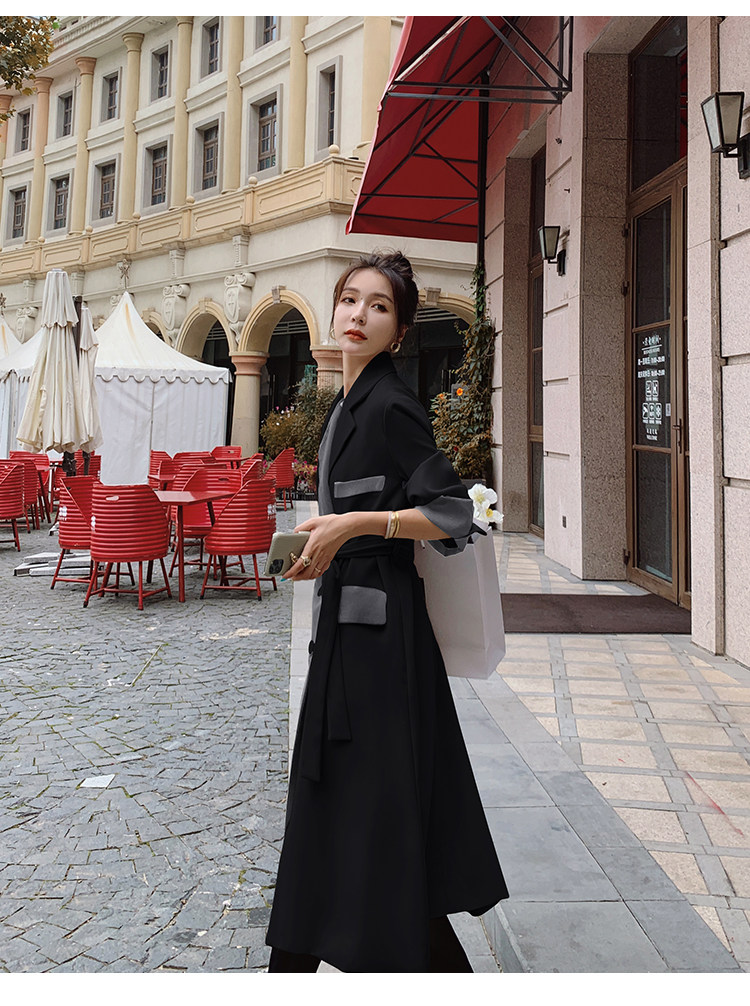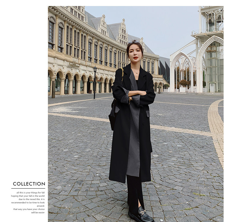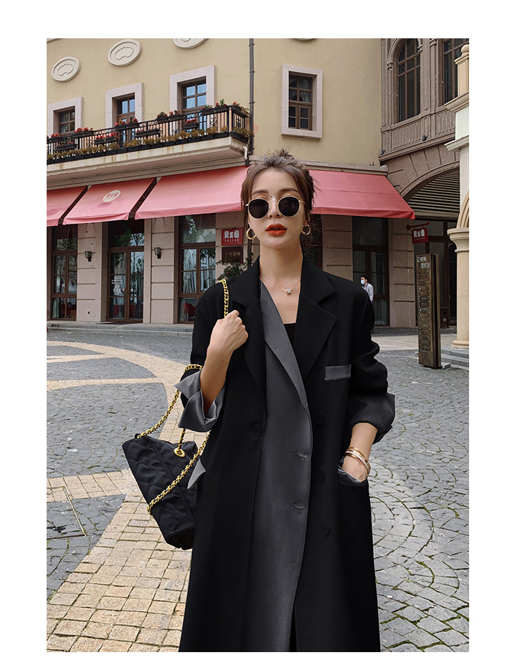 Черный плащ, длинная осенняя куртка, дизайнерский костюм, средней длины, городской стиль, тренд сезона