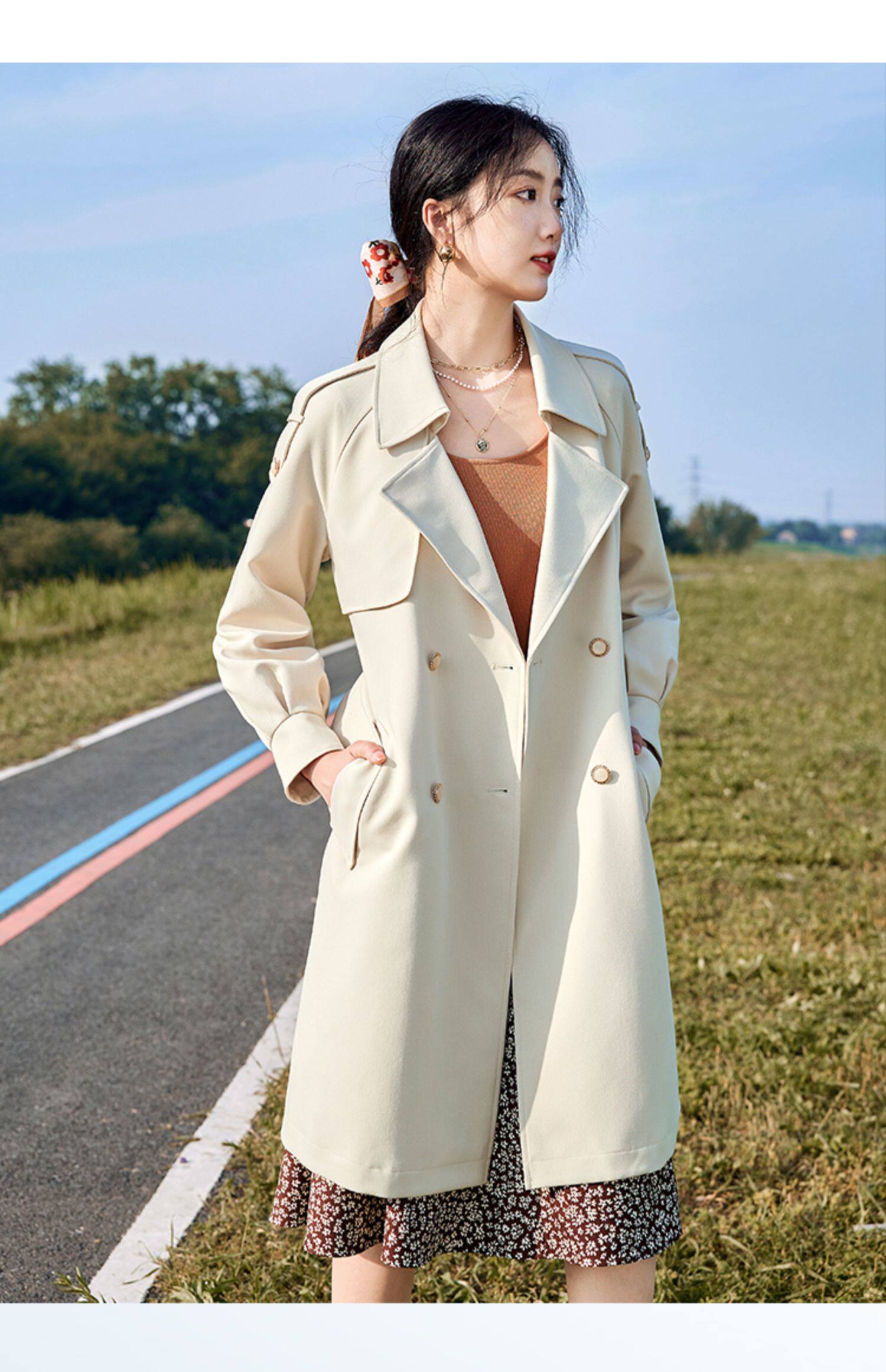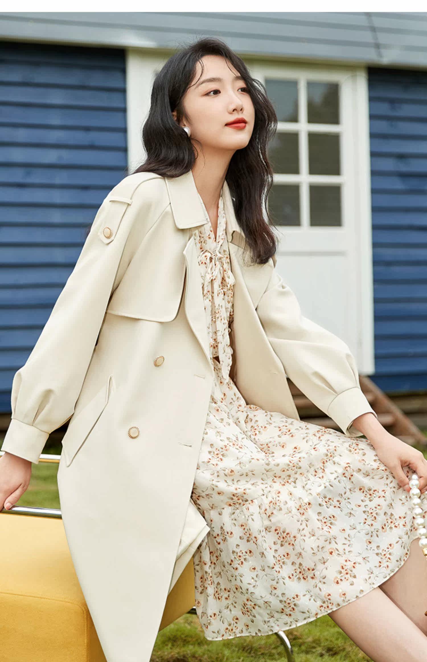 Длинный плащ, куртка для отдыха, средней длины, коллекция 2023, городской стиль, яркий броский стиль, свободный крой, в британском стиле
