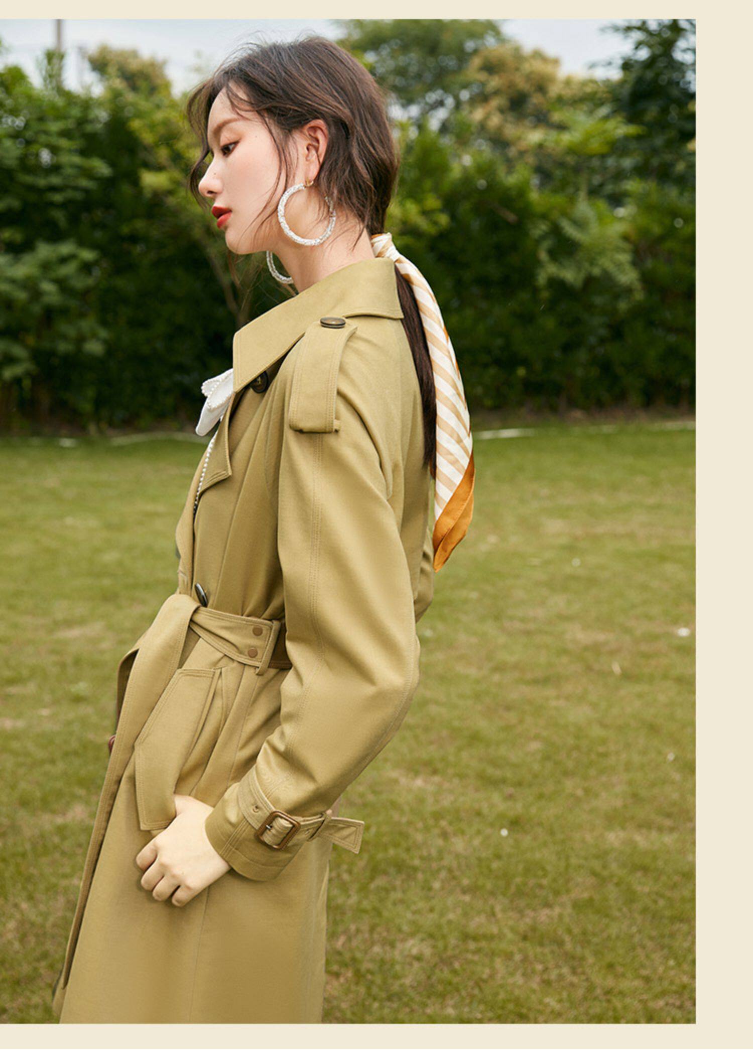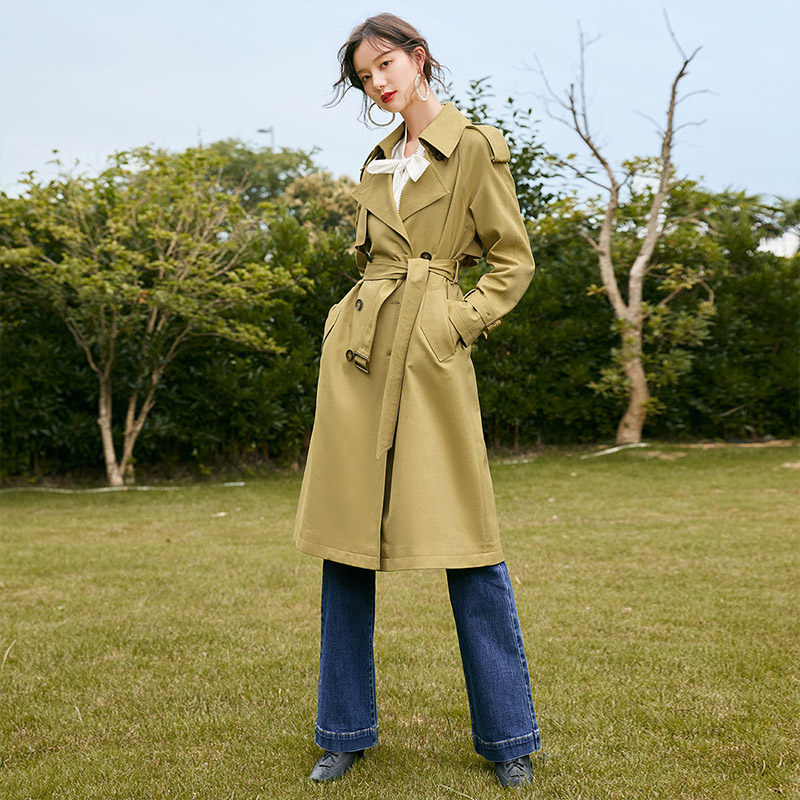 Длинный осенний плащ, хаки куртка для отдыха, средней длины, в британском стиле