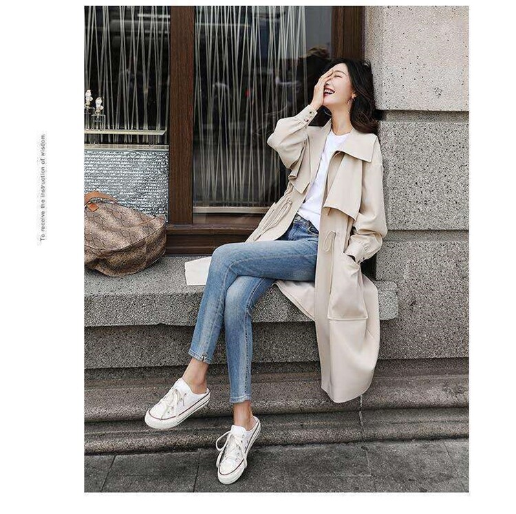 Осенняя куртка, тонкий длинный плащ, в британском стиле, средней длины
