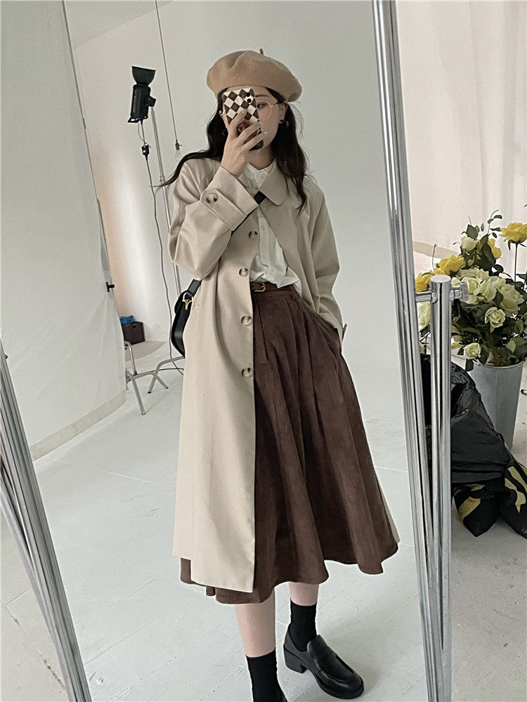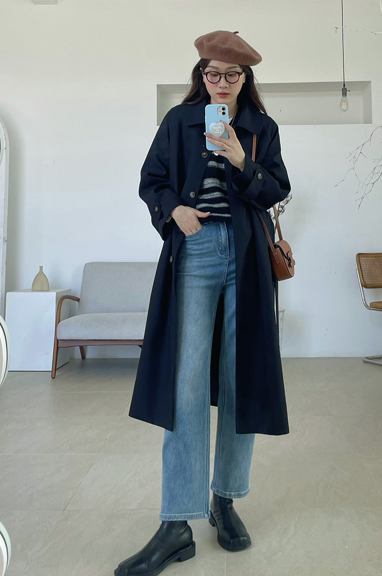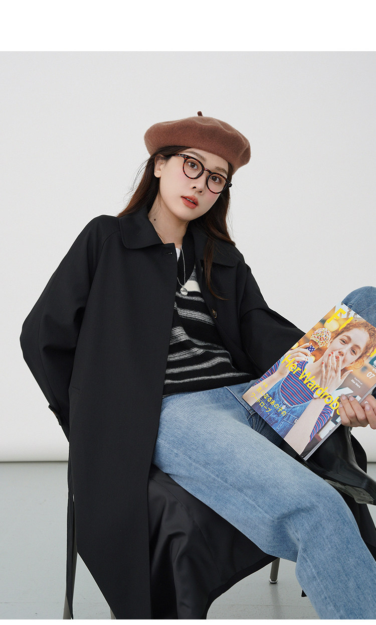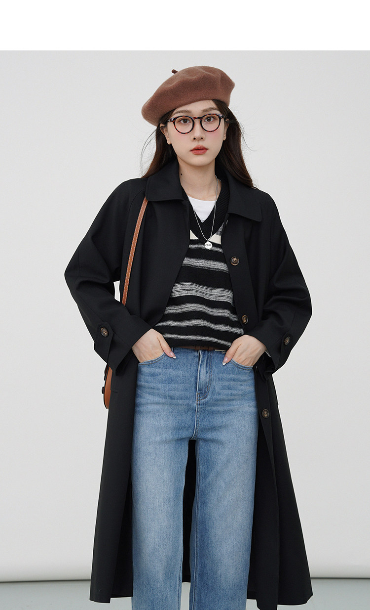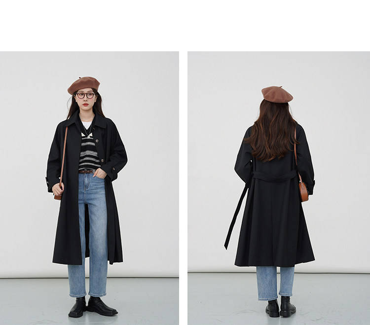 Черный осенний плащ, длинная куртка, подходит для подростков, коллекция 2023, средней длины
