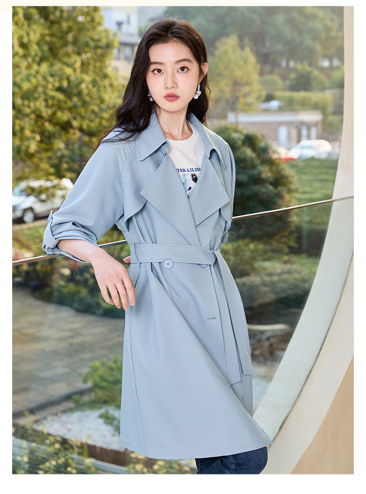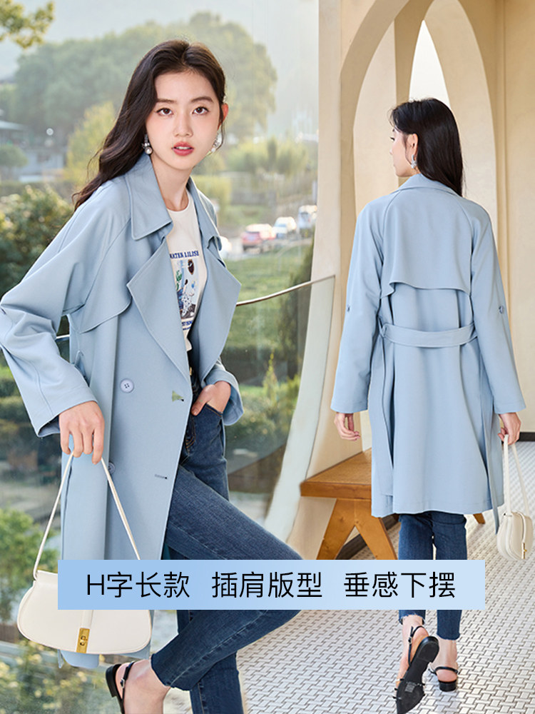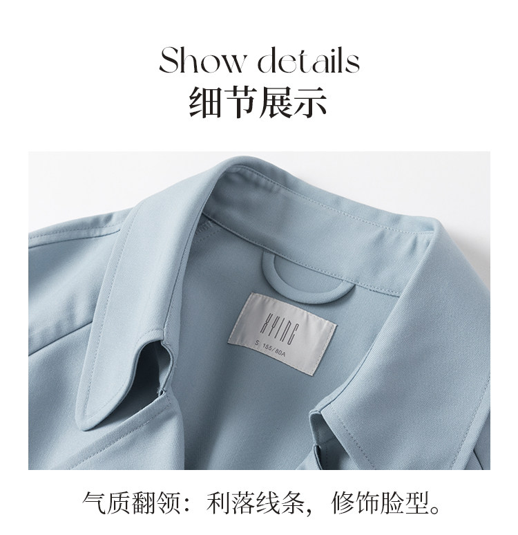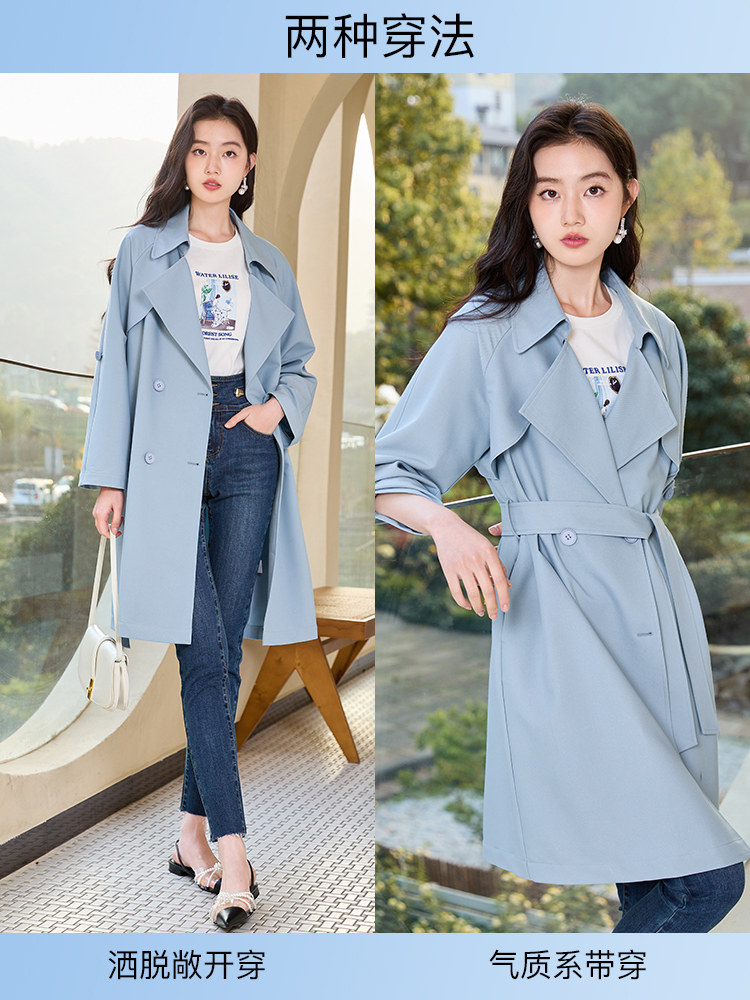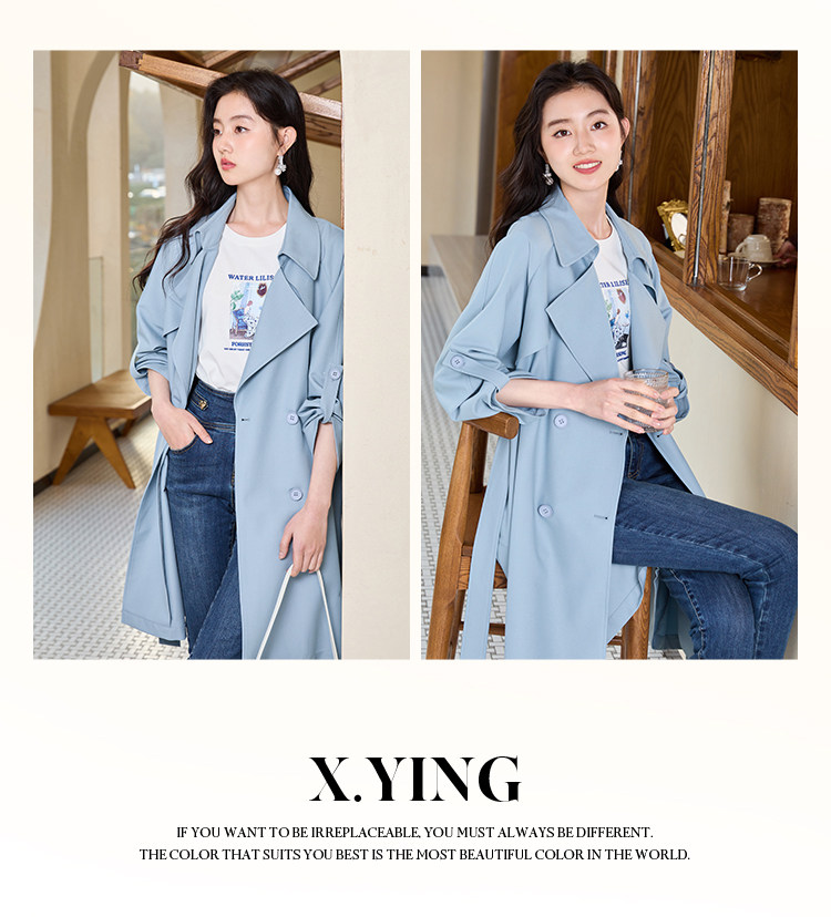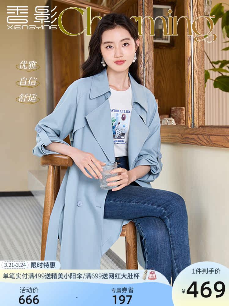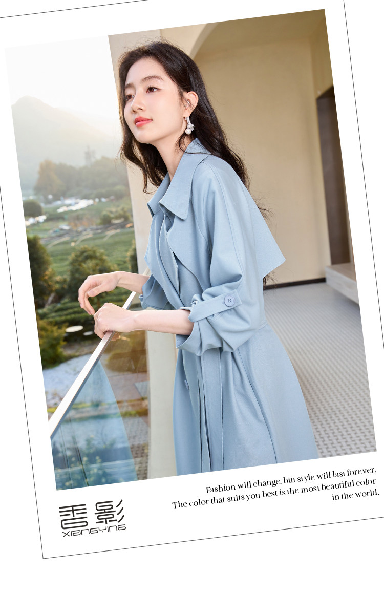 香影 Осенняя синяя куртка, осенний плащ, длина миди
