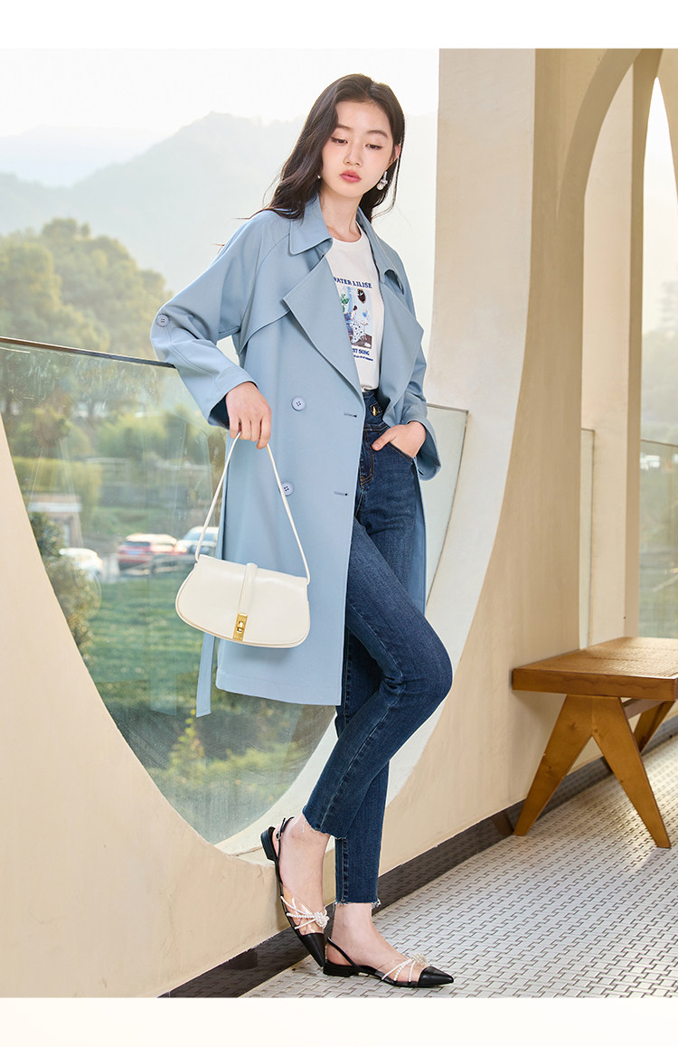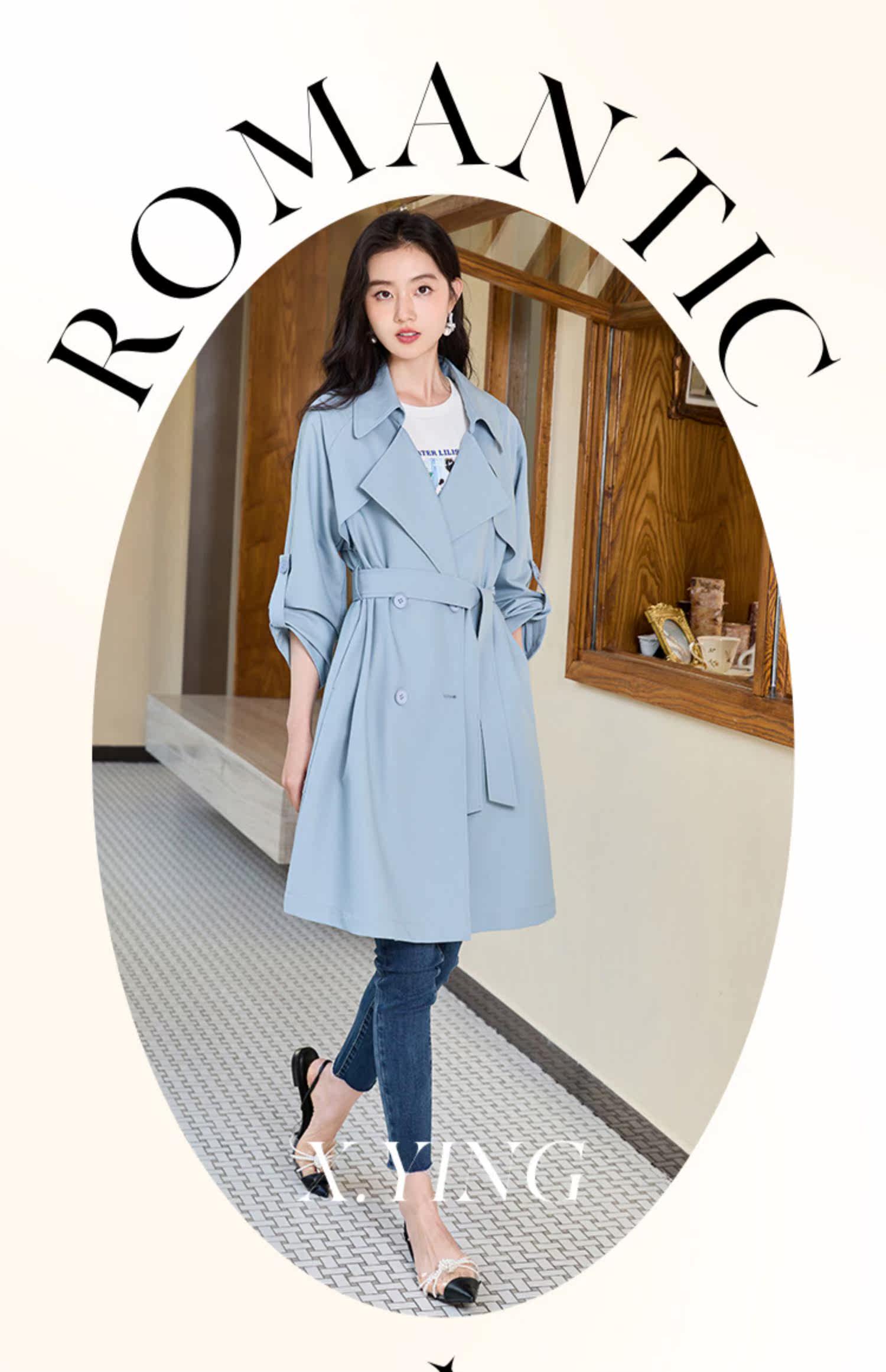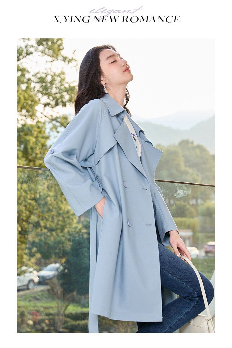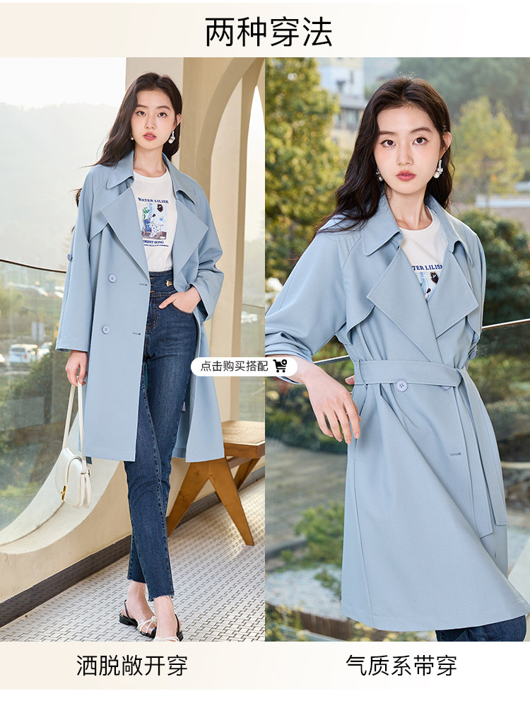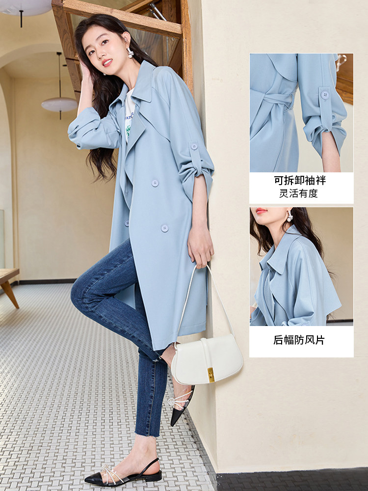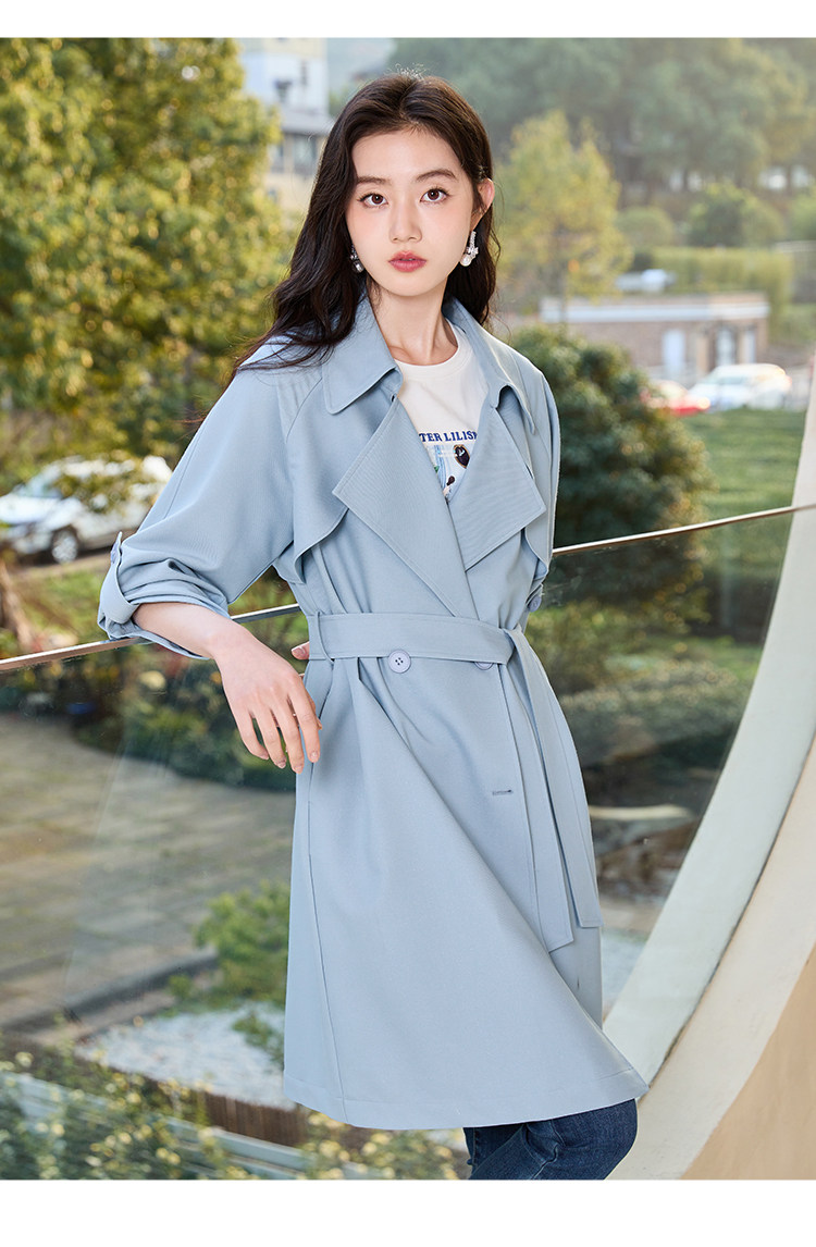 香影 Осенняя синяя куртка, осенний плащ, длина миди