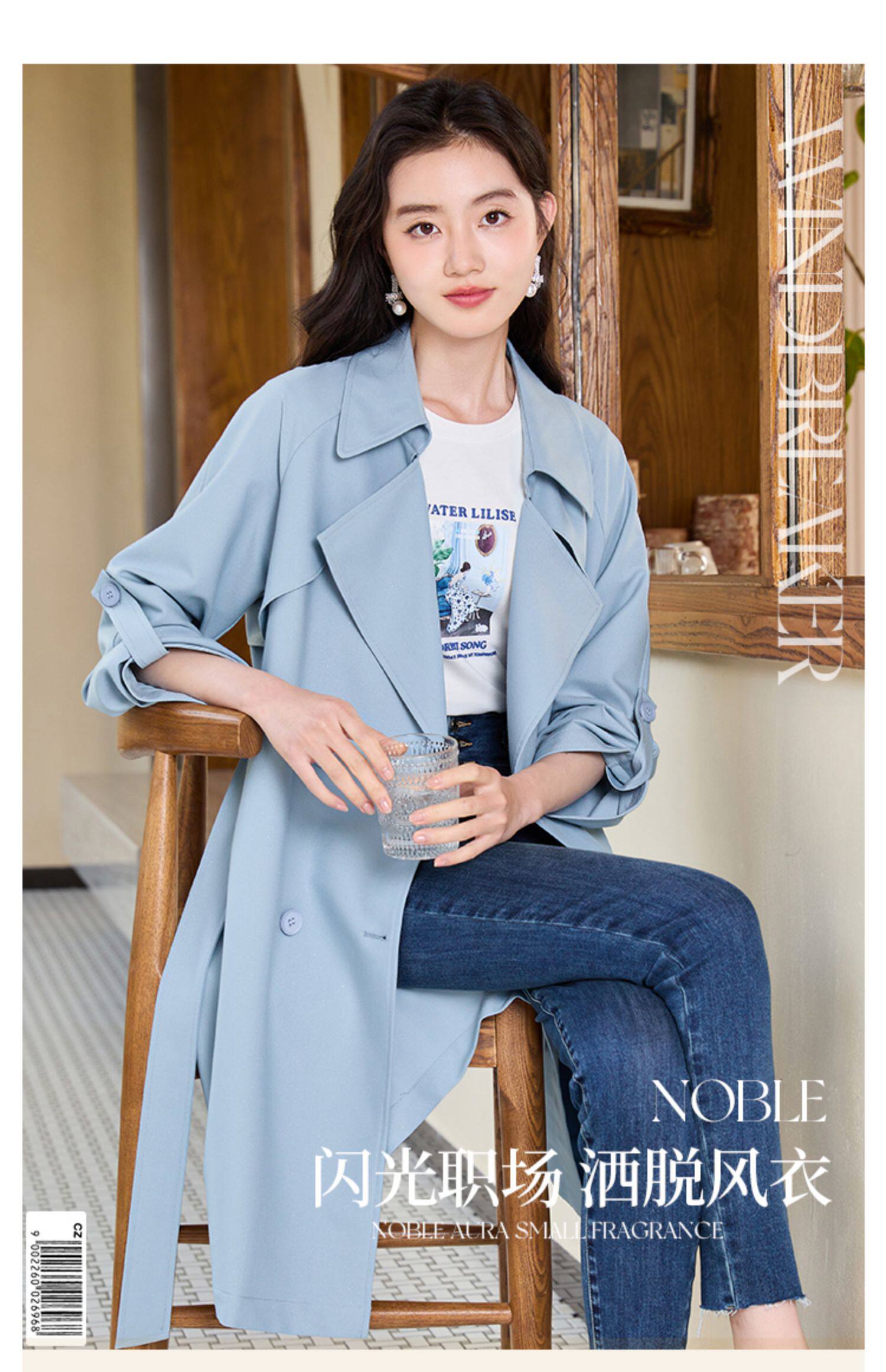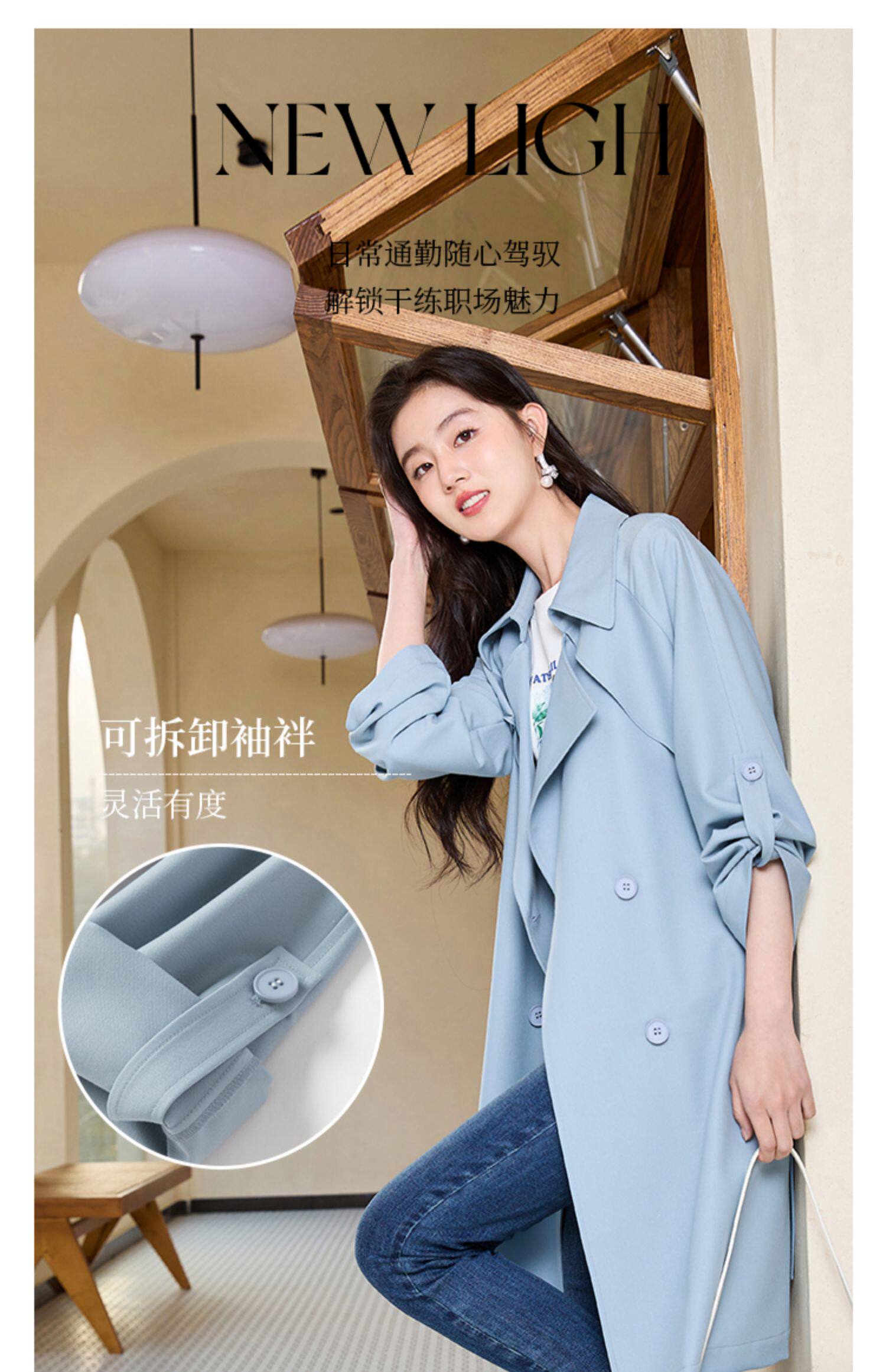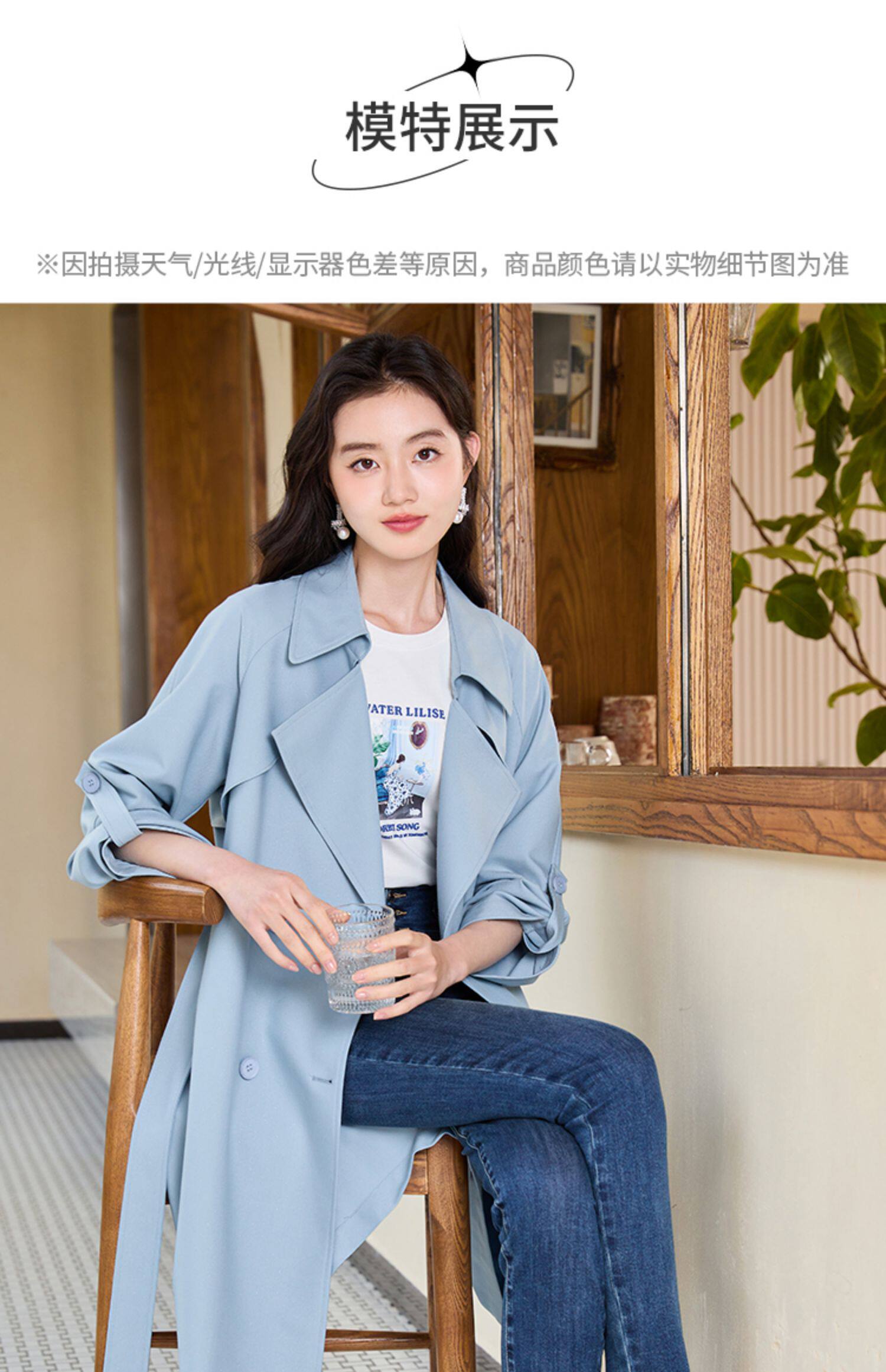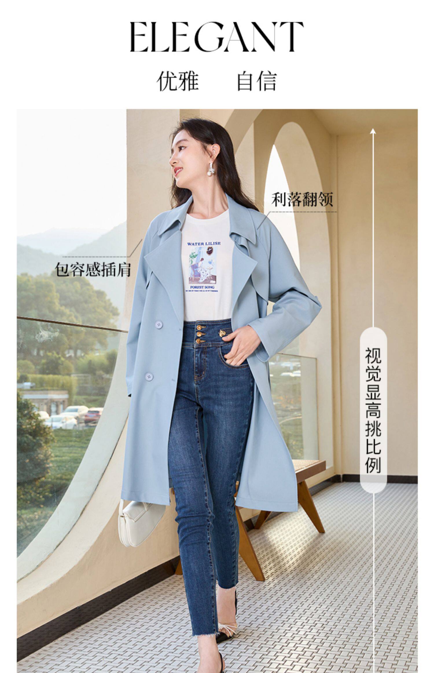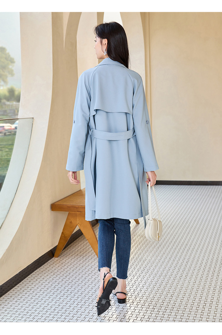 香影 Осенняя синяя куртка, осенний плащ, длина миди