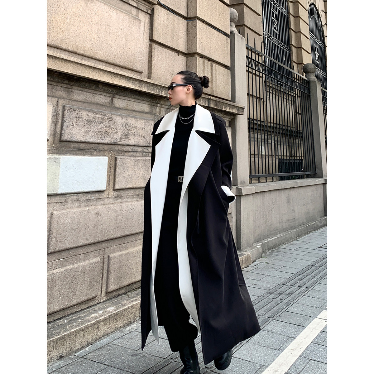 Поскольку пальто немного длинное, дизайн сплит сделан